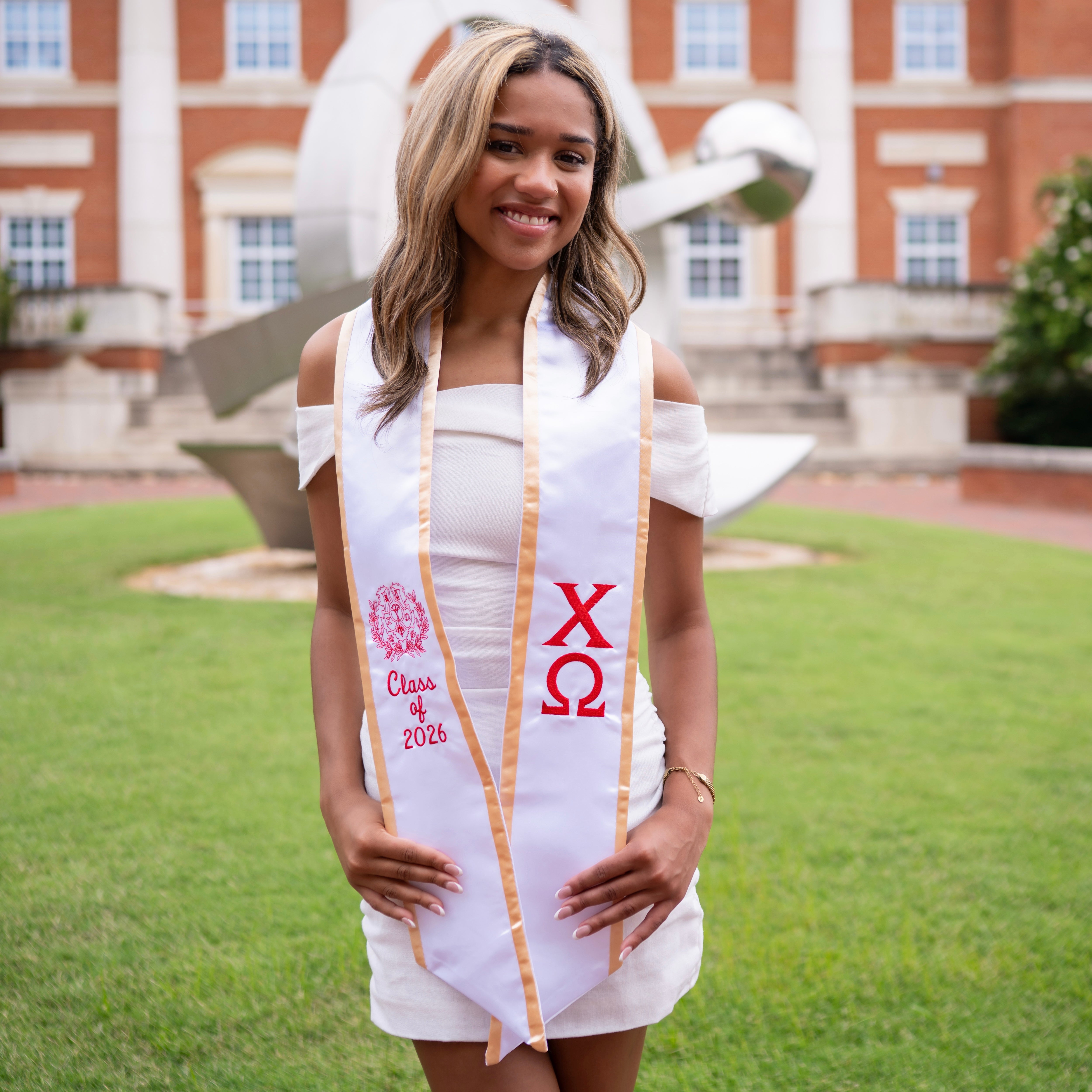 Chi Omega Minimalistic Crest Angled Sorority Graduation Stole