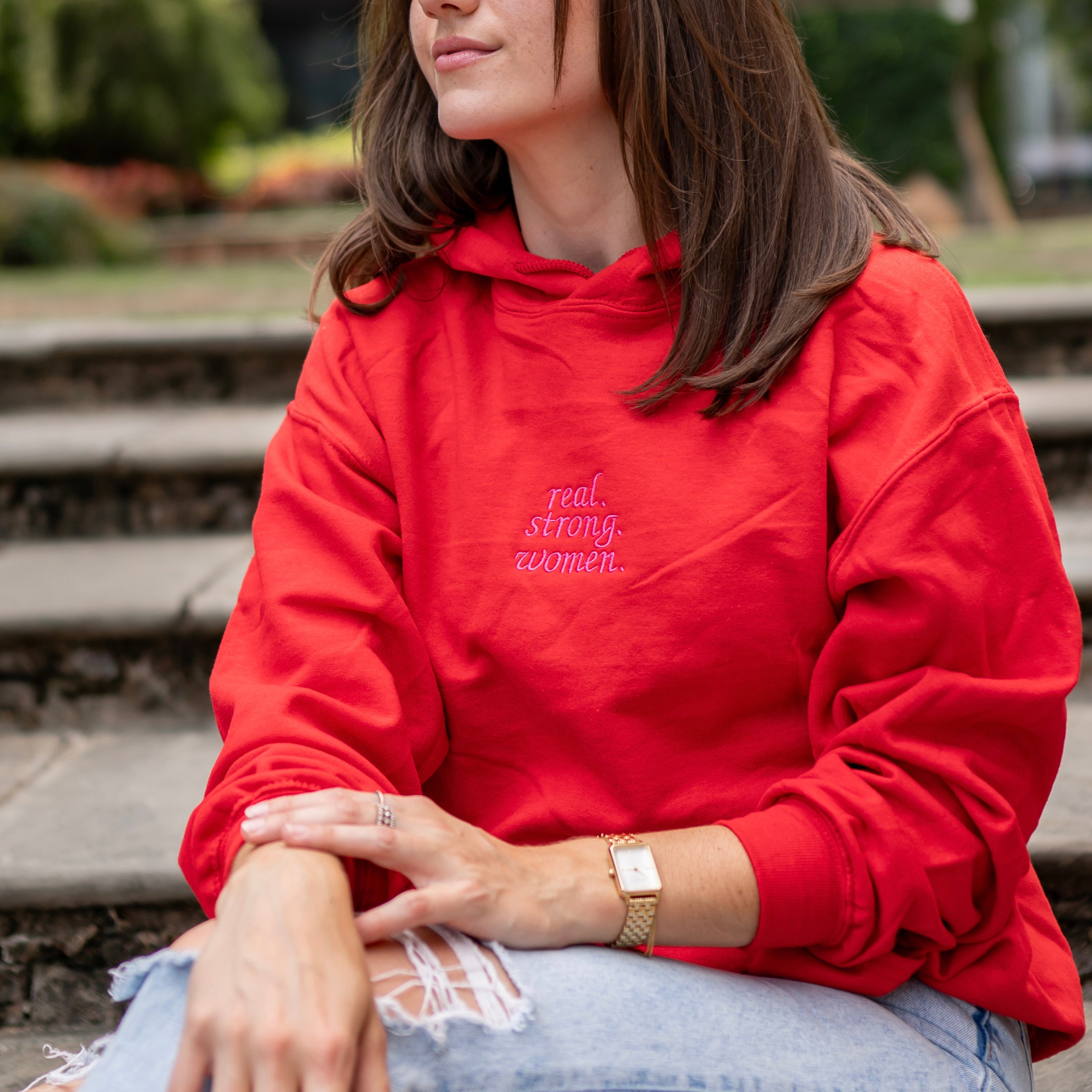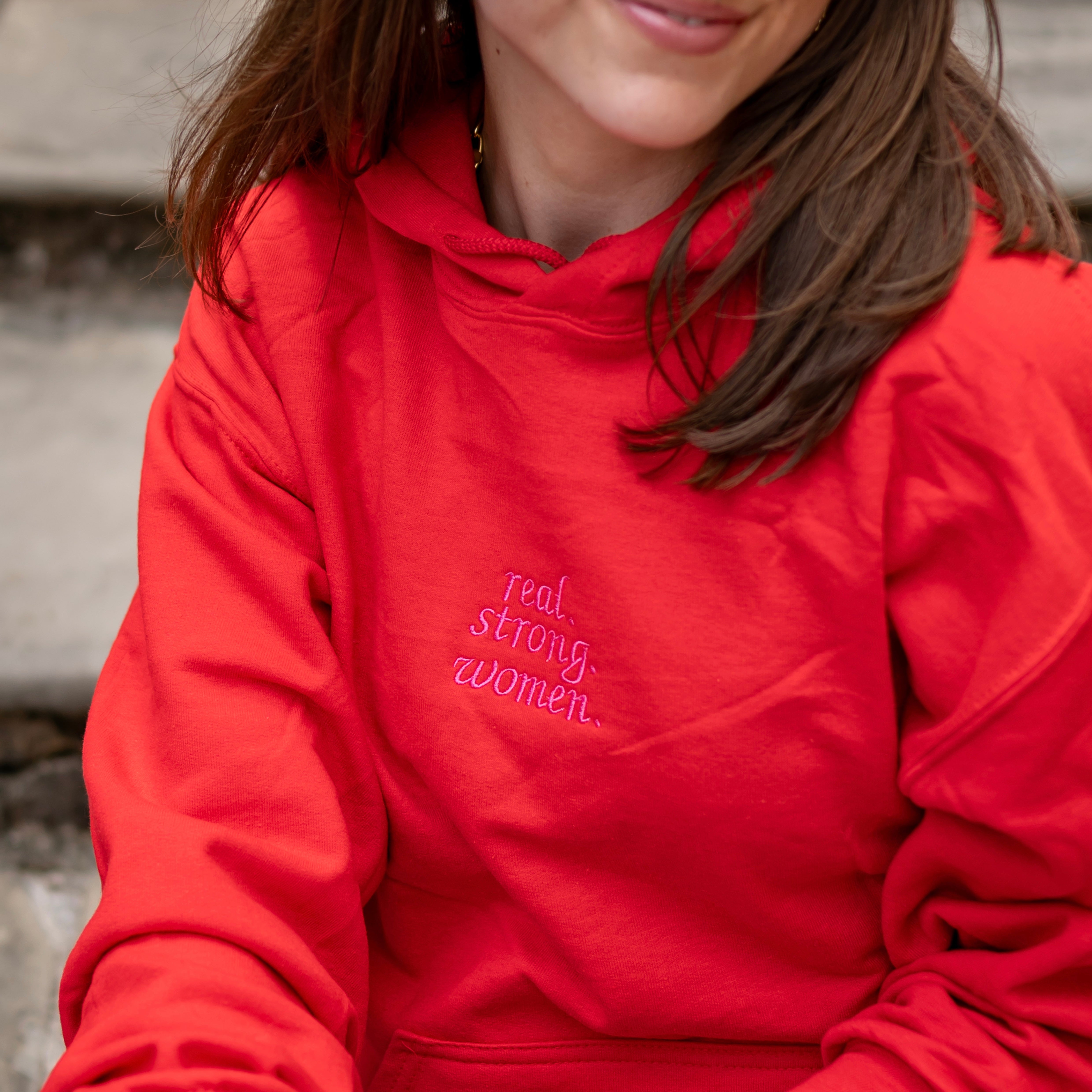 "Real. Strong. Women." Embroidered Hoodie Sweatshirt - Alpha Chi Omega