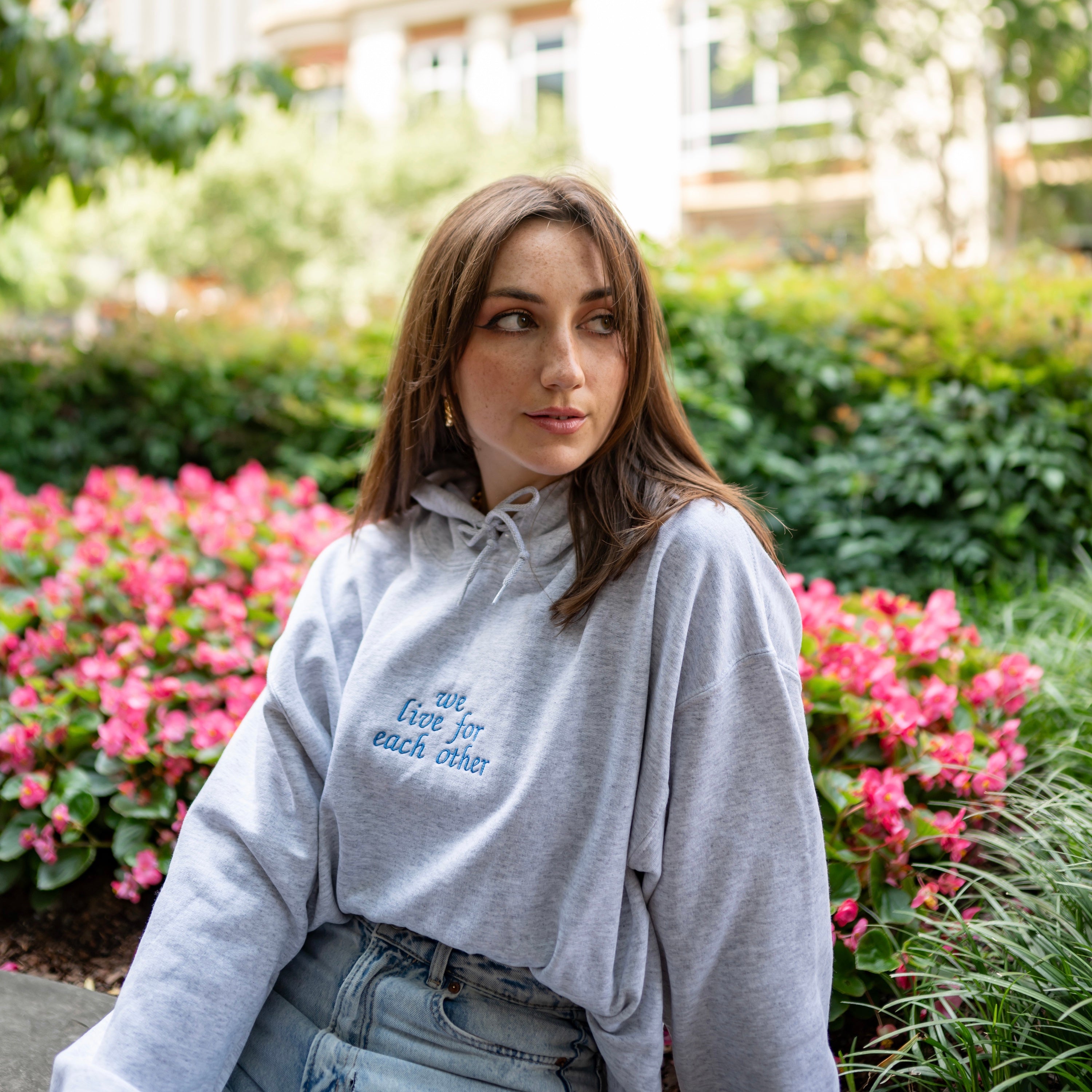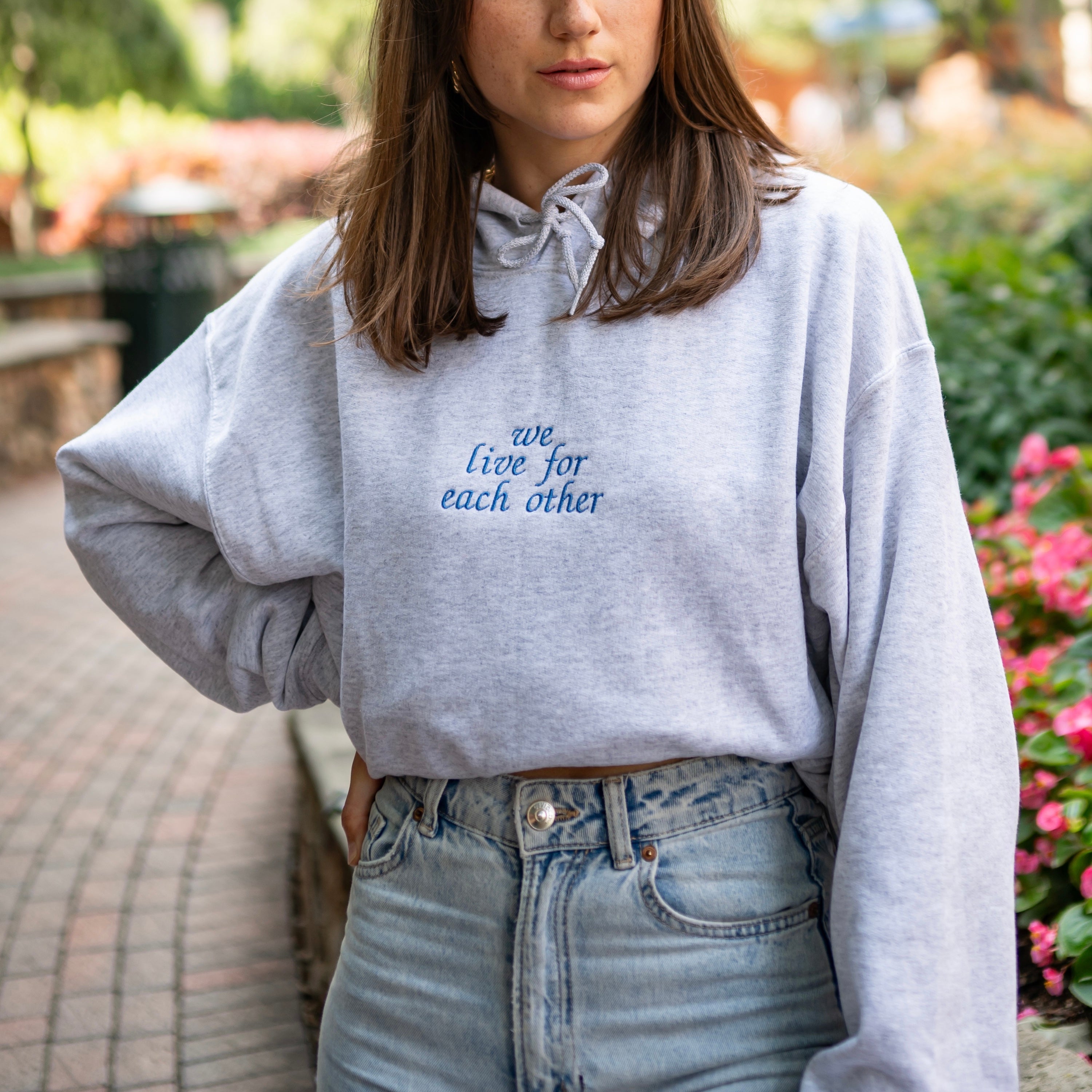 "We Live For Each Other" Embroidered Hoodie Sweatshirt - Alpha Delta Pi