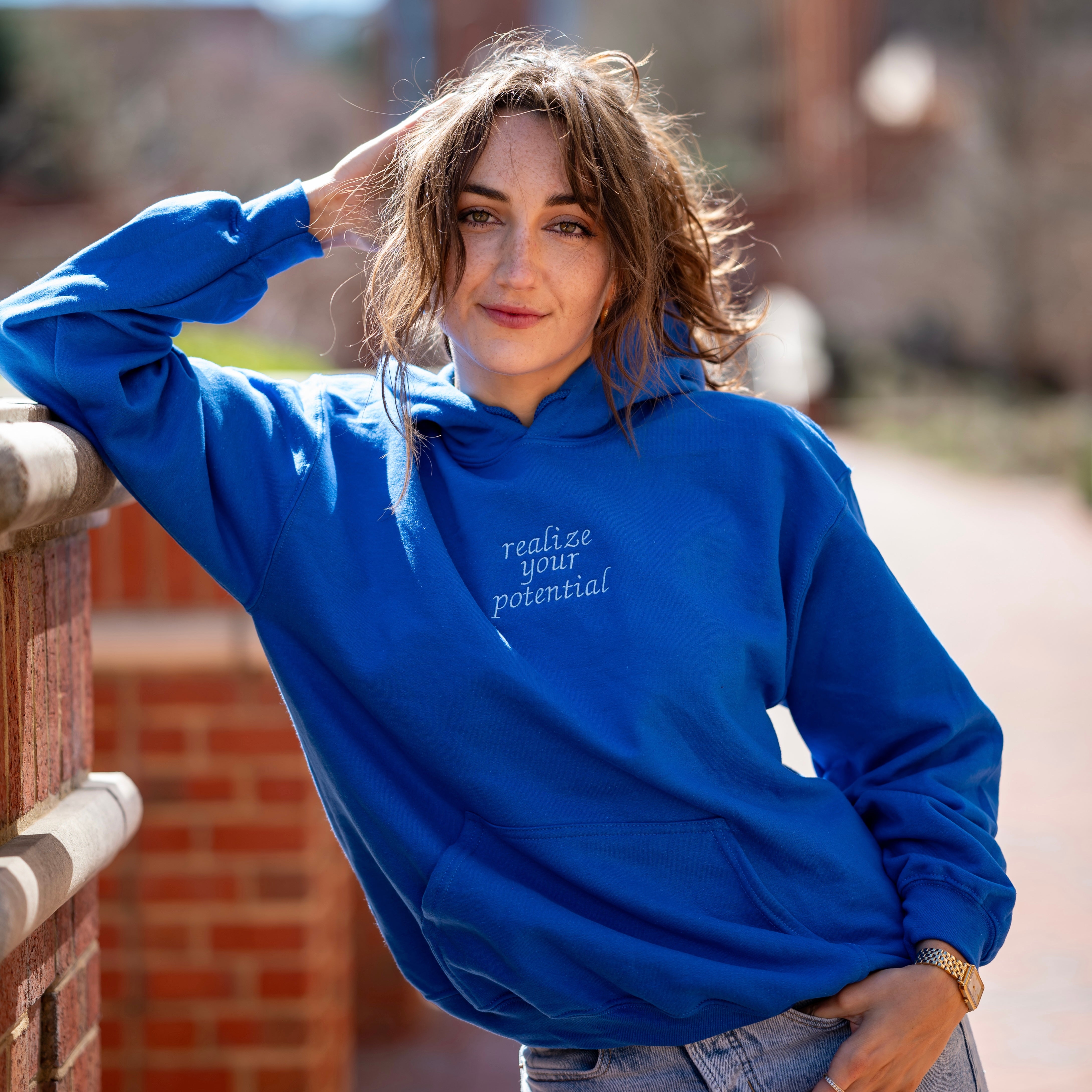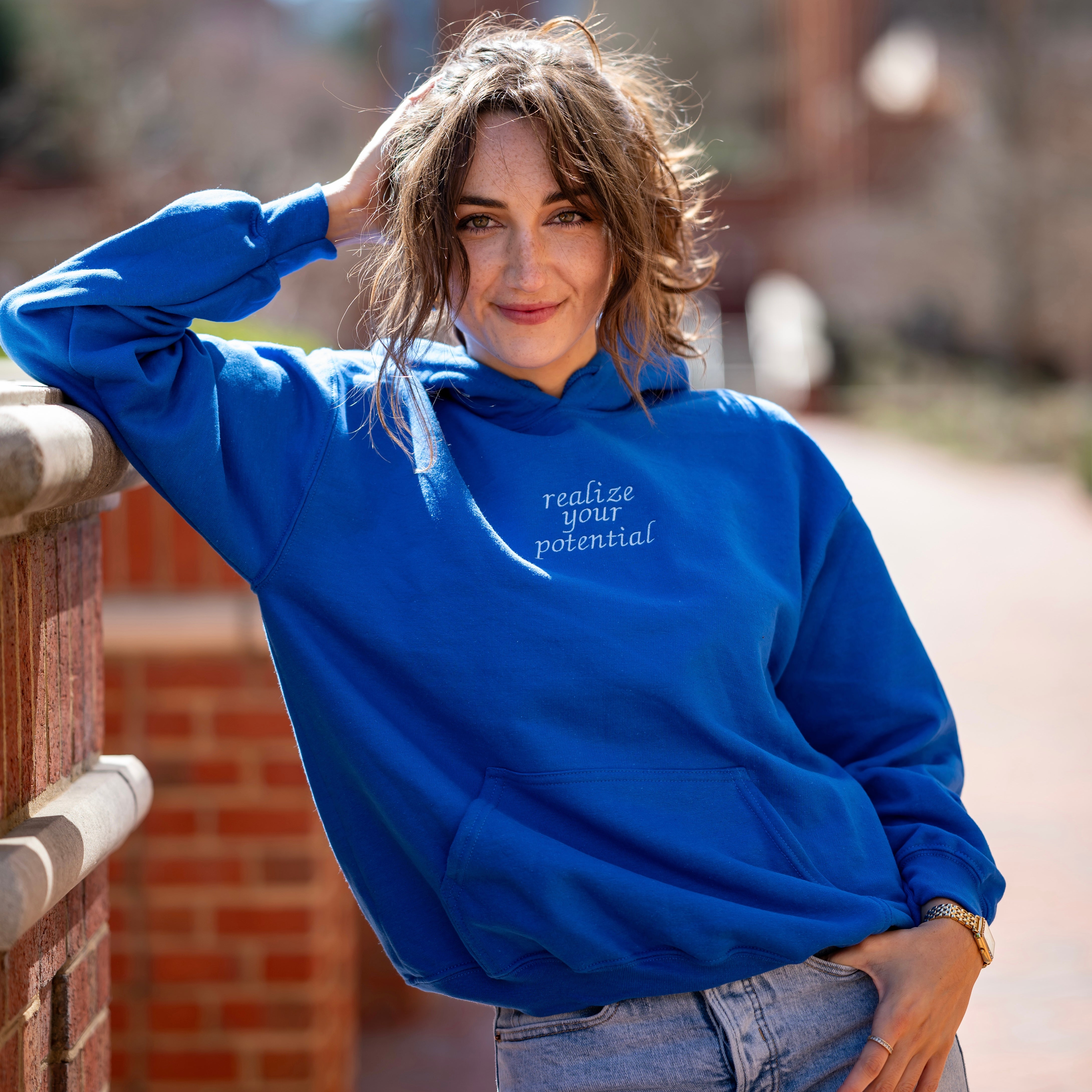 "Realize Your Potential" Embroidered Hoodie Sweatshirt - Alpha Xi Delta