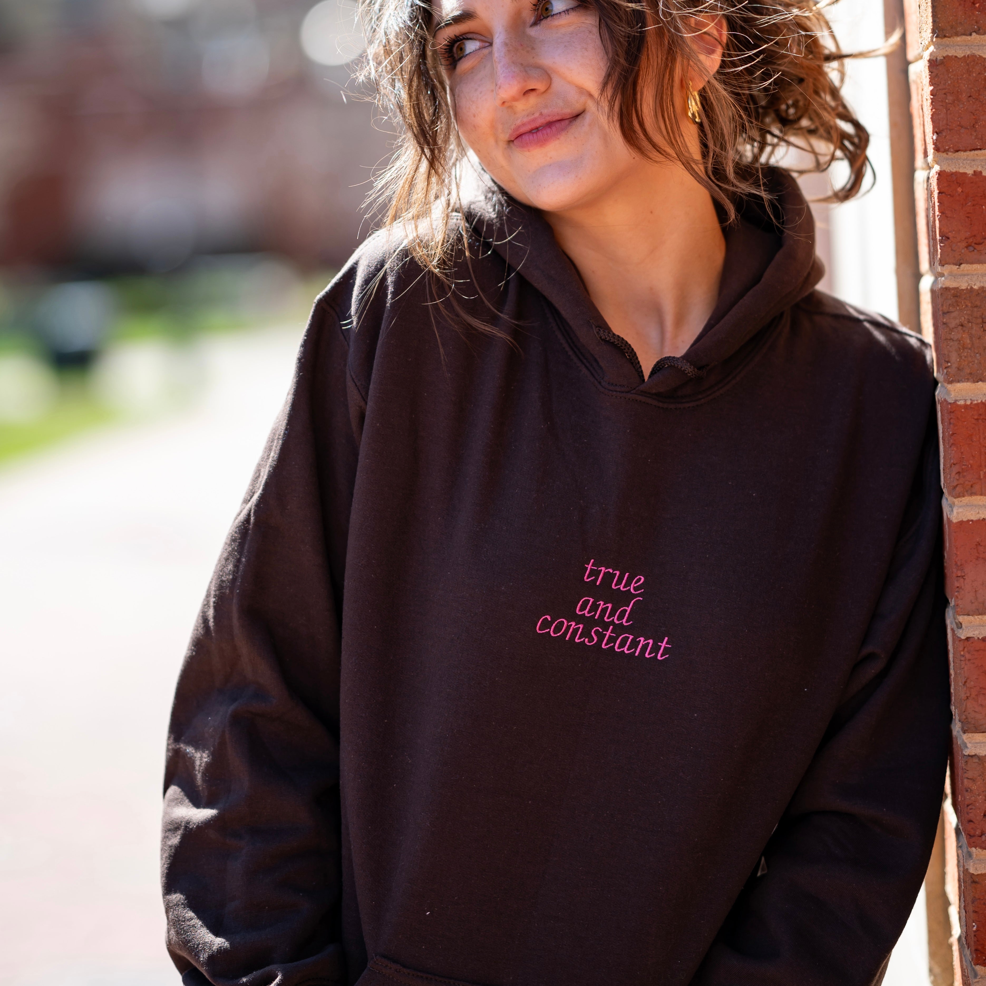 "True And Constant" Embroidered Hoodie Sweatshirt - Gamma Phi Beta