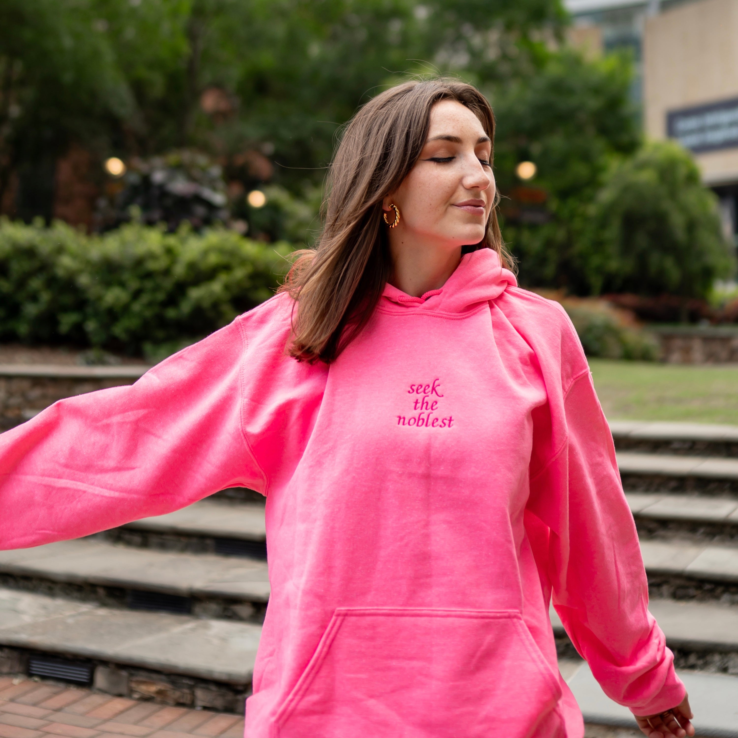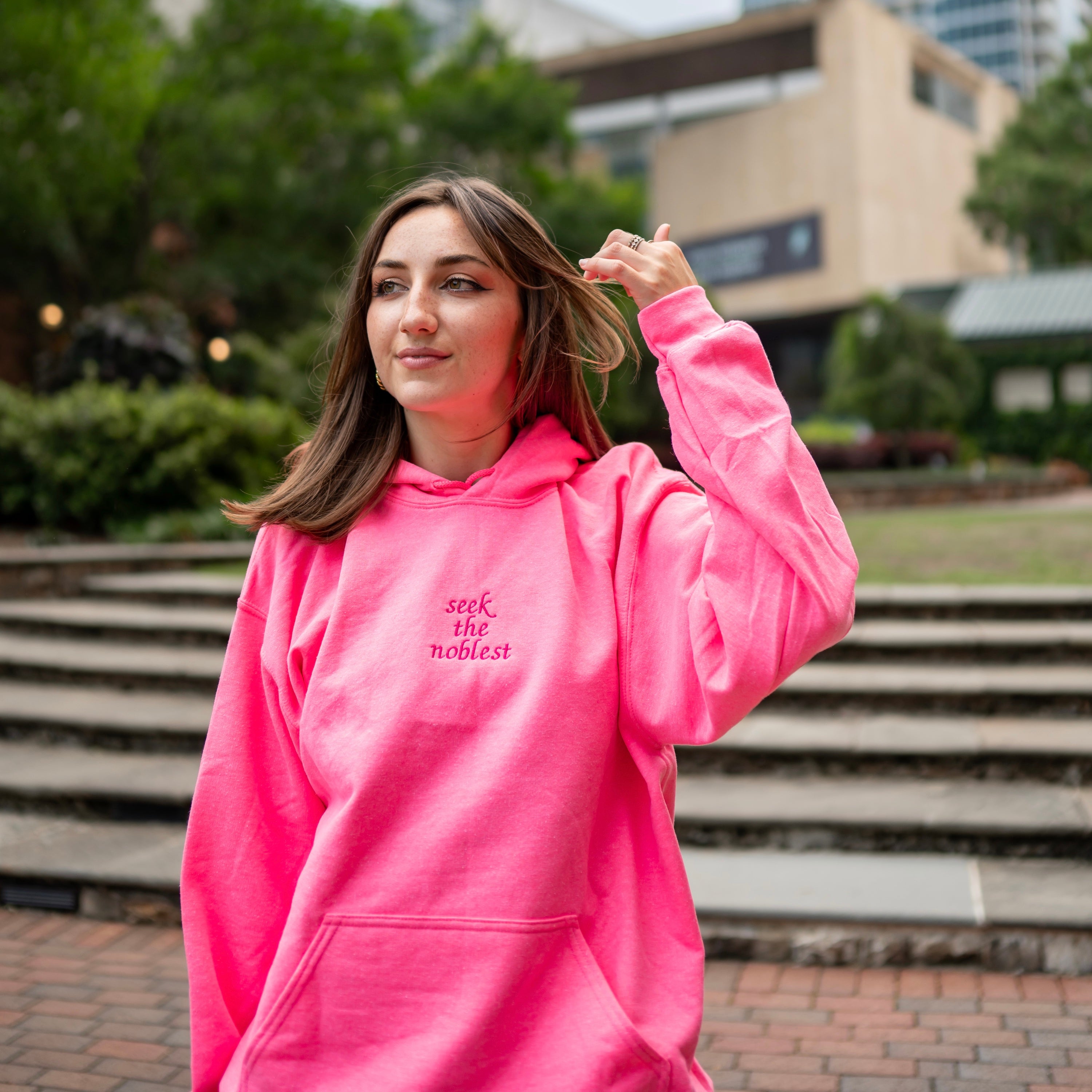"Seek The Noblest" Embroidered Hoodie Sweatshirt - Zeta Tau Alpha