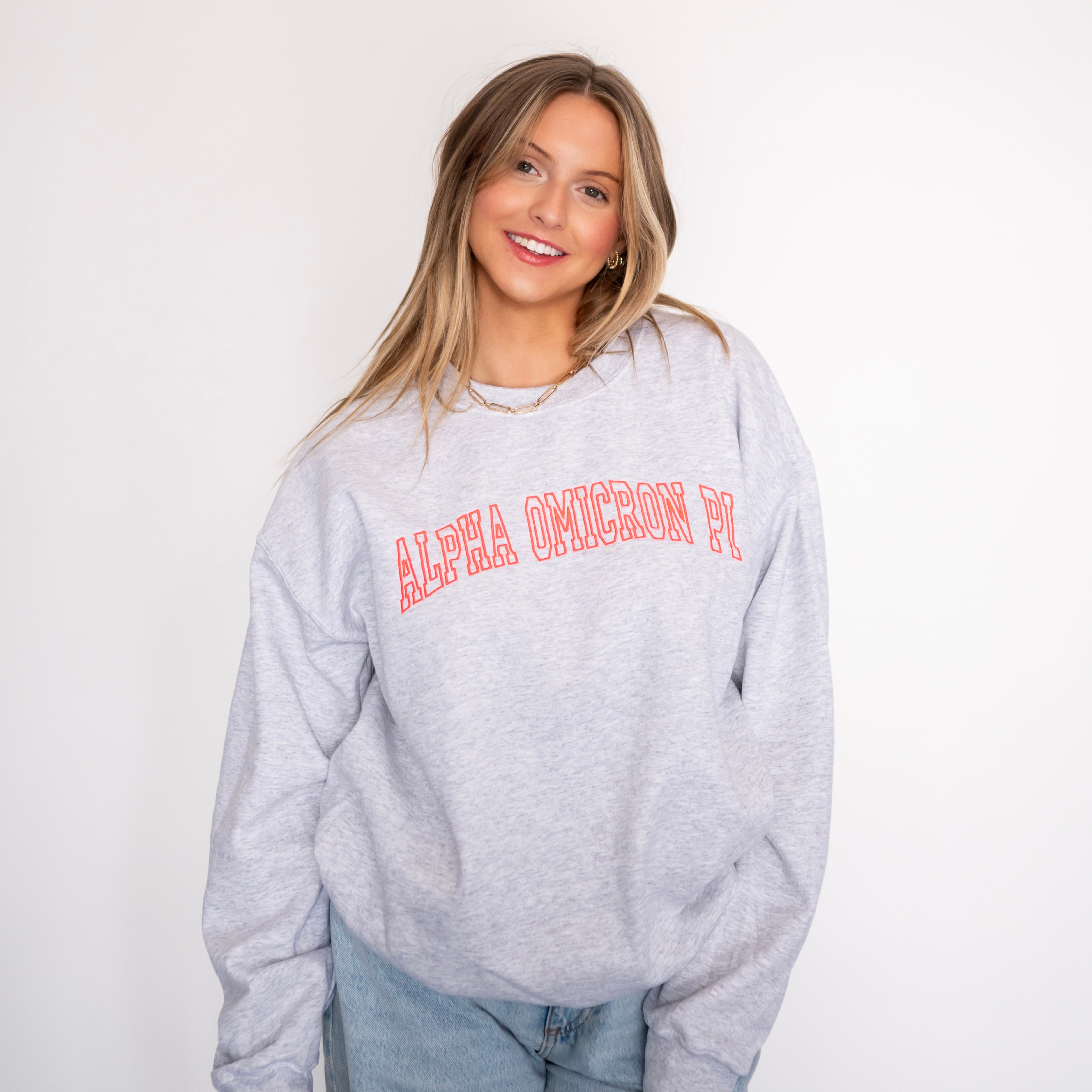 Homebody Embroidered Crew Neck Sweatshirt - Alpha Omicron Pi
