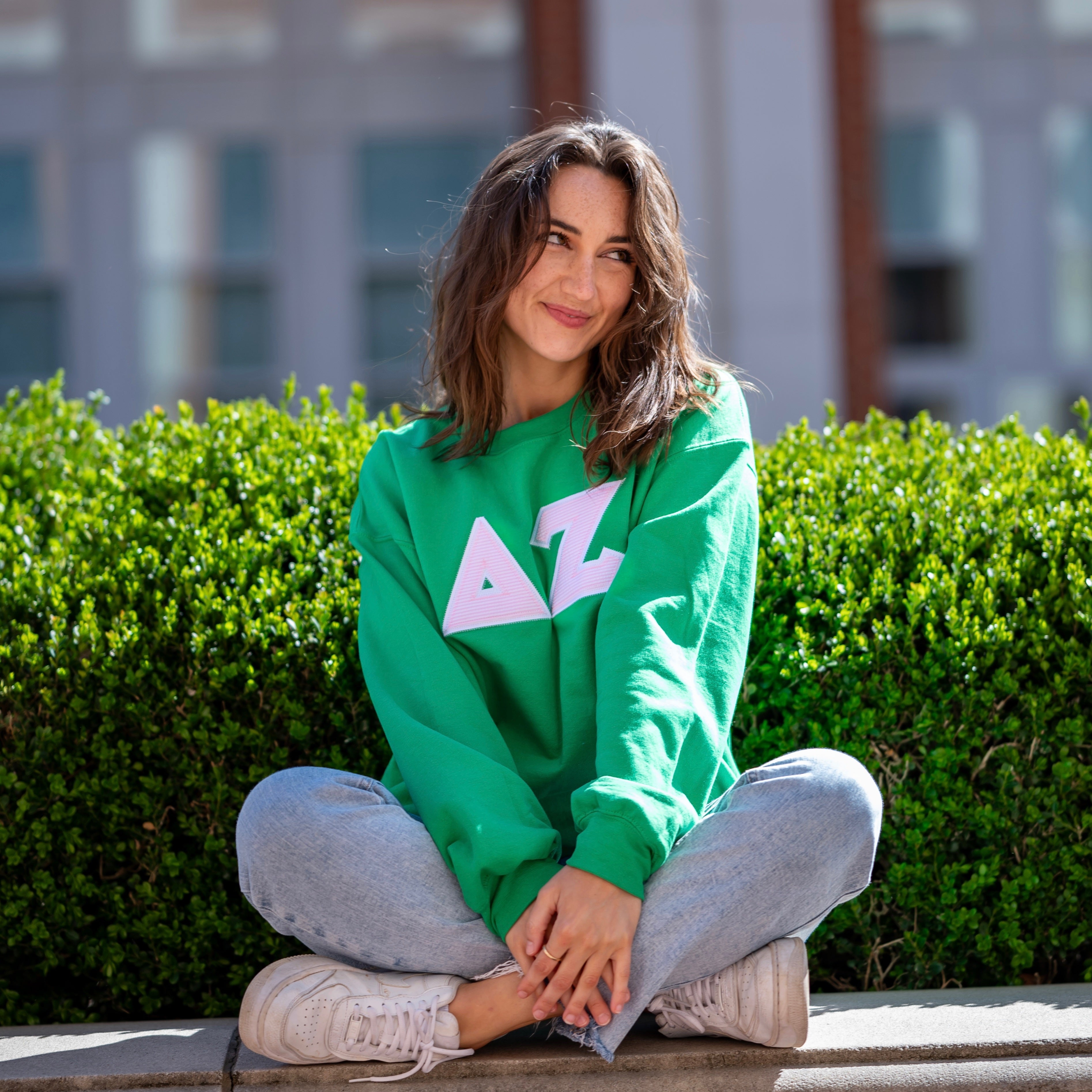Light Pink Seersucker Greek Letter Crewneck Sweatshirt - Delta Zeta