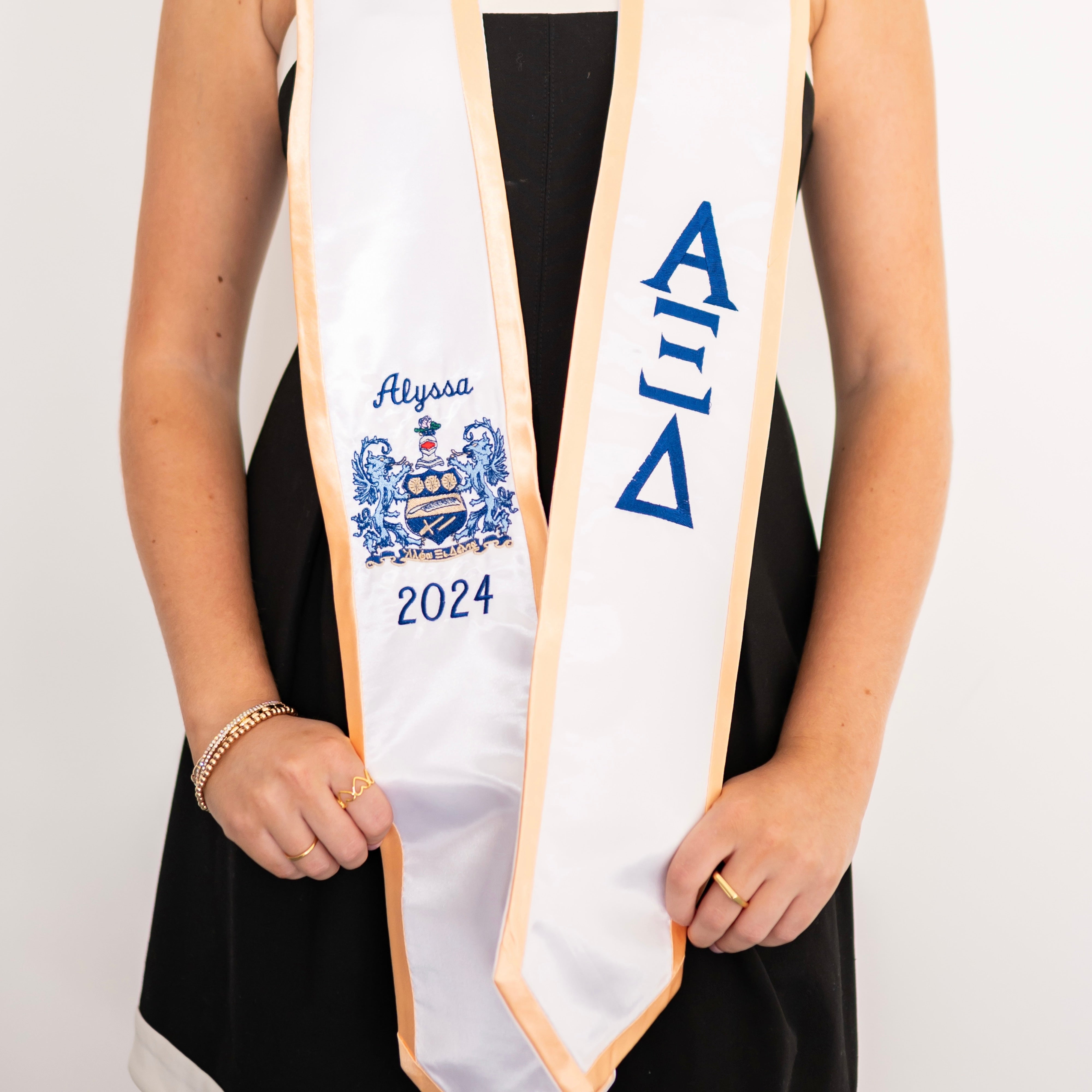 Alpha Xi Delta Personalized Crest Pointed Sorority Graduation Stole