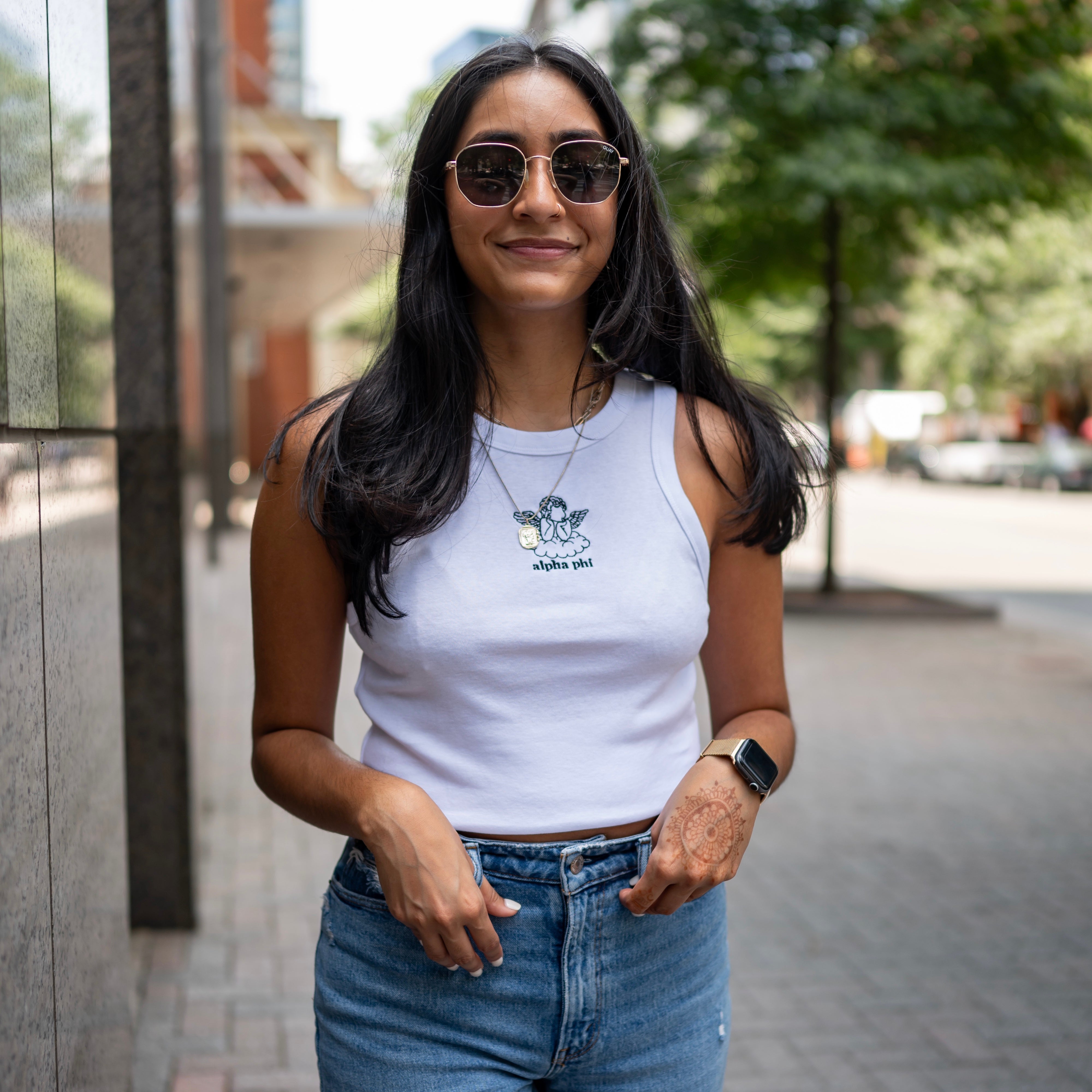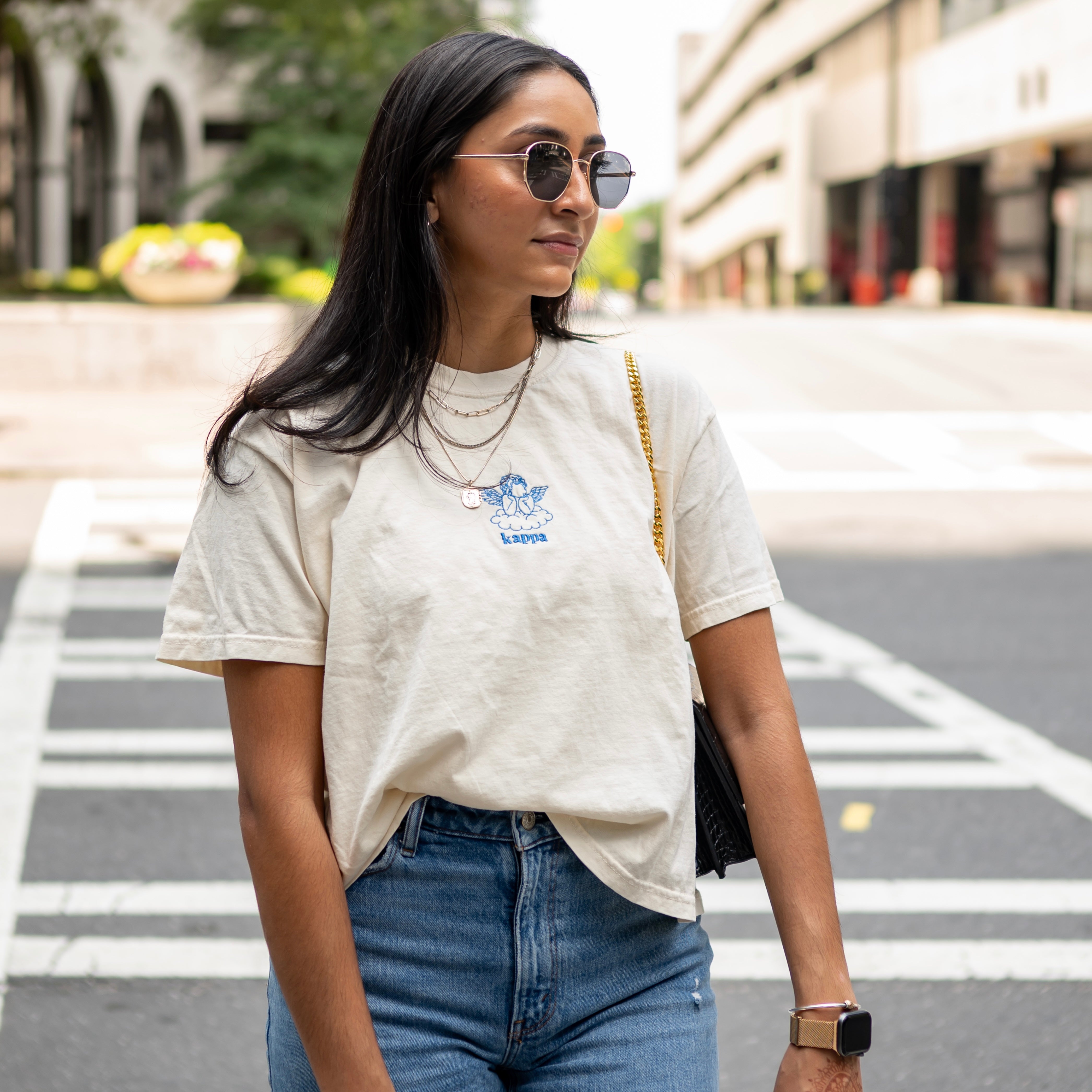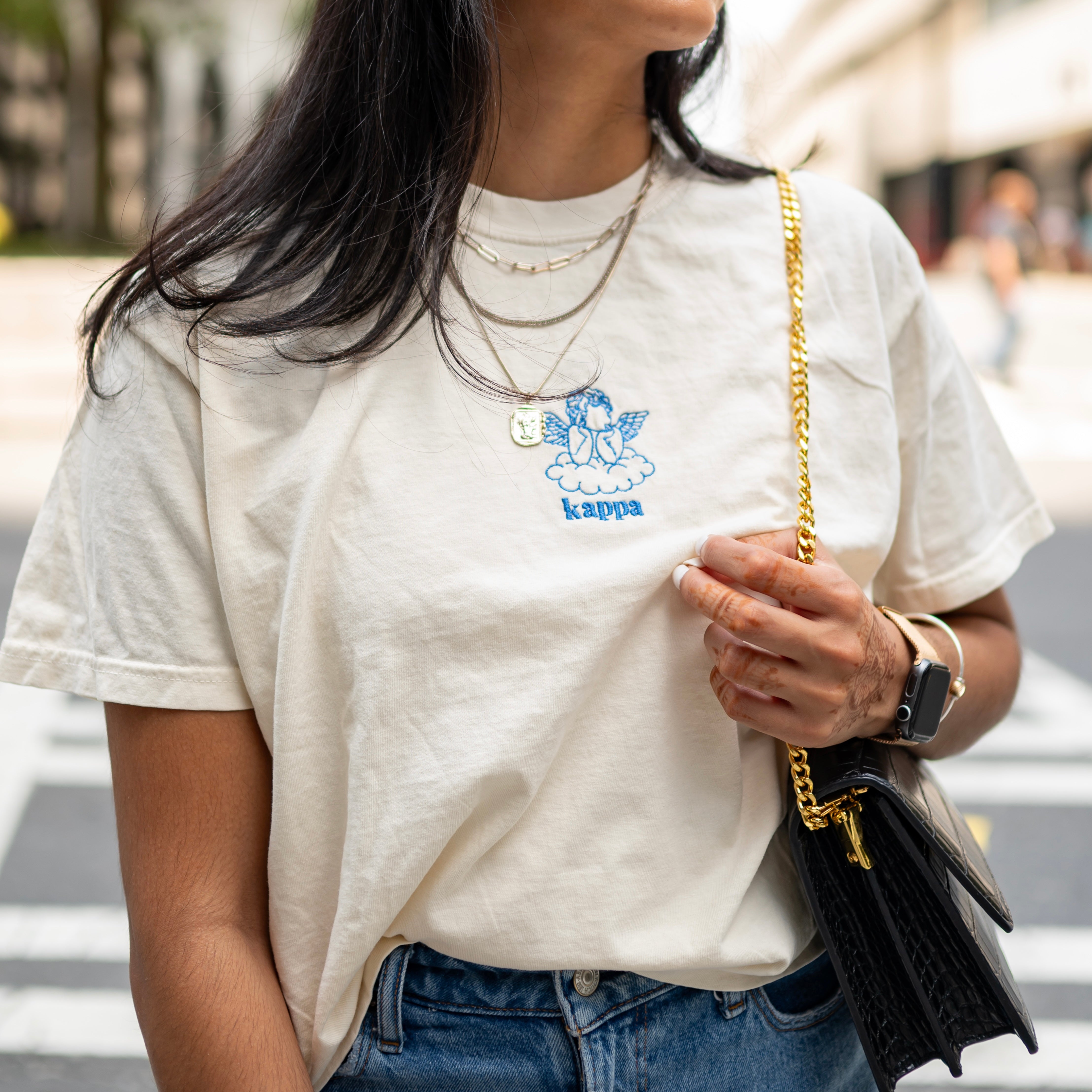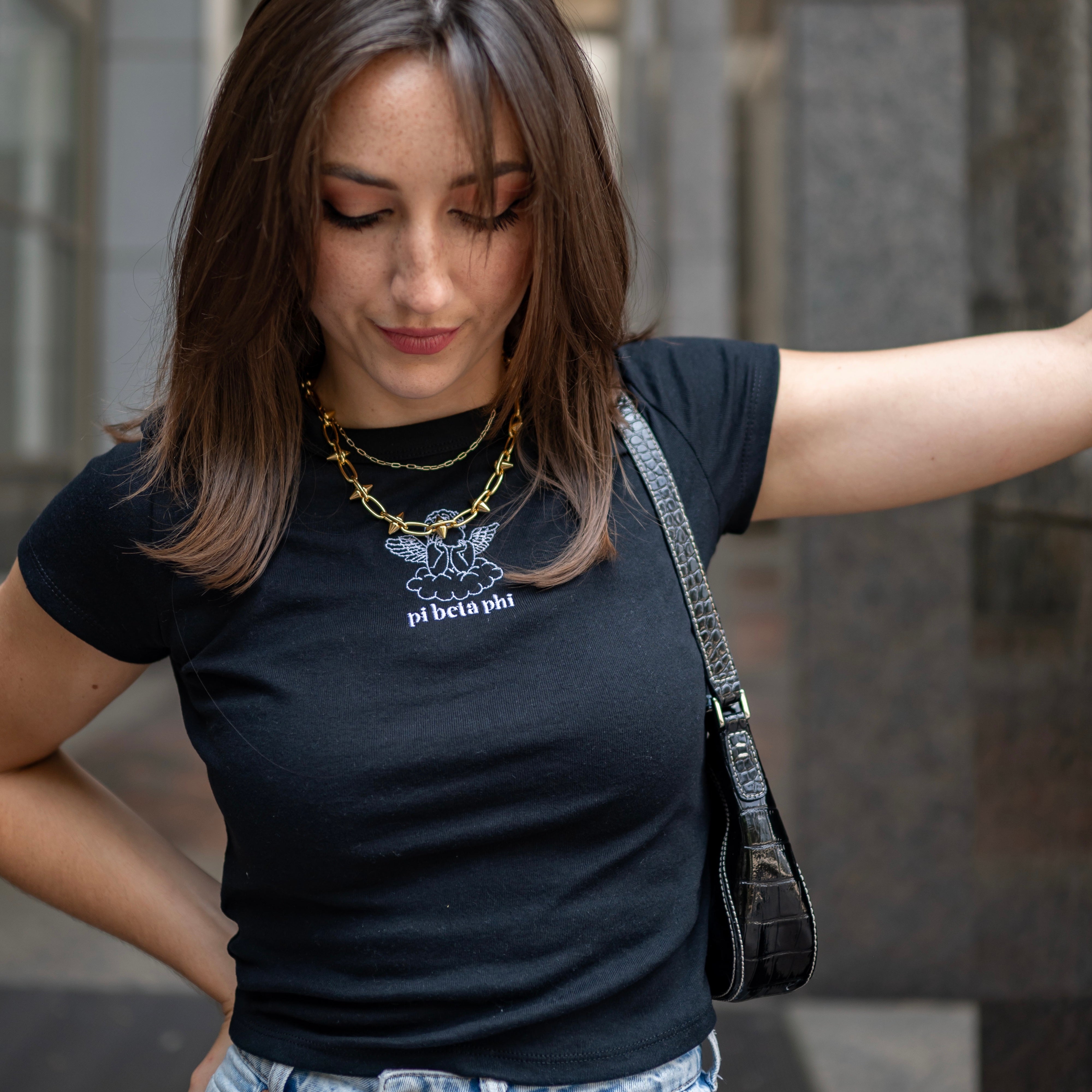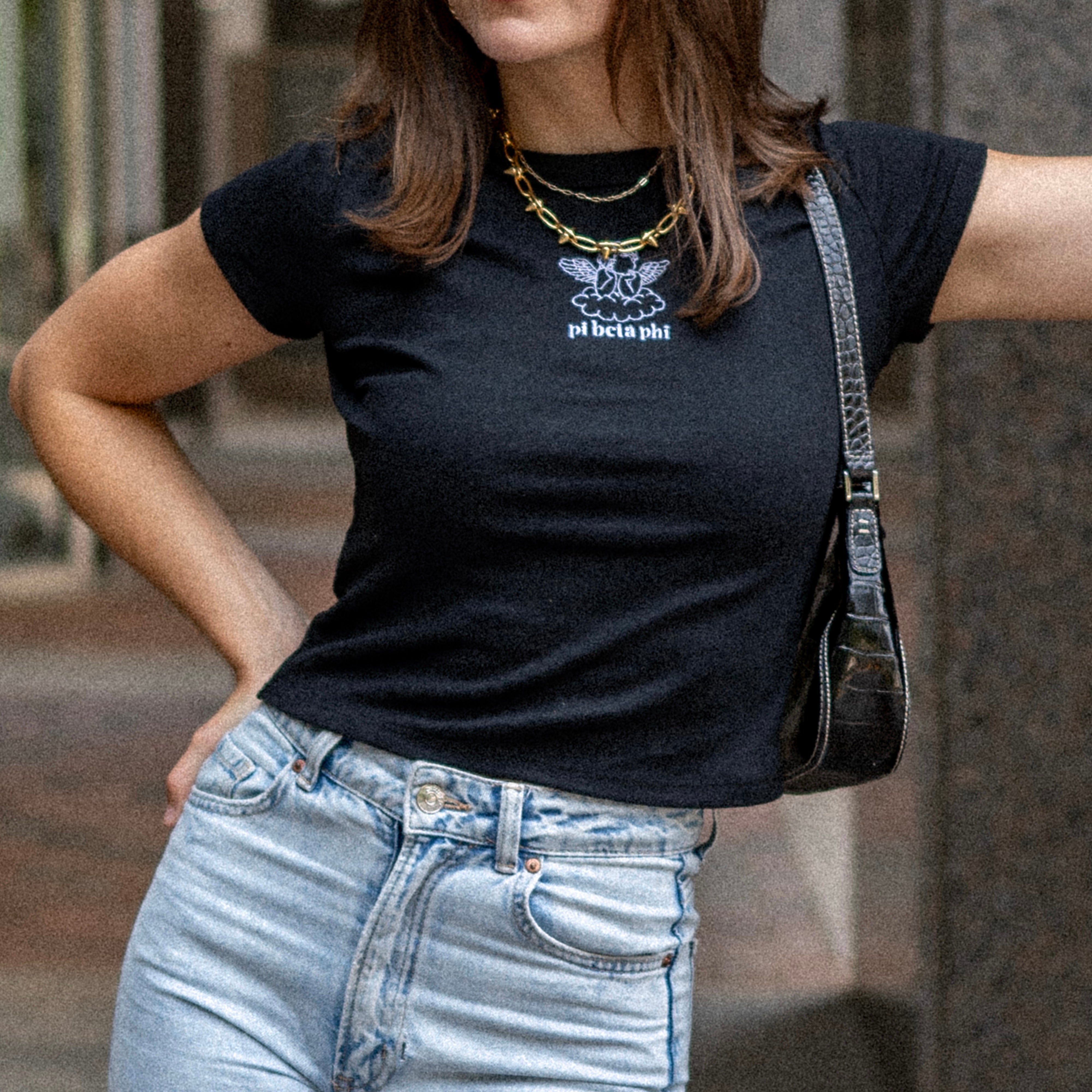Angel Energy Embroidered Cropped Crew Neck T-Shirt