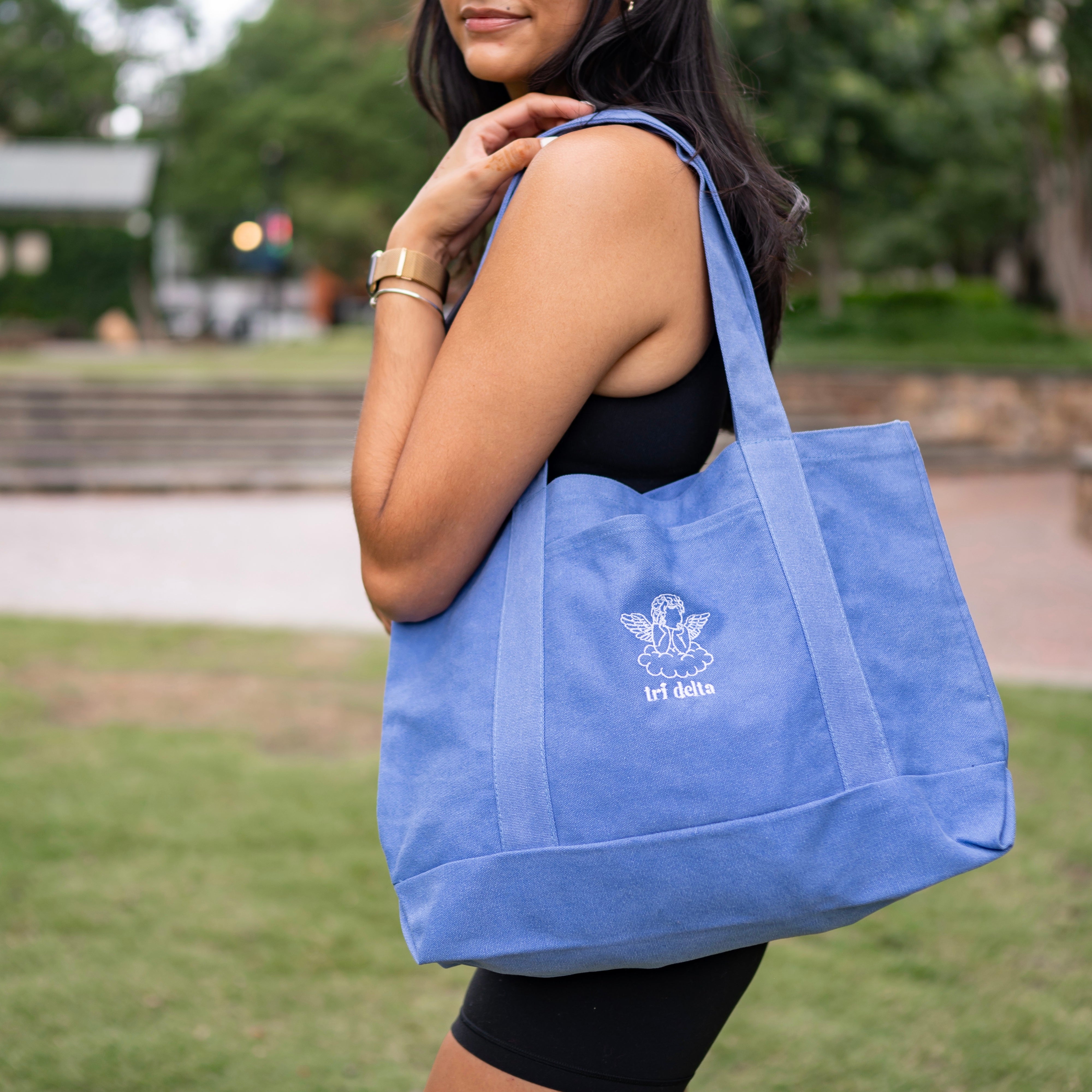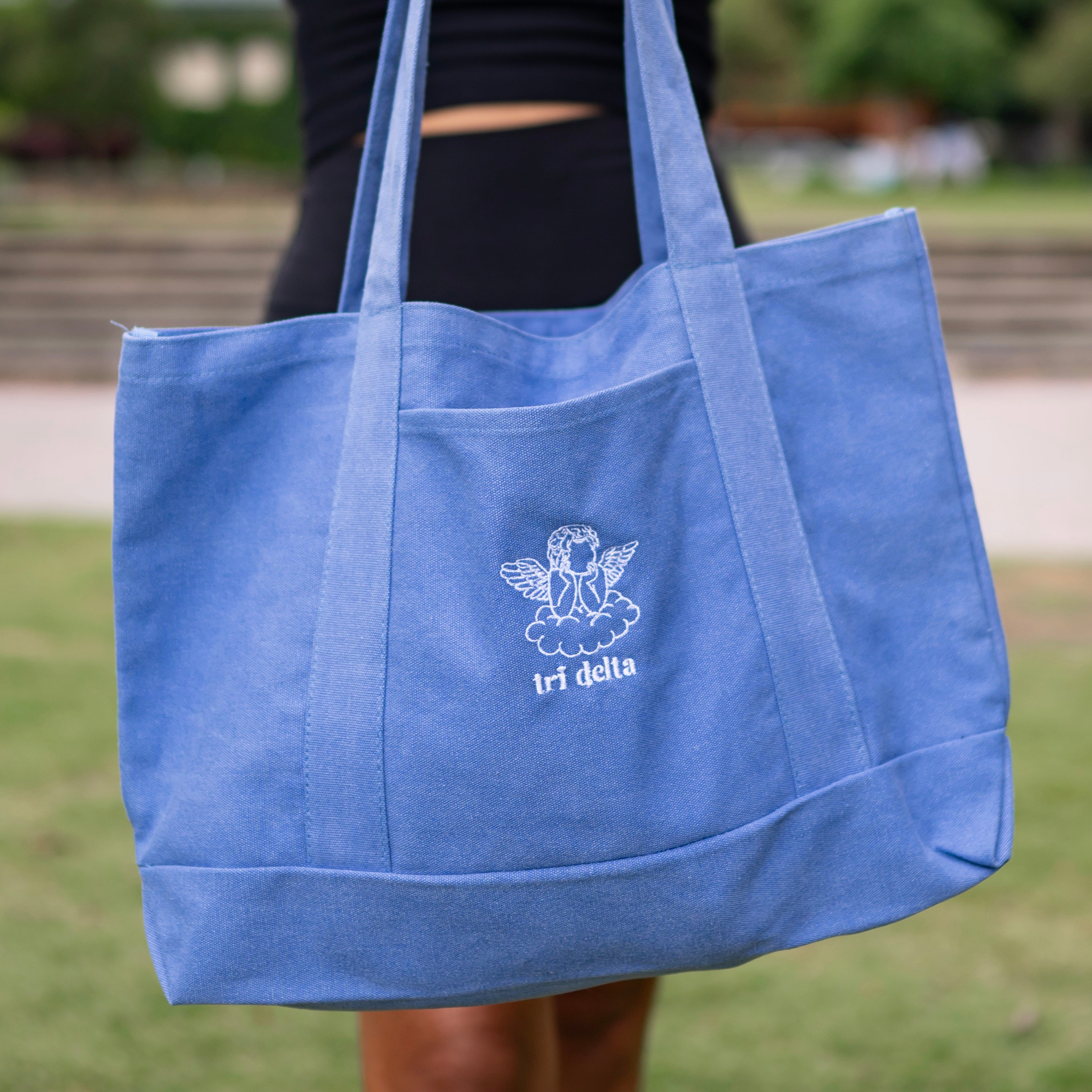 Angel Energy Embroidered Pigment Dyed Tote Bag