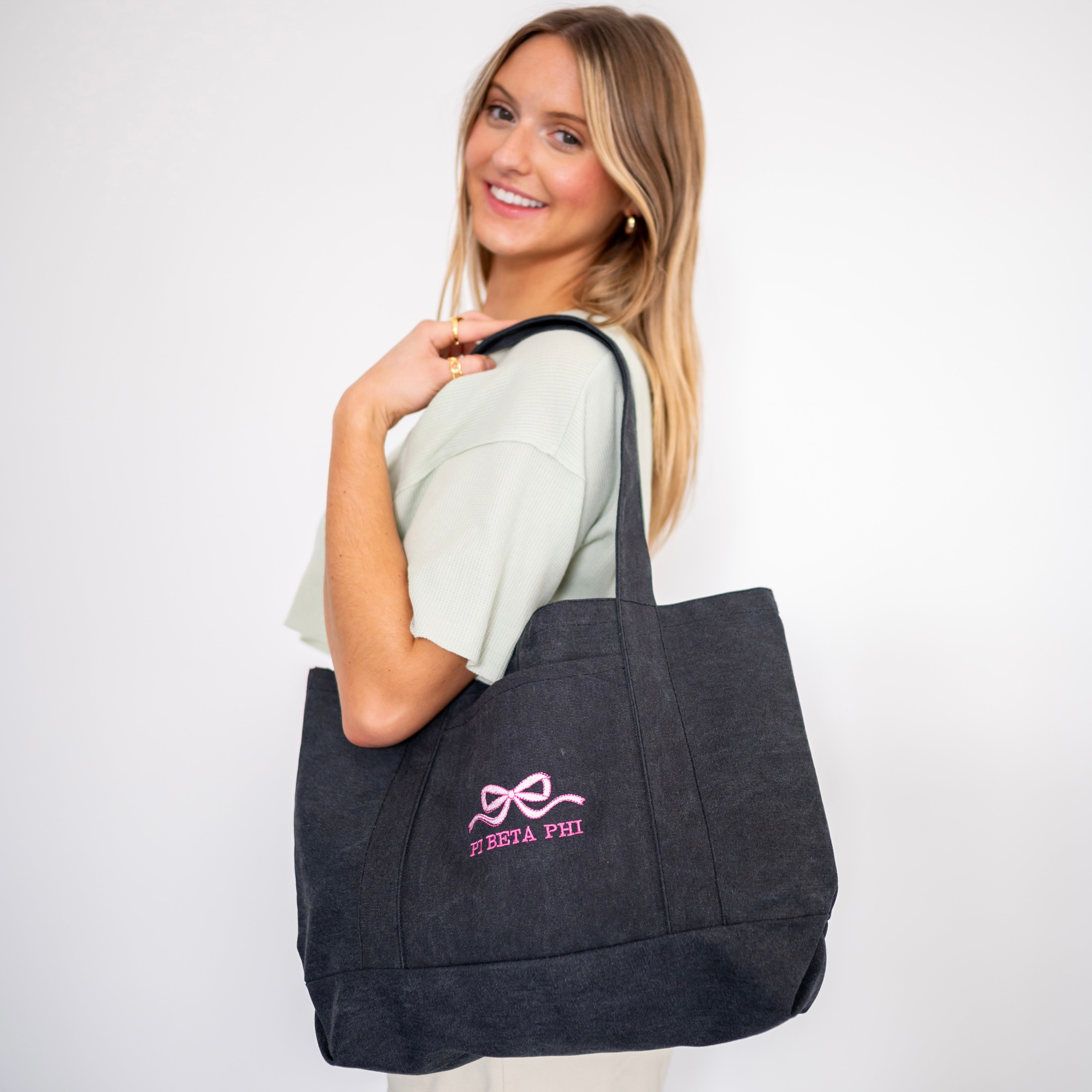 Tied & True Embroidered Pigment Dyed Tote Bag