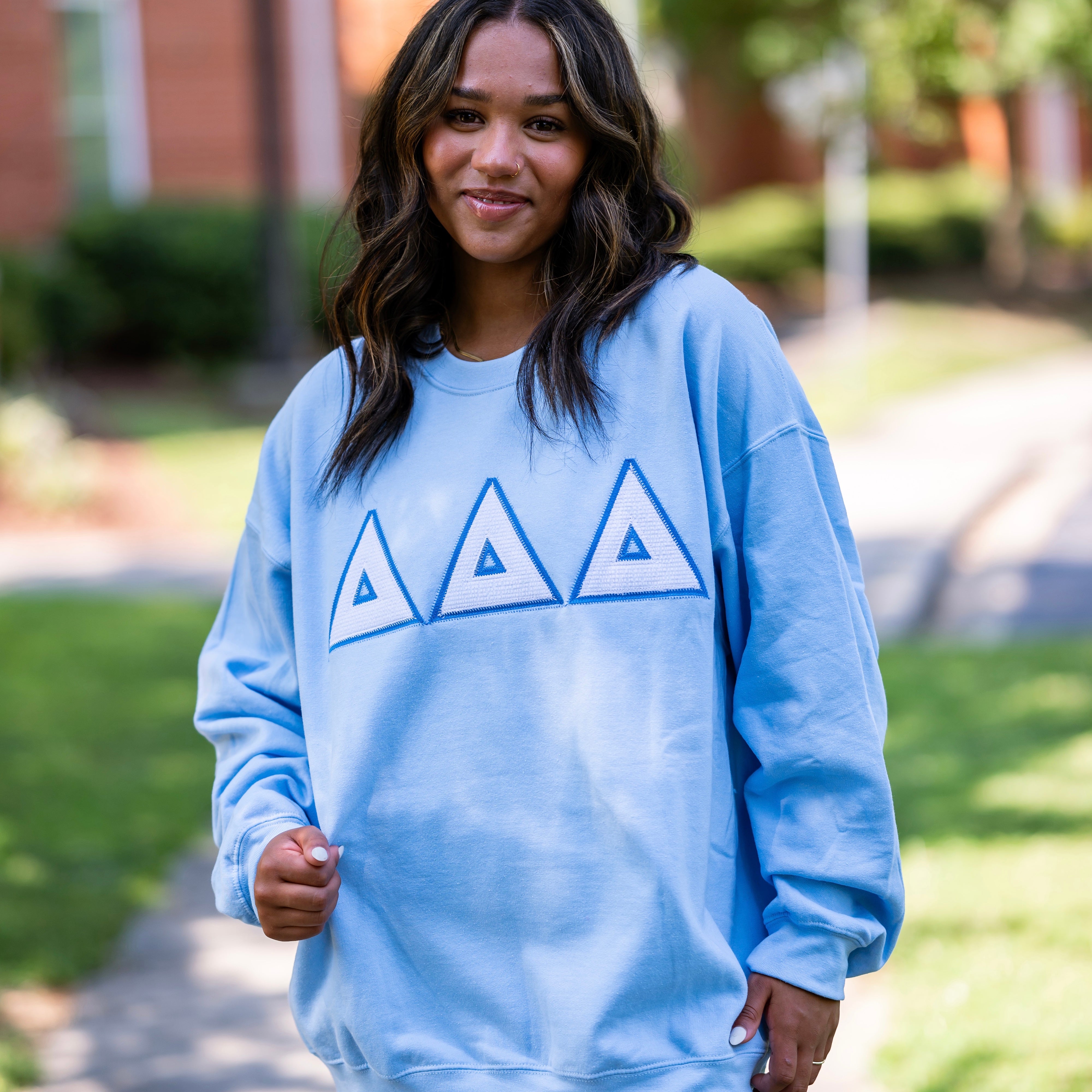 White Seersucker Greek Letter Crewneck Sweatshirt - Delta Delta Delta