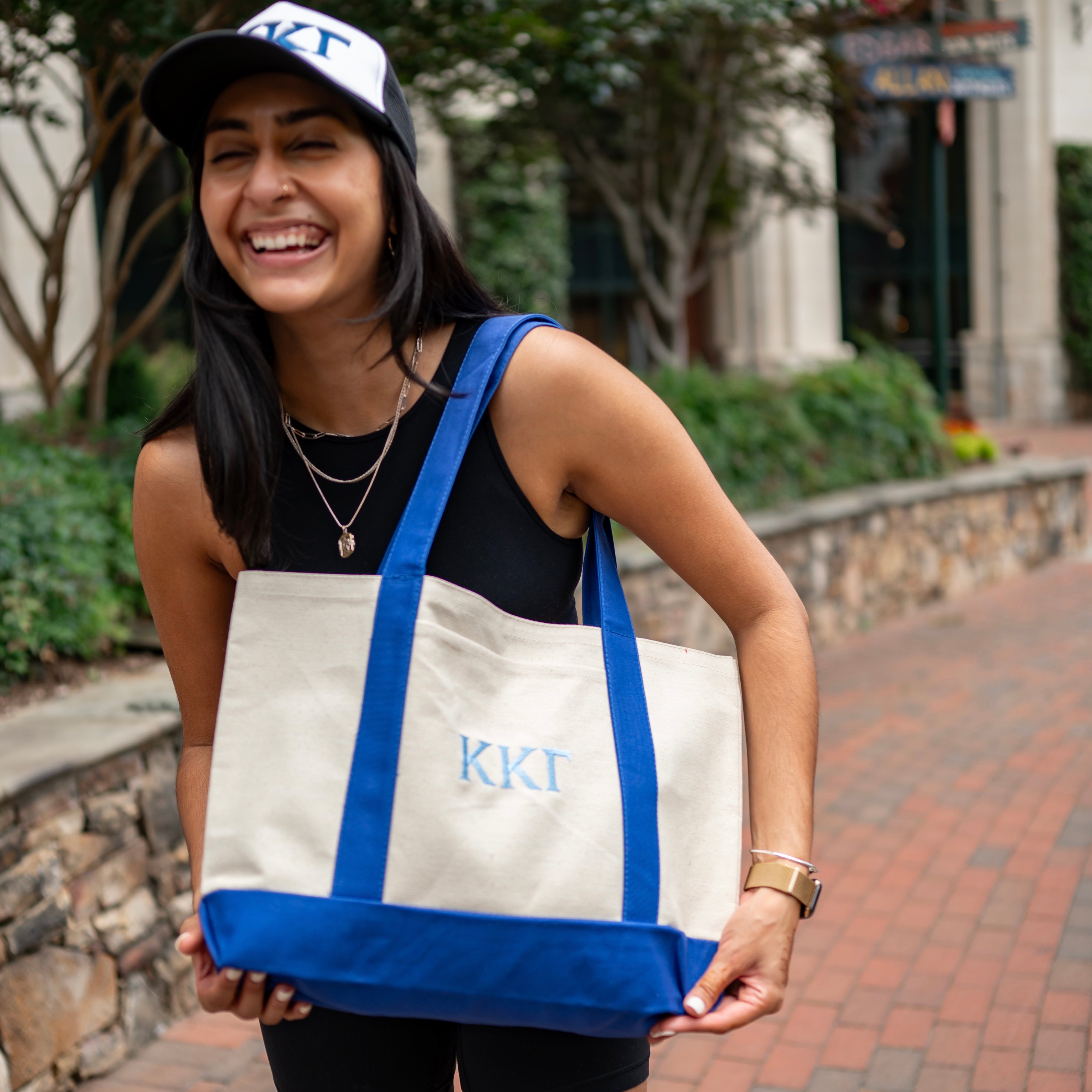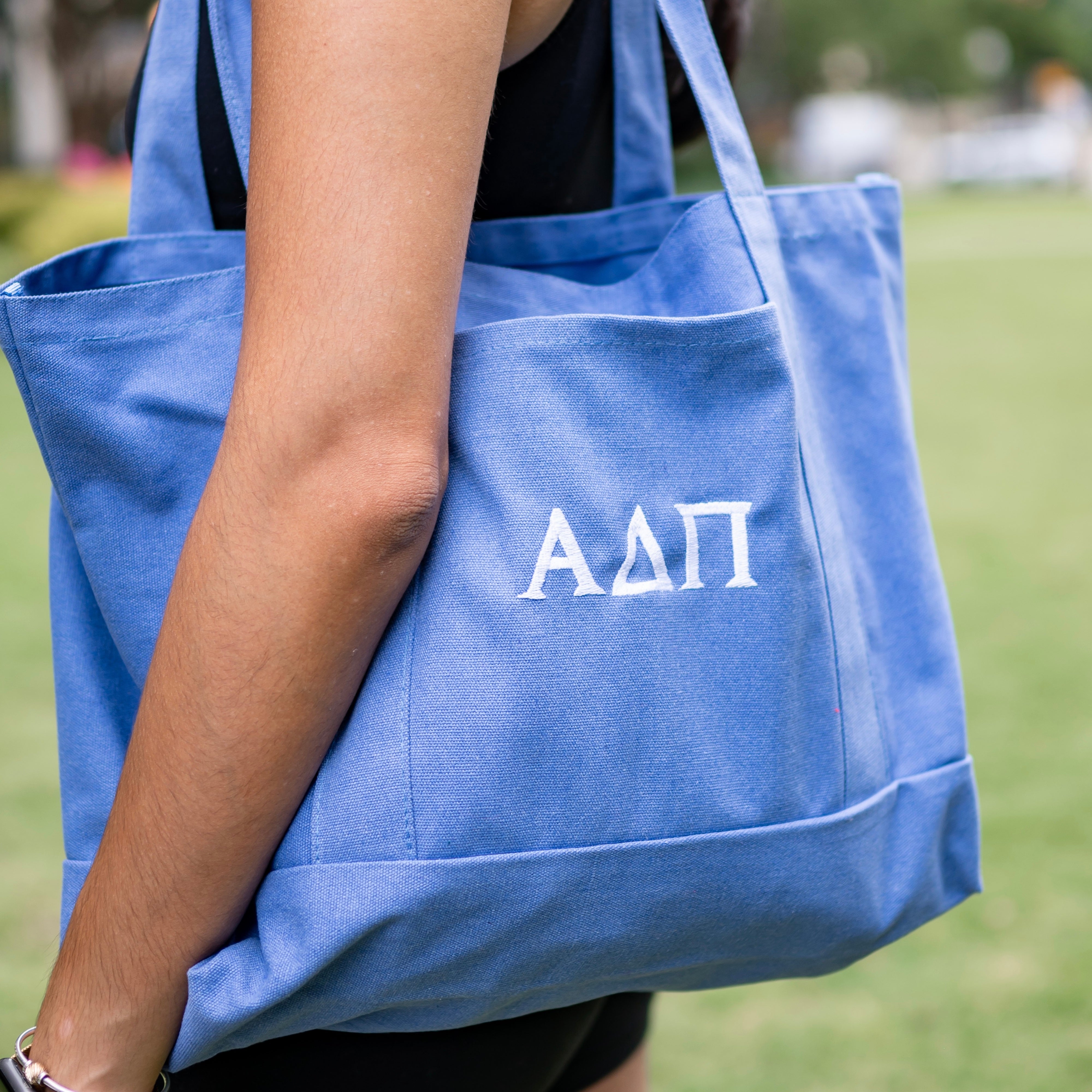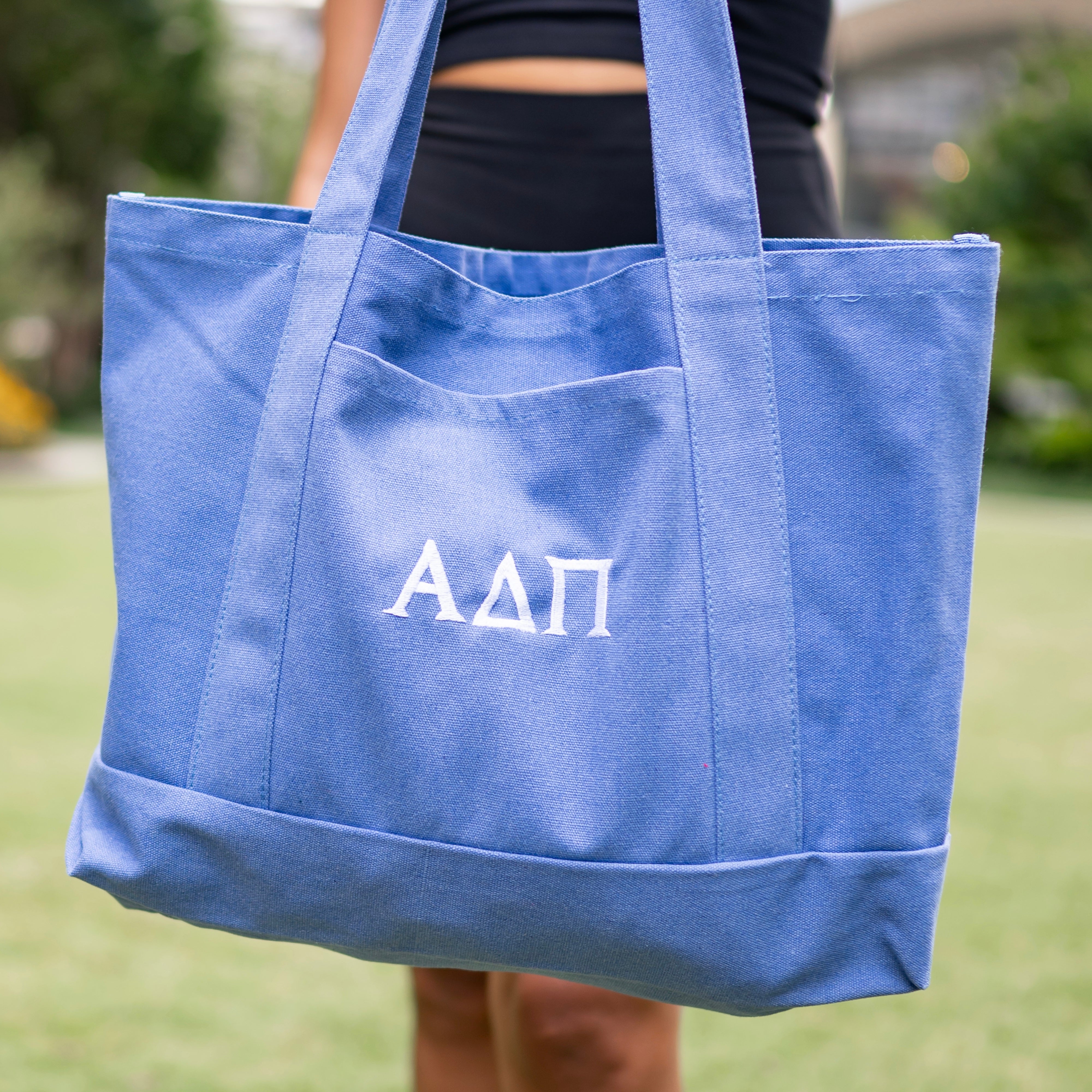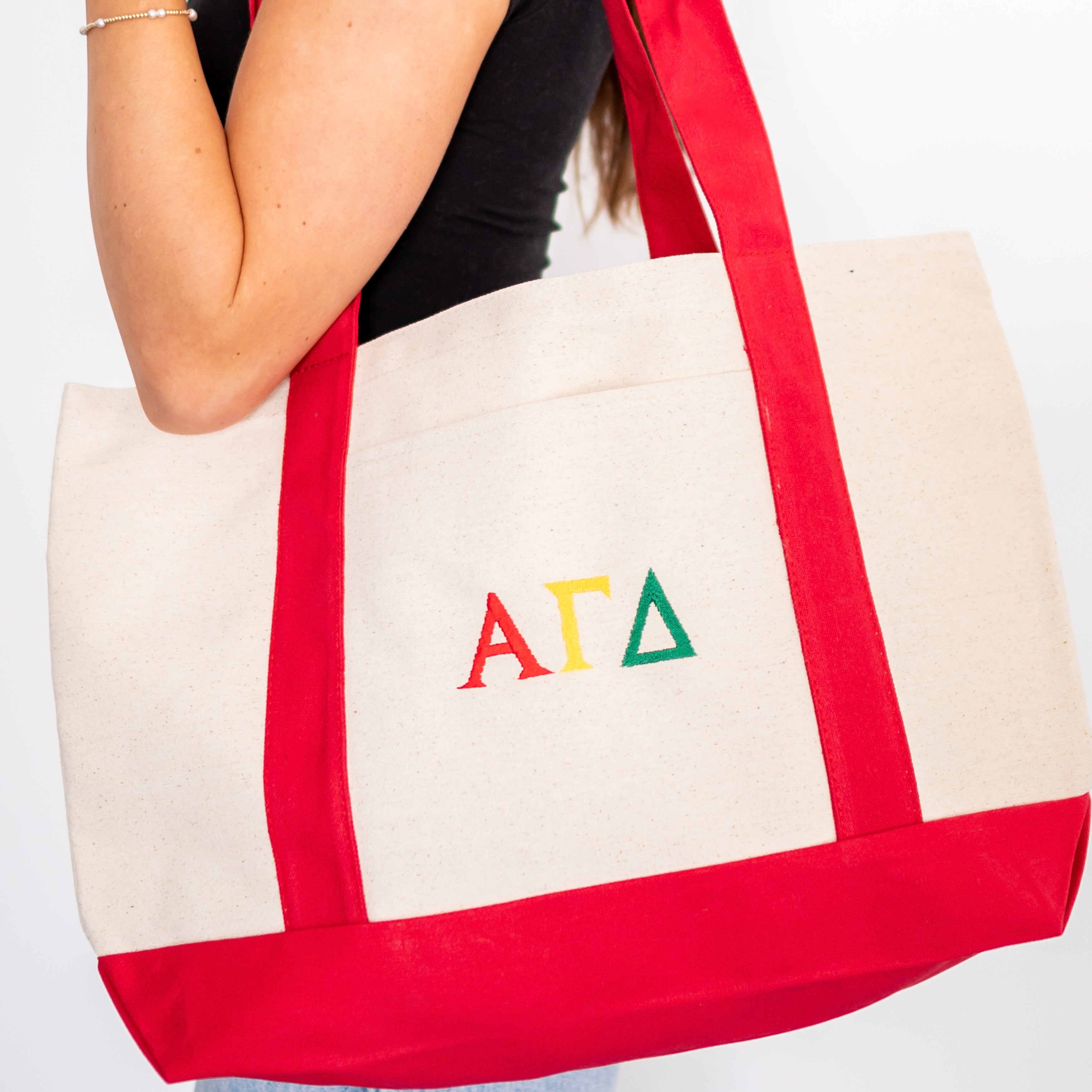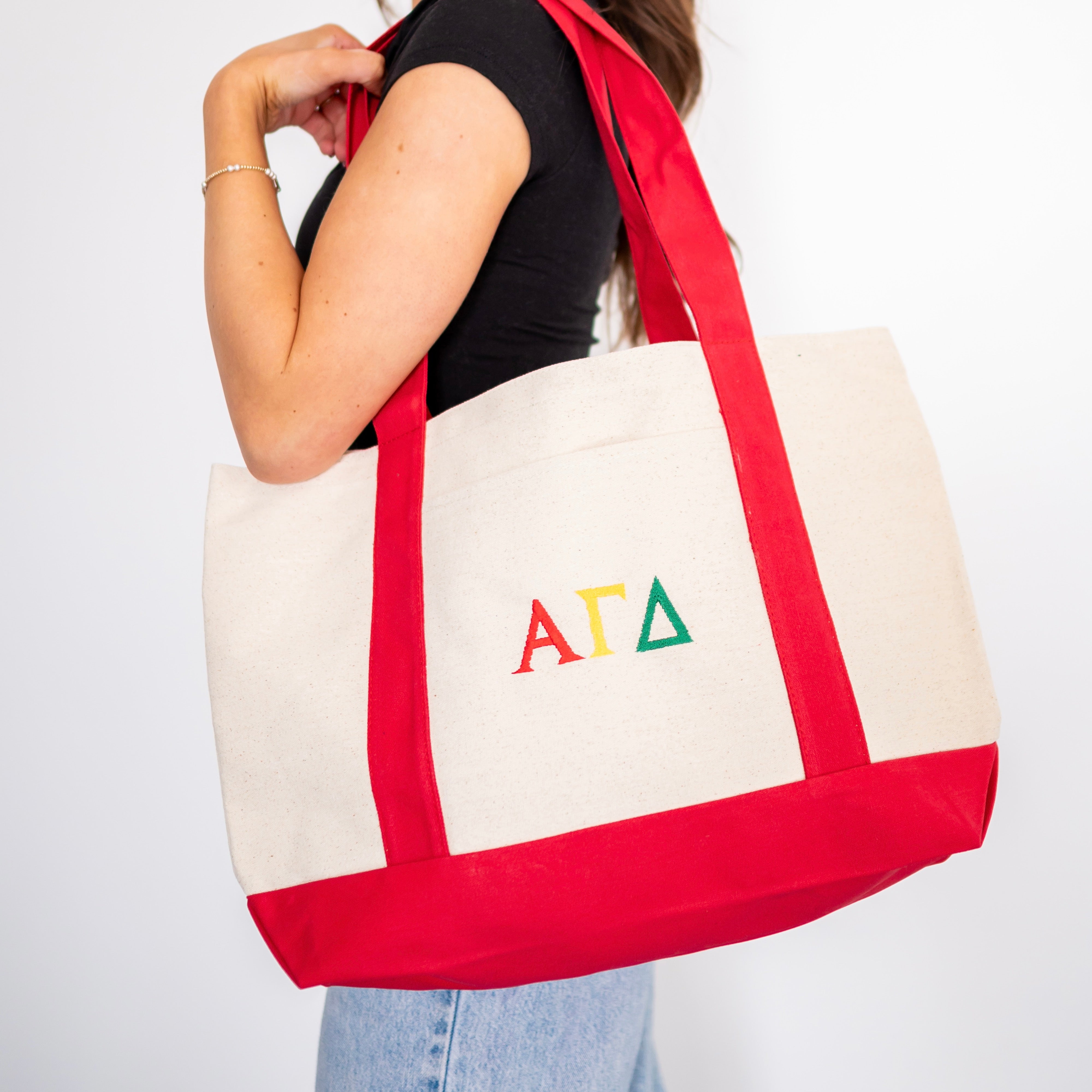 Basic Greek Letter Embroidered Canvas Tote Bag - Alpha Gamma Delta