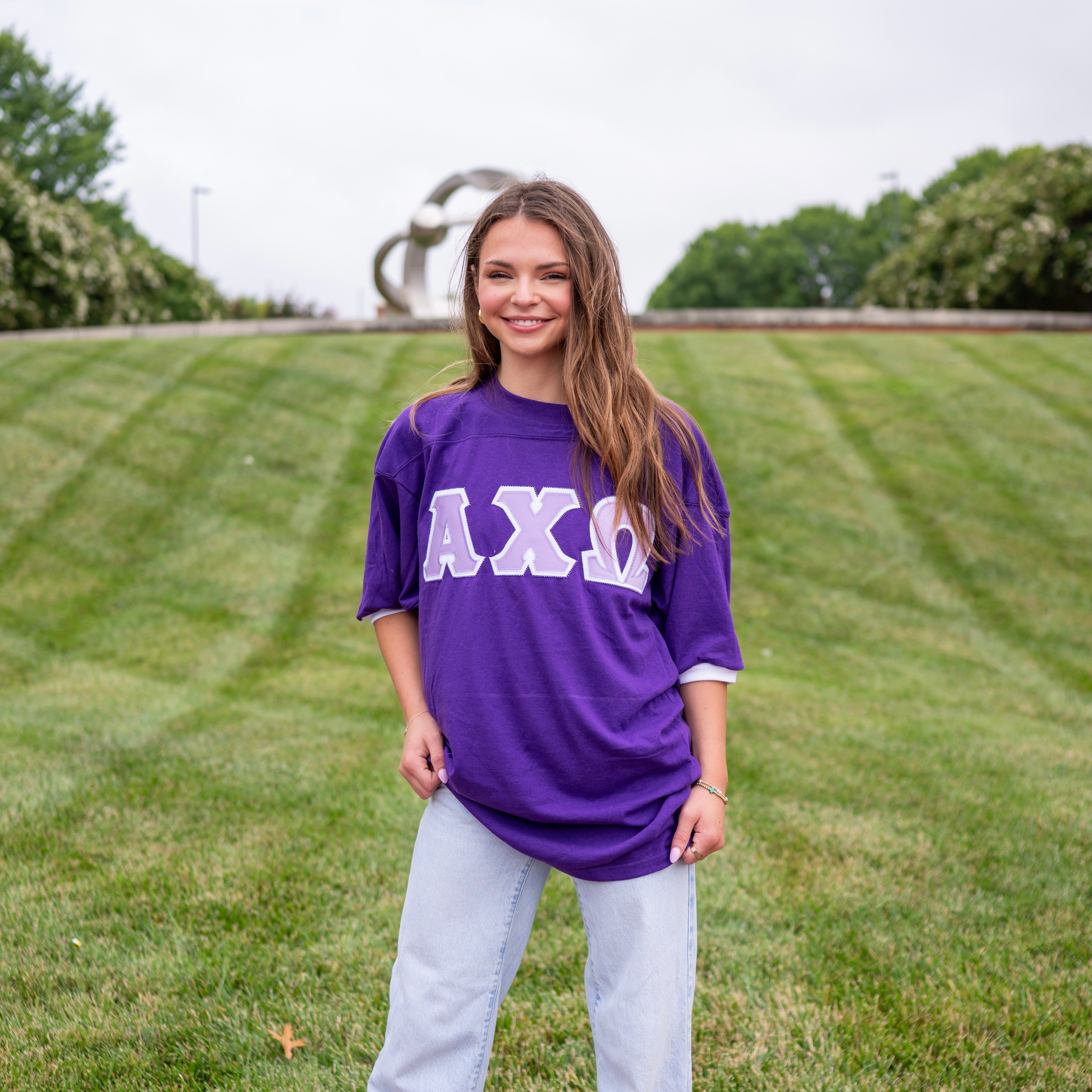 Basic Greek Letter Crew Neck Jersey - Alpha Chi Omega