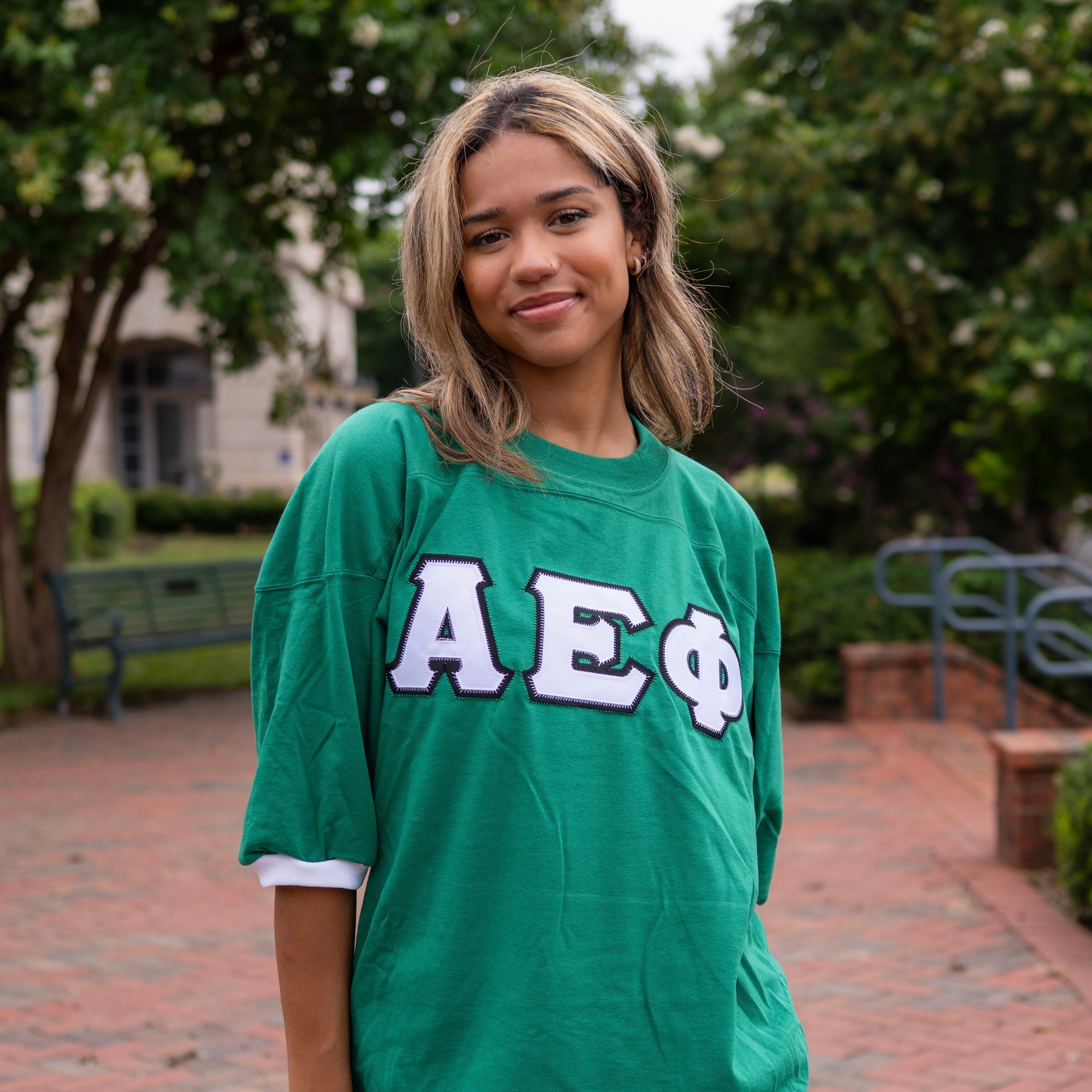 Basic Greek Letter Crew Neck Jersey - Alpha Epsilon Phi
