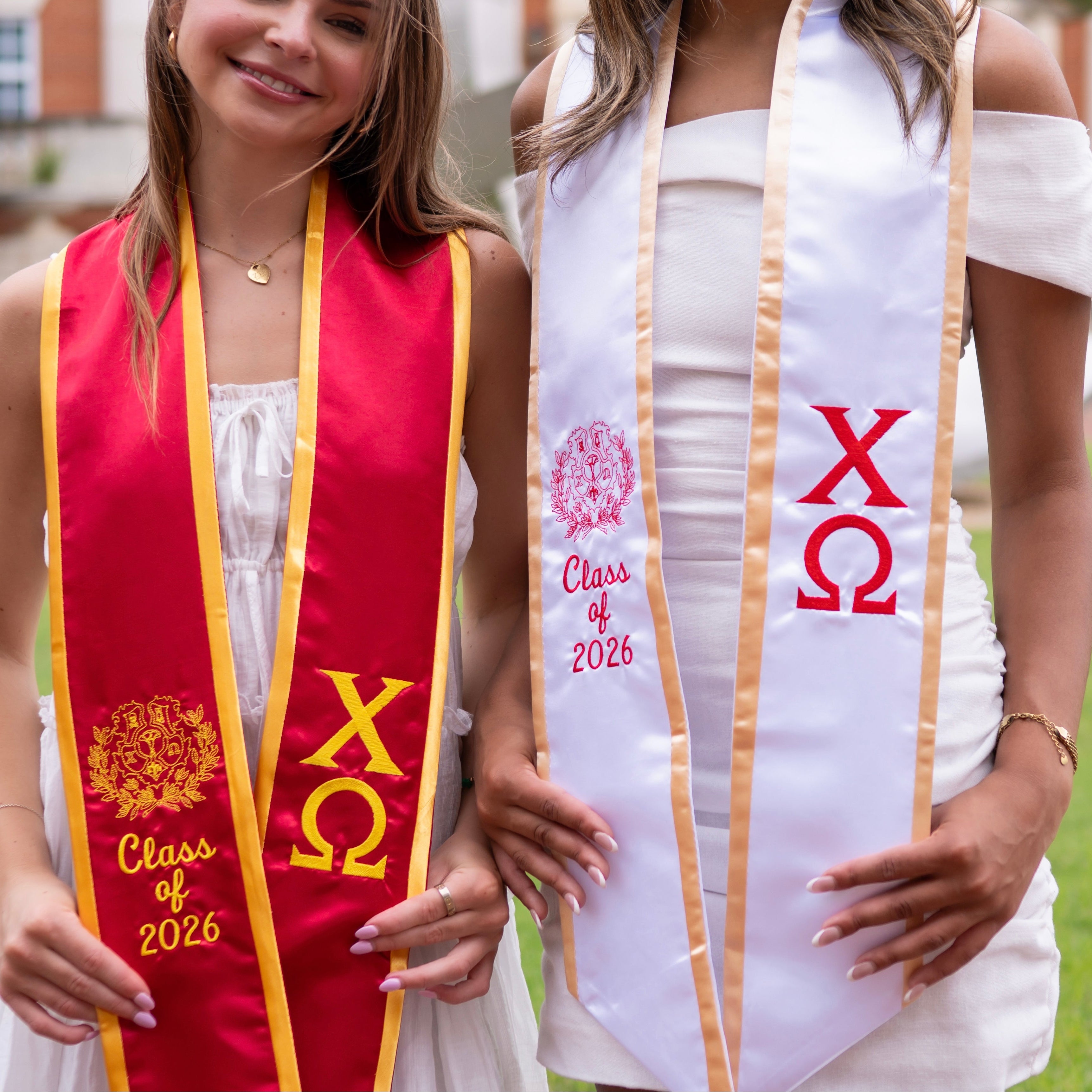 Chi Omega Minimalistic Crest Angled Sorority Graduation Stole