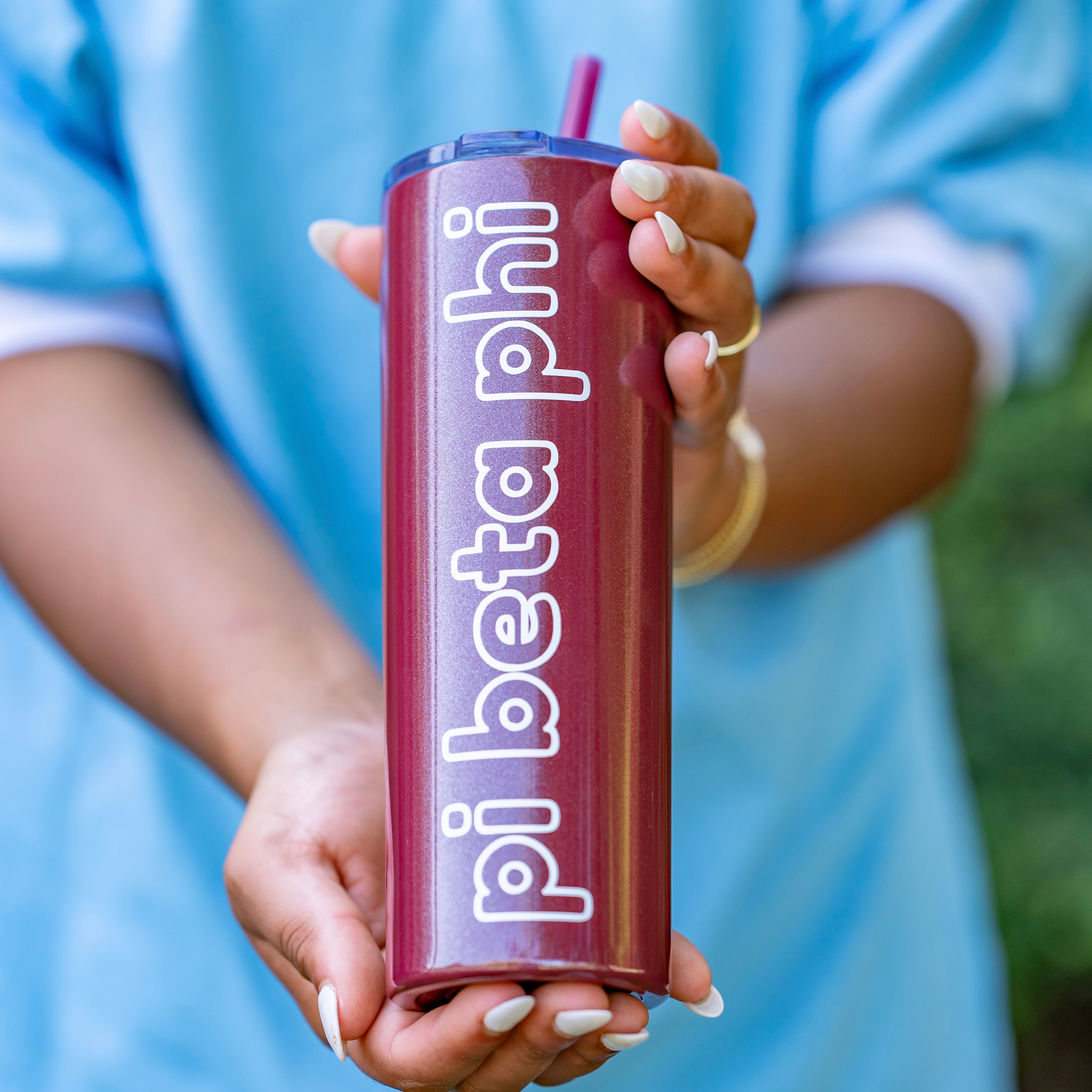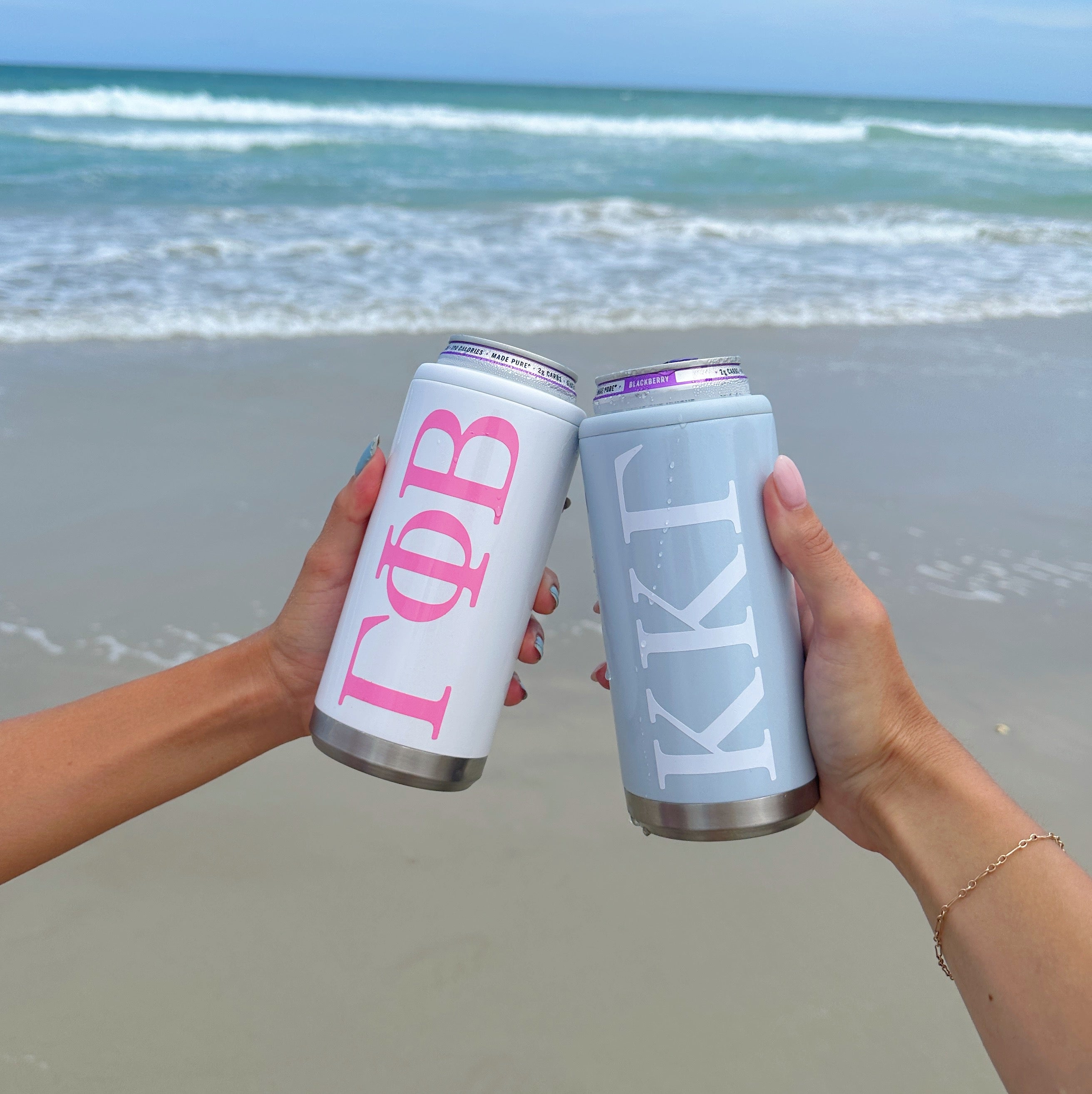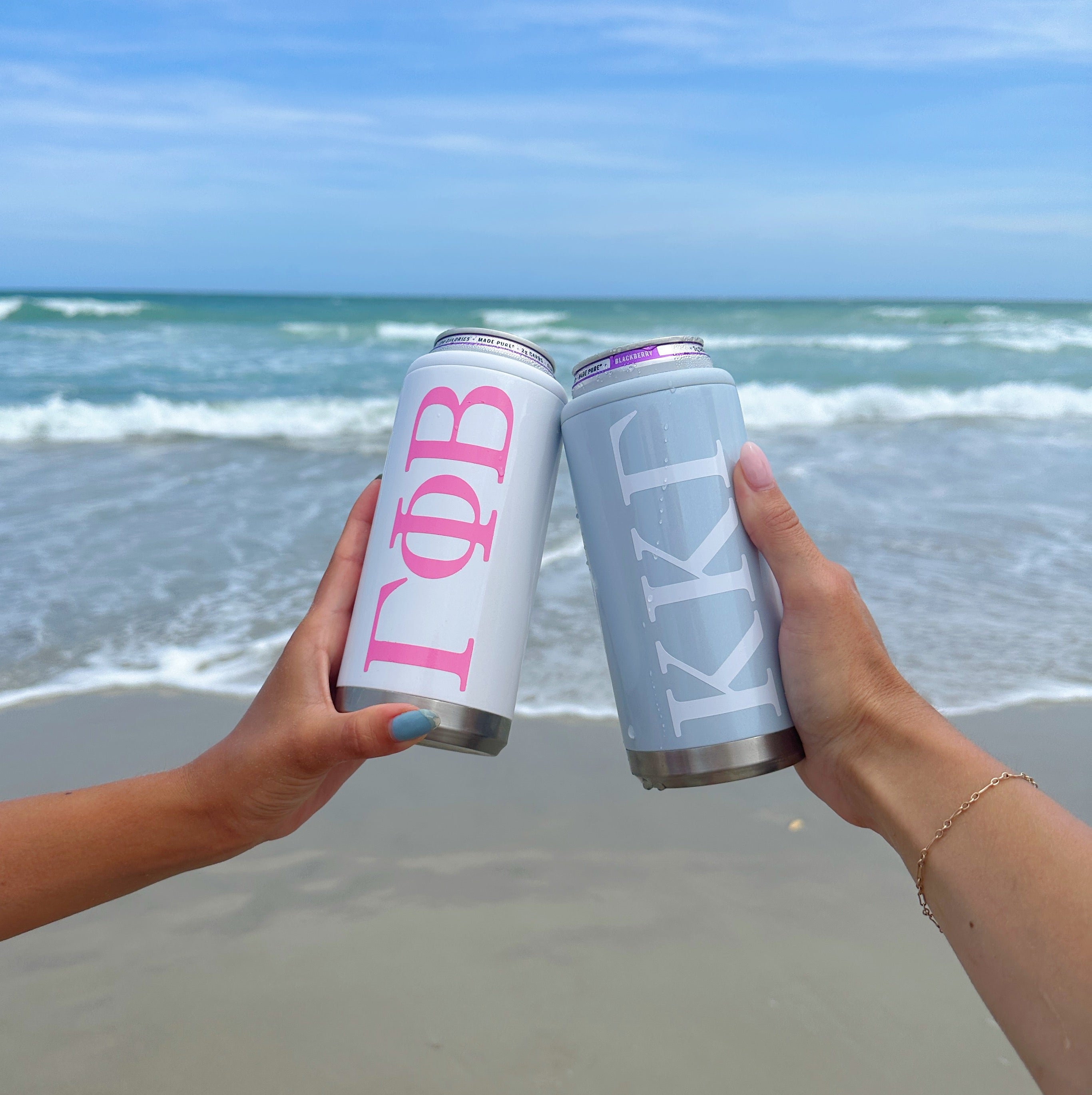 Basic Greek Letter Stainless Steel Skinny Can Cooler