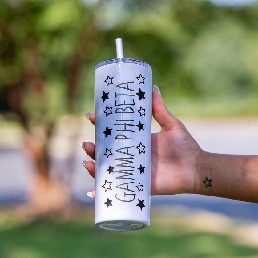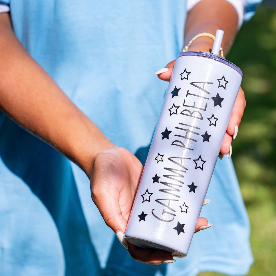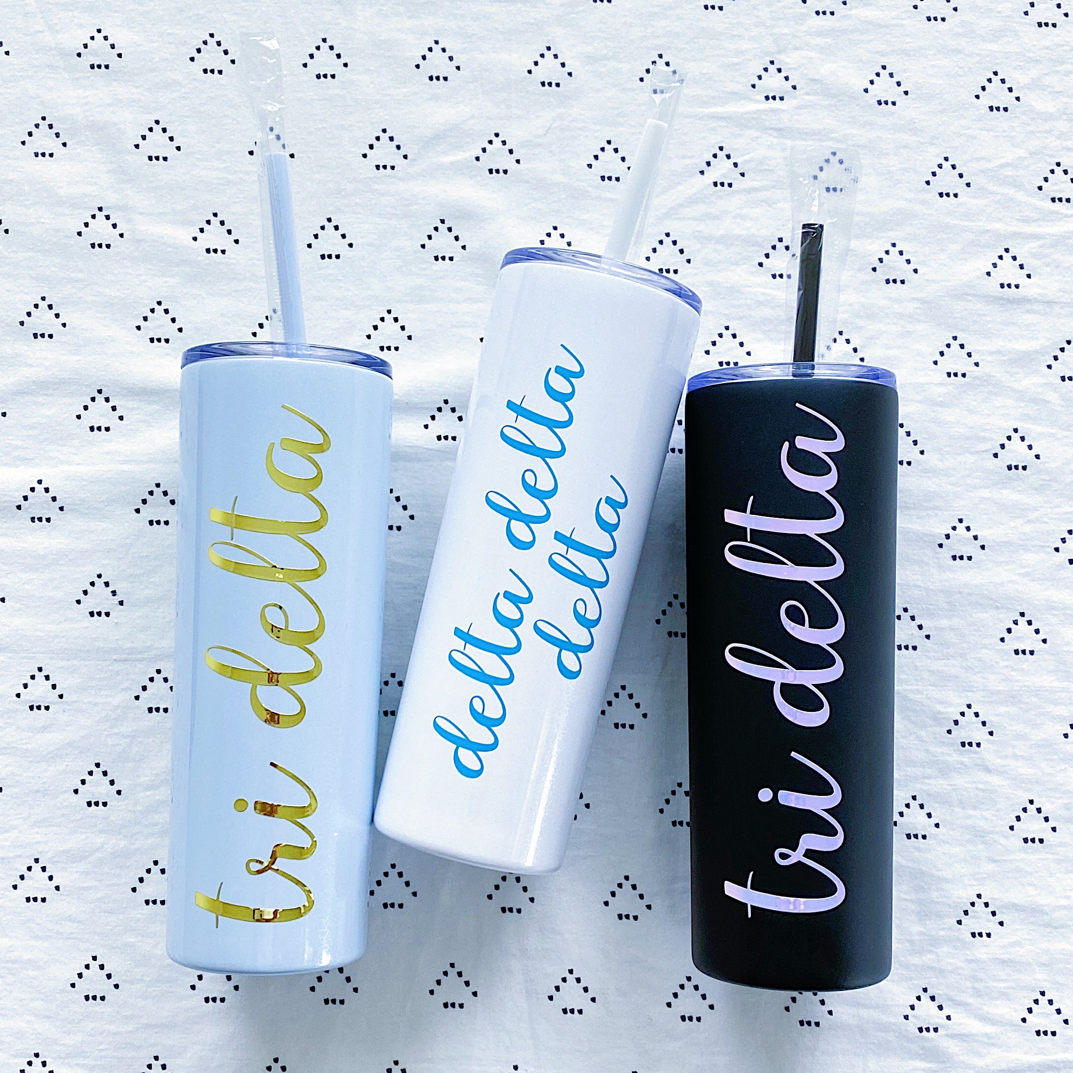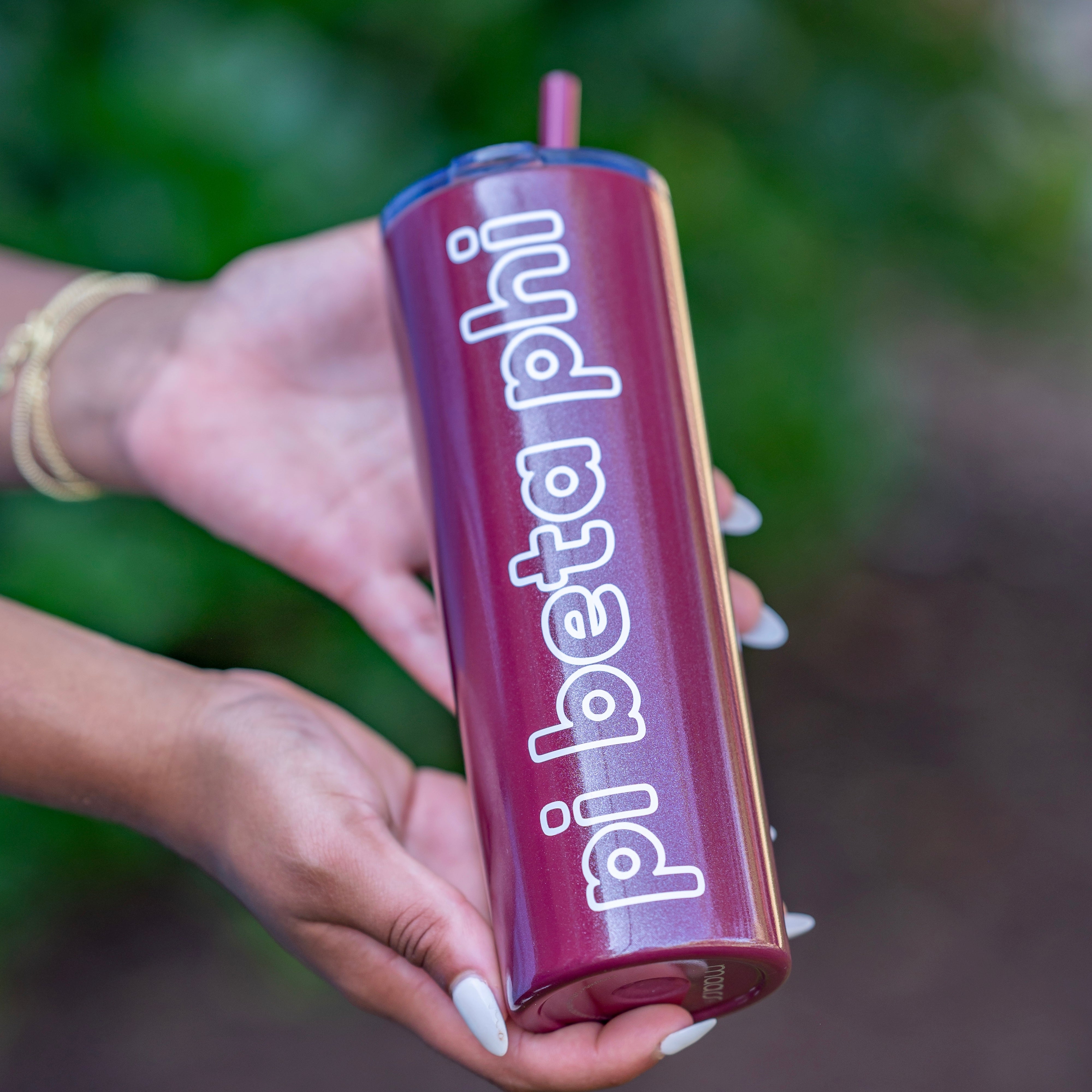 Basic Greek Letter Stainless Steel Skinny Can Cooler
