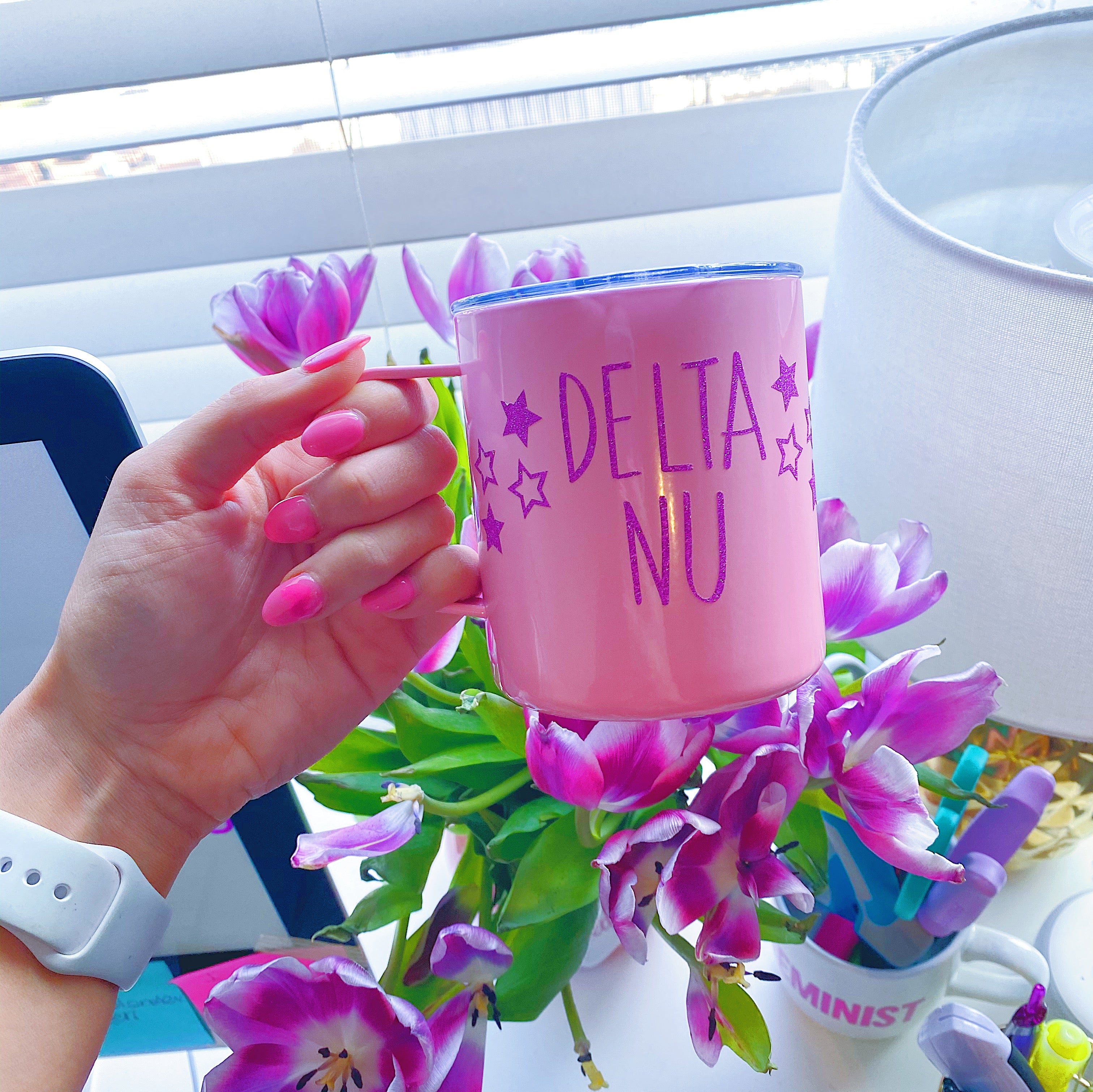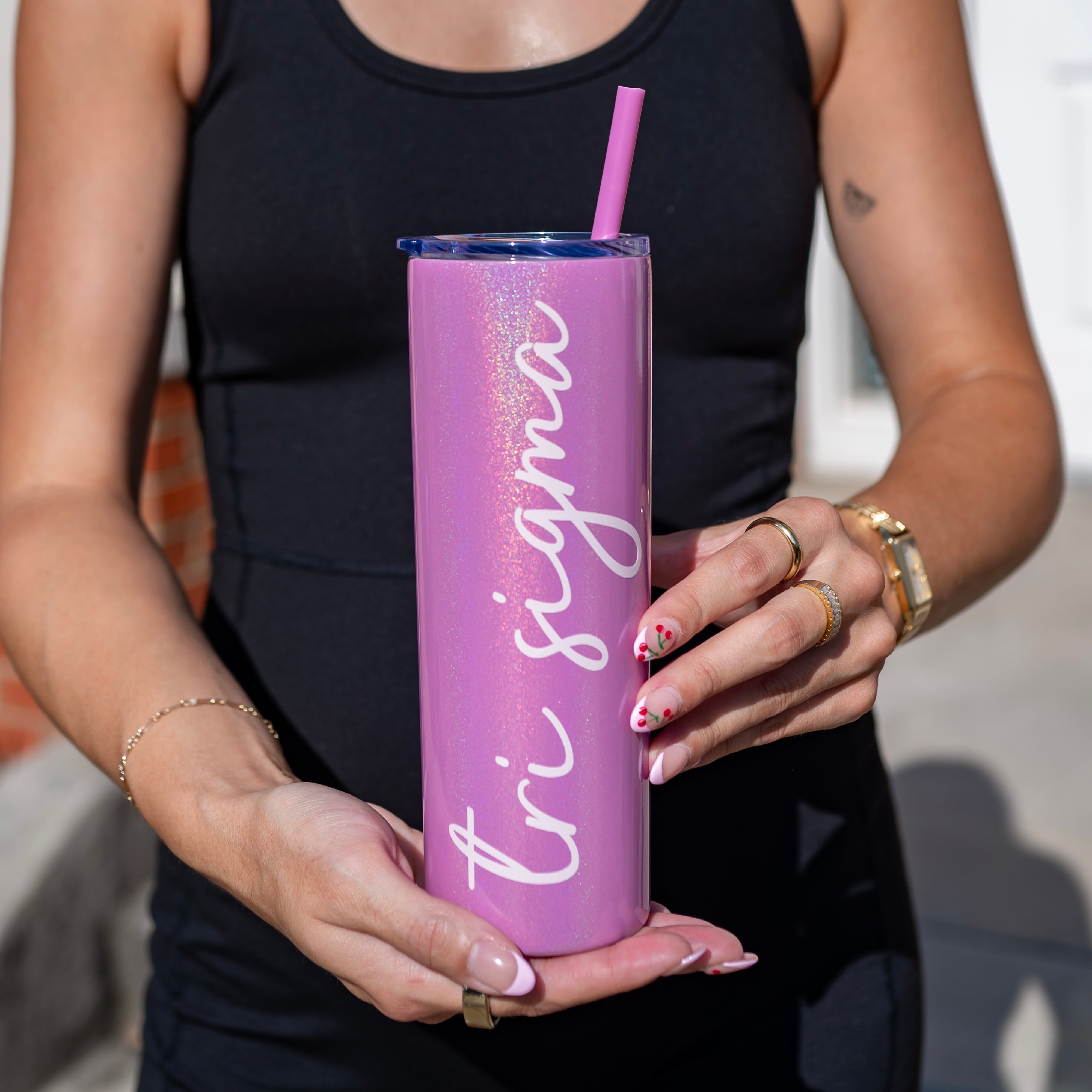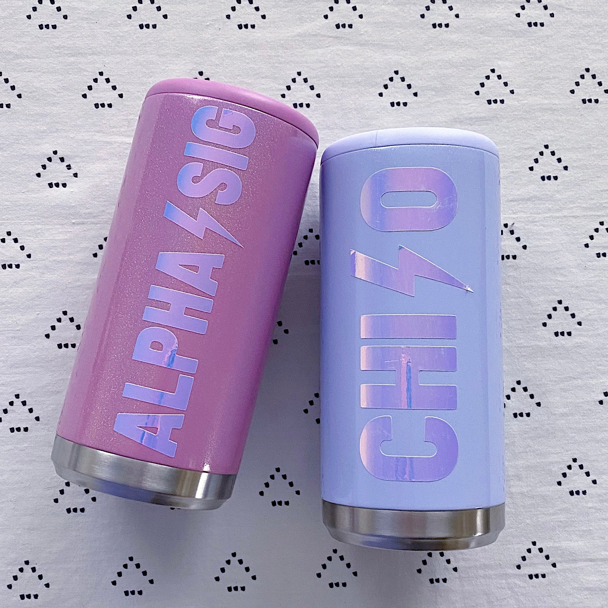 Sorority Nickname w/ Lightning Bolt Stainless Steel Skinny Can Cooler
