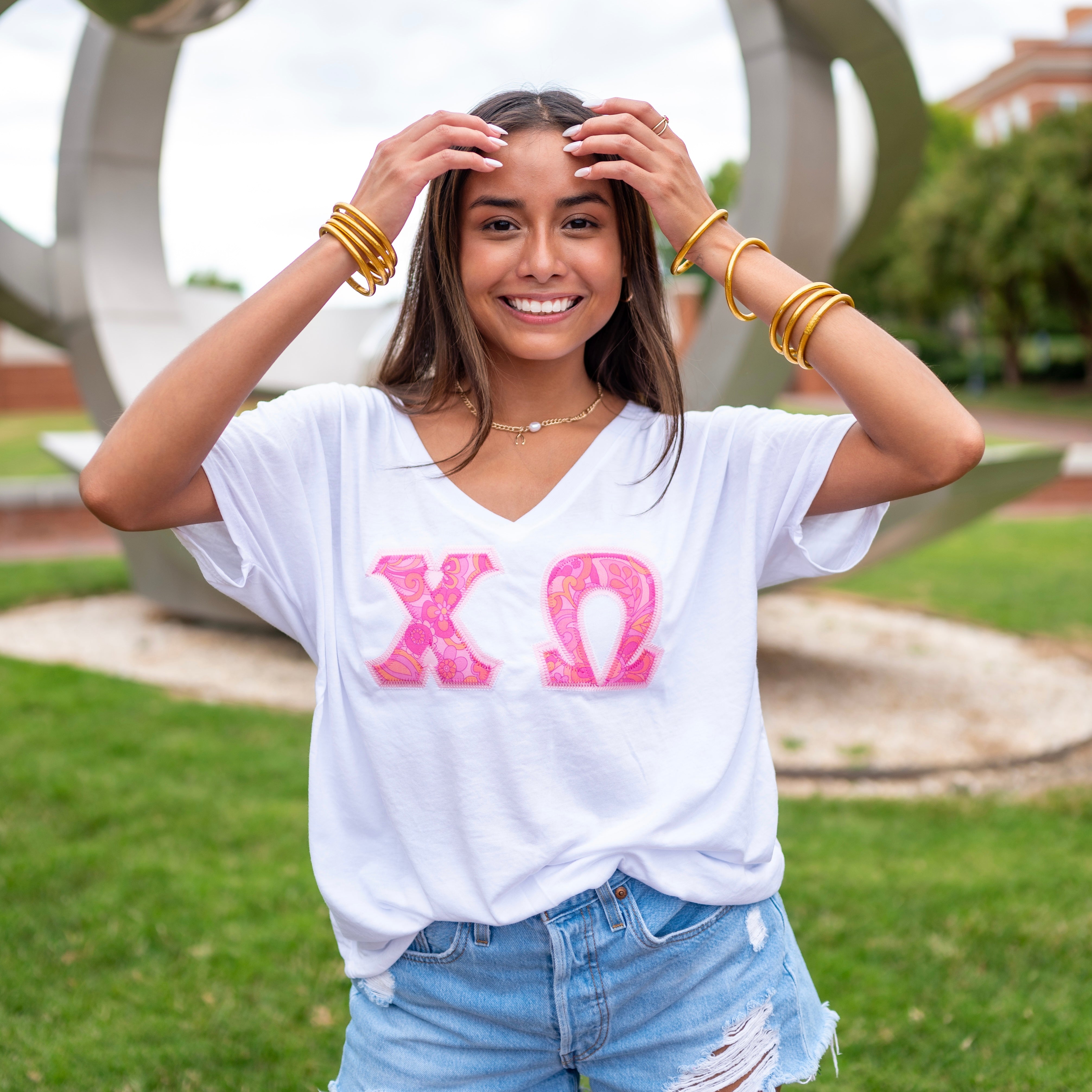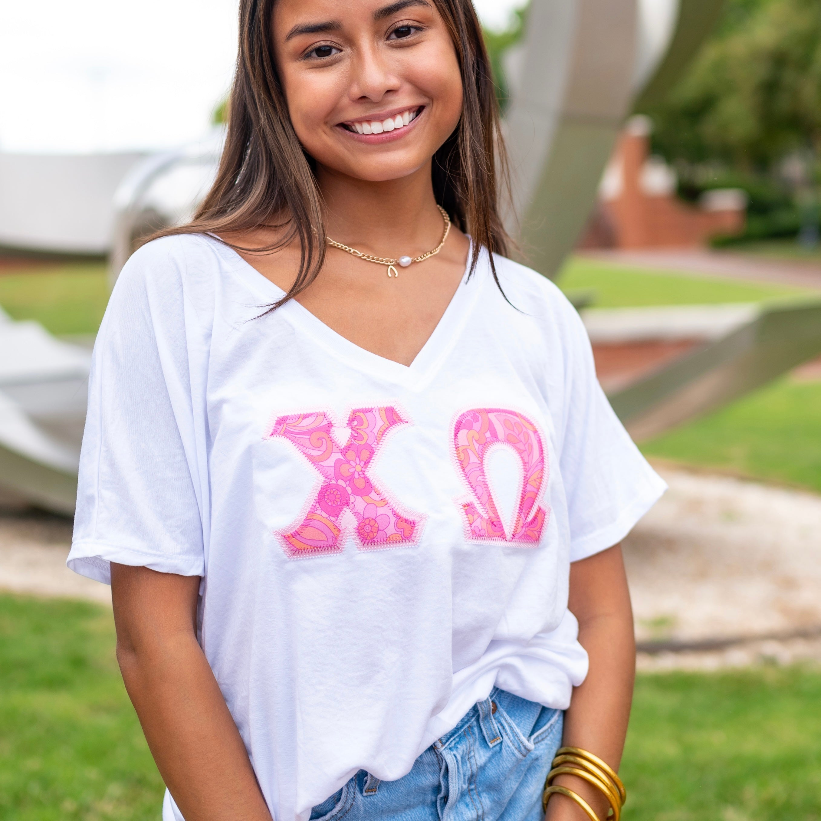 Custom Stitched Chi Omega Sorority Bella Canvas Greek Letter Shirt