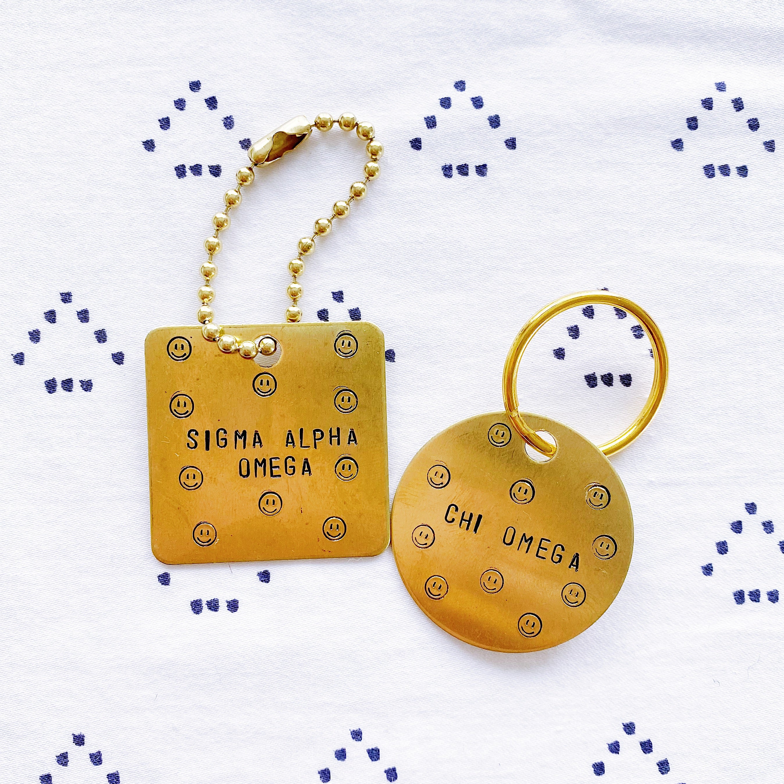 Sorority w/ Smiley Faces Hand-Stamped Keychain