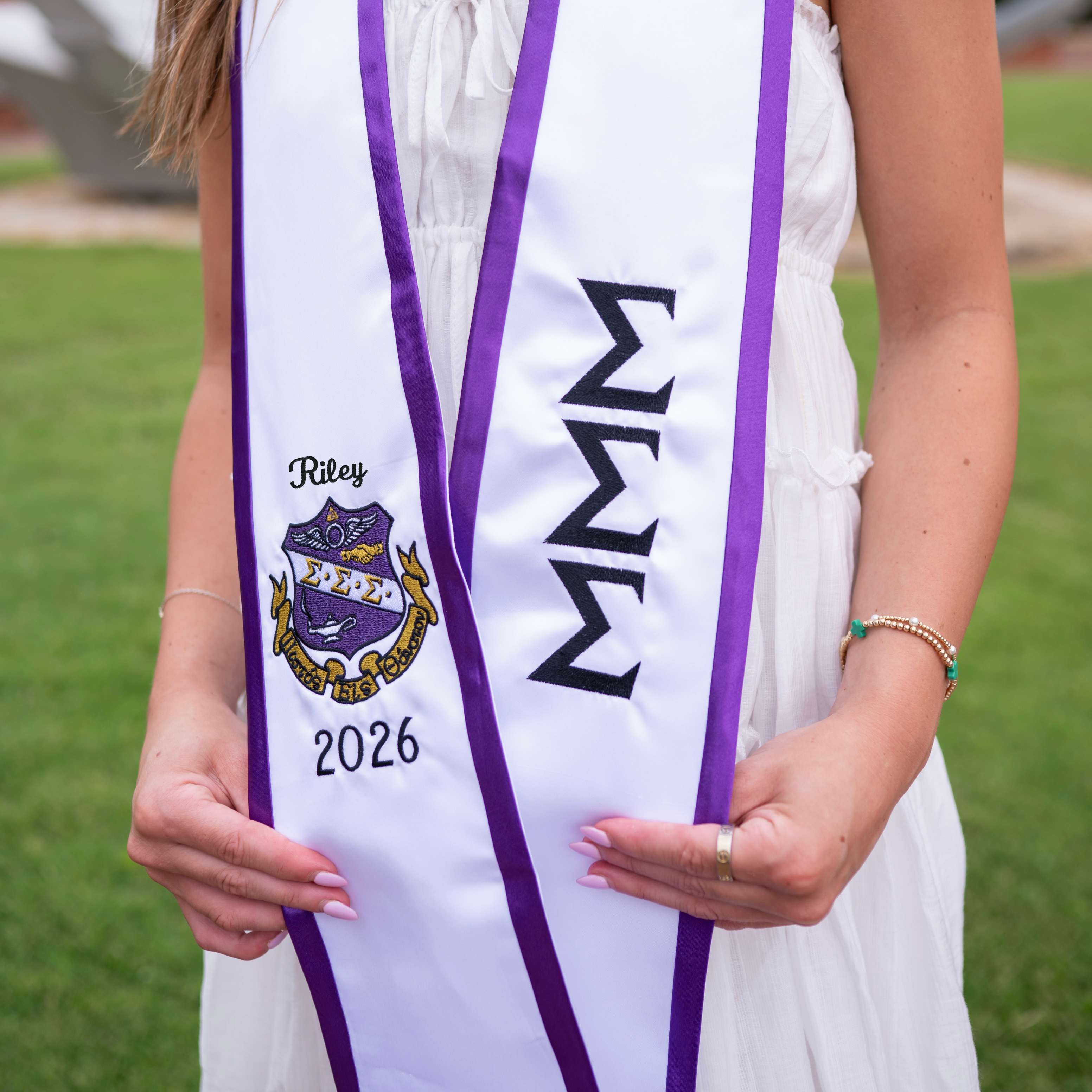 Sigma Sigma Sigma Personalized Crest Pointed Sorority Graduation Stole