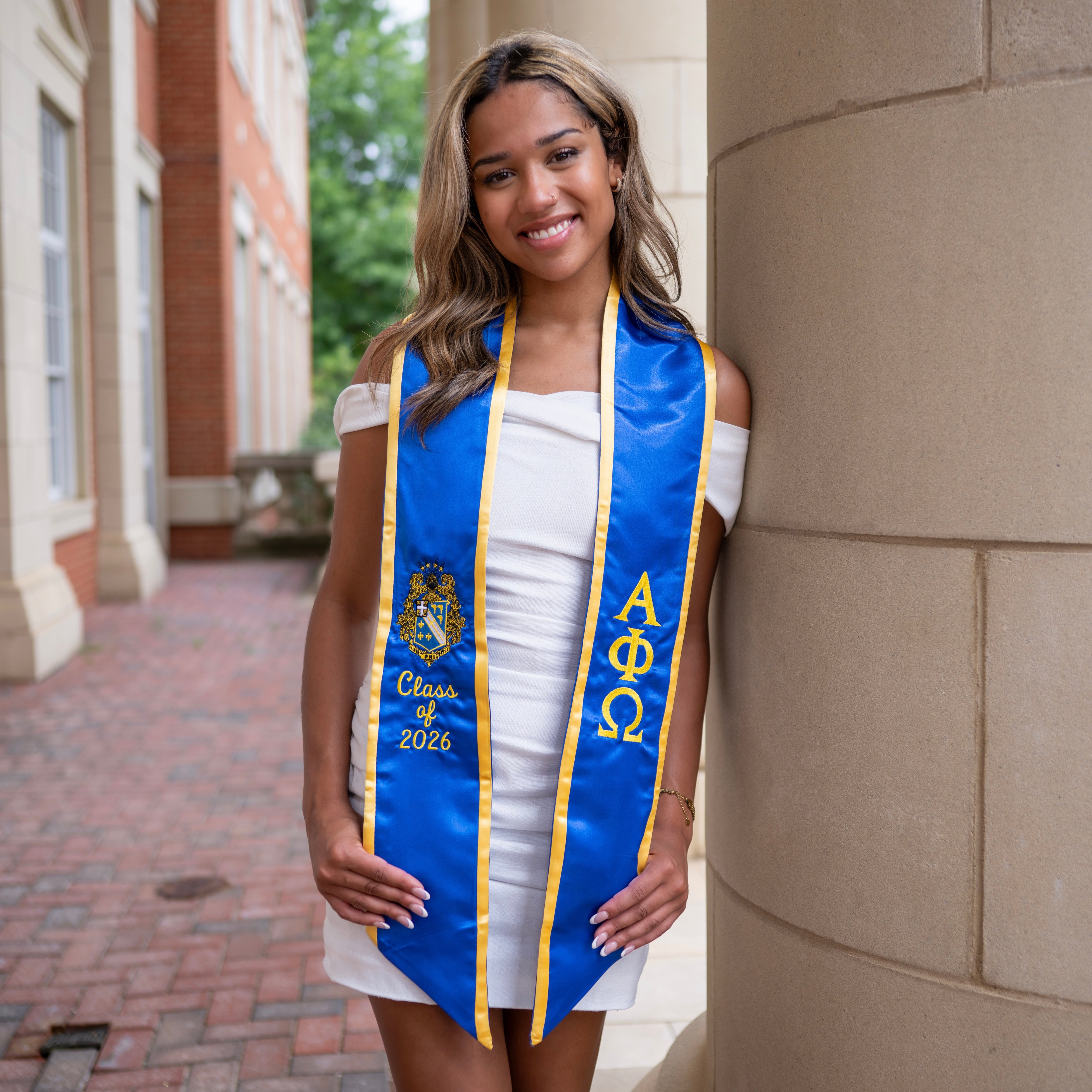 Alpha Phi Omega Crest Angled Sorority Graduation Stole