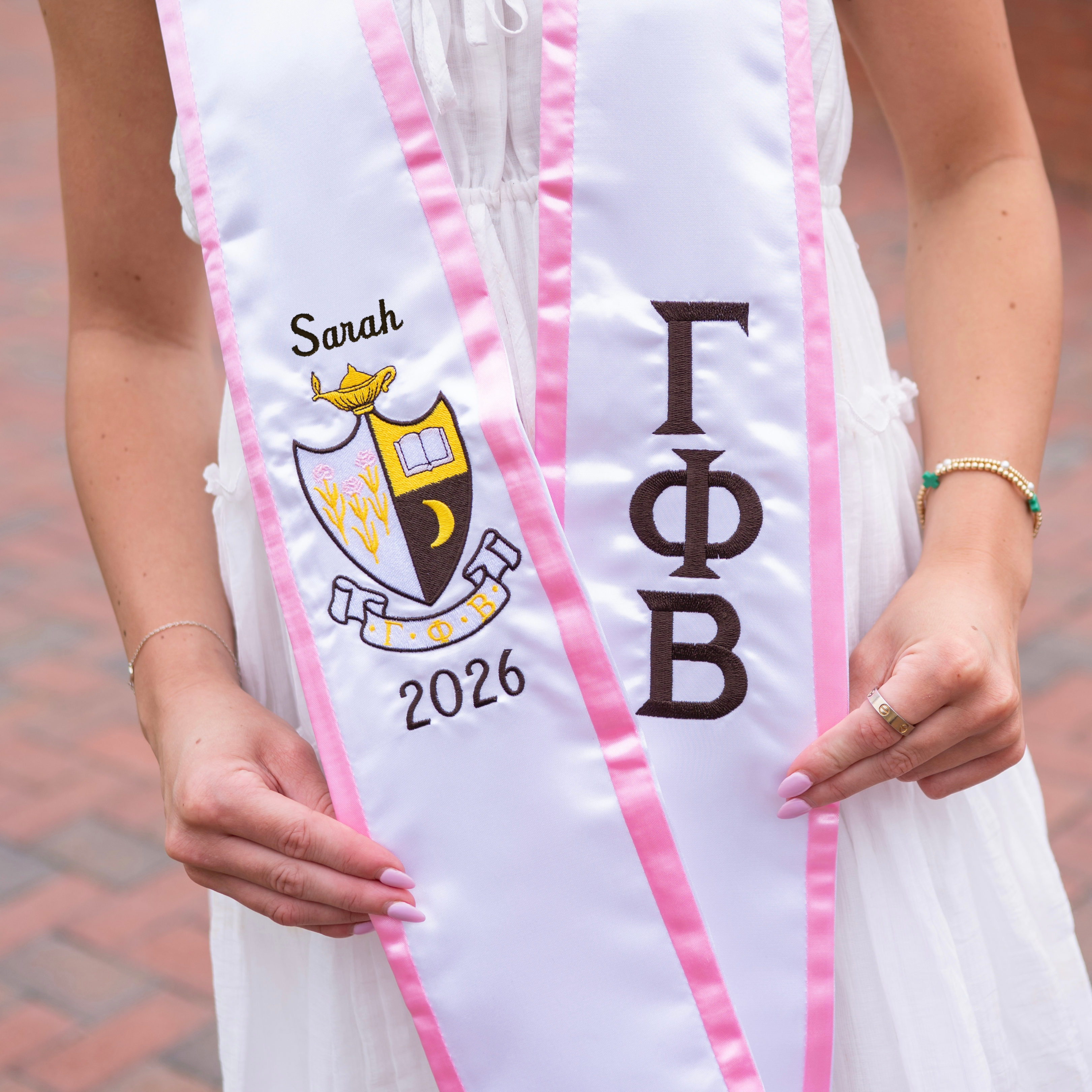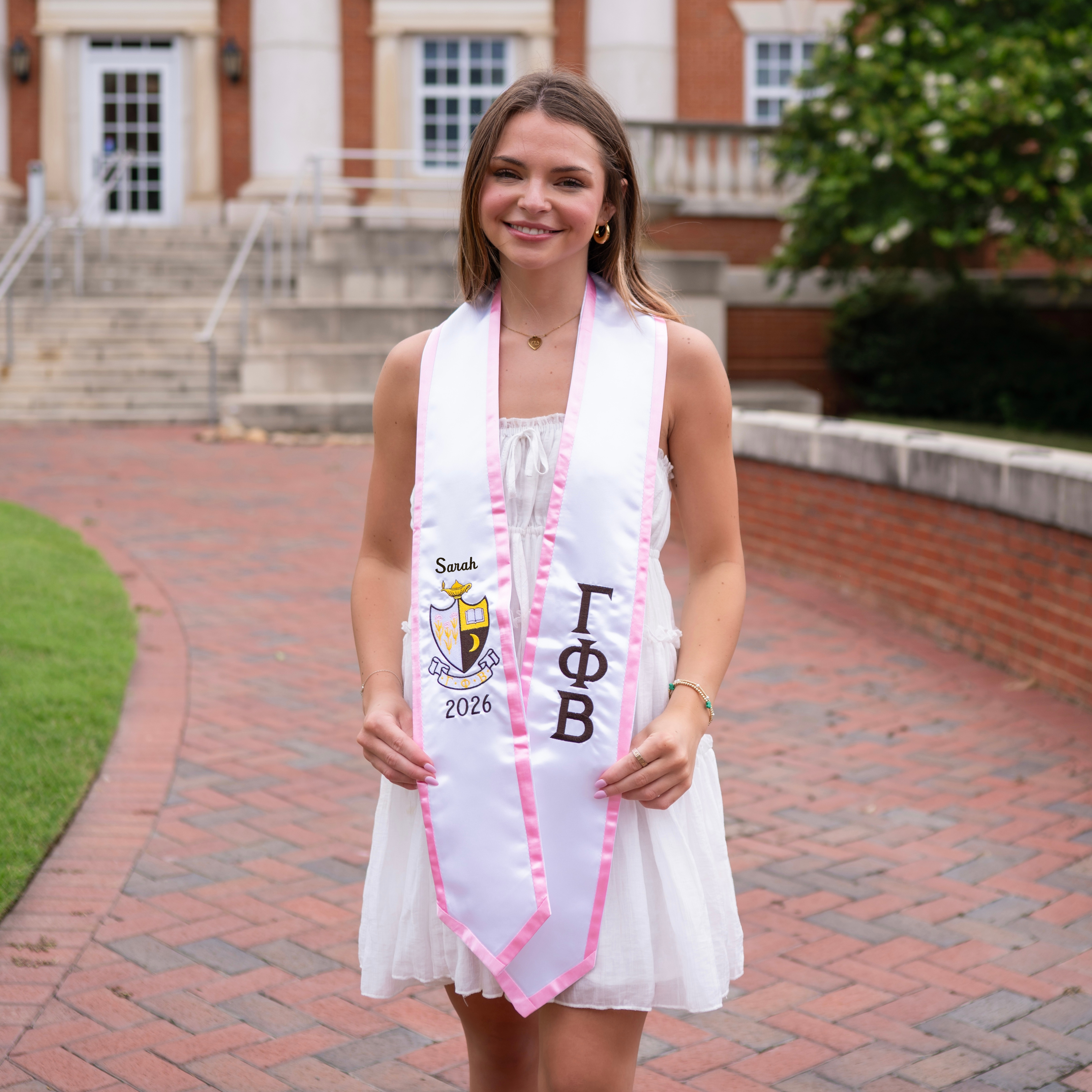 Gamma Phi Beta Personalized Crest Pointed Sorority Graduation Stole