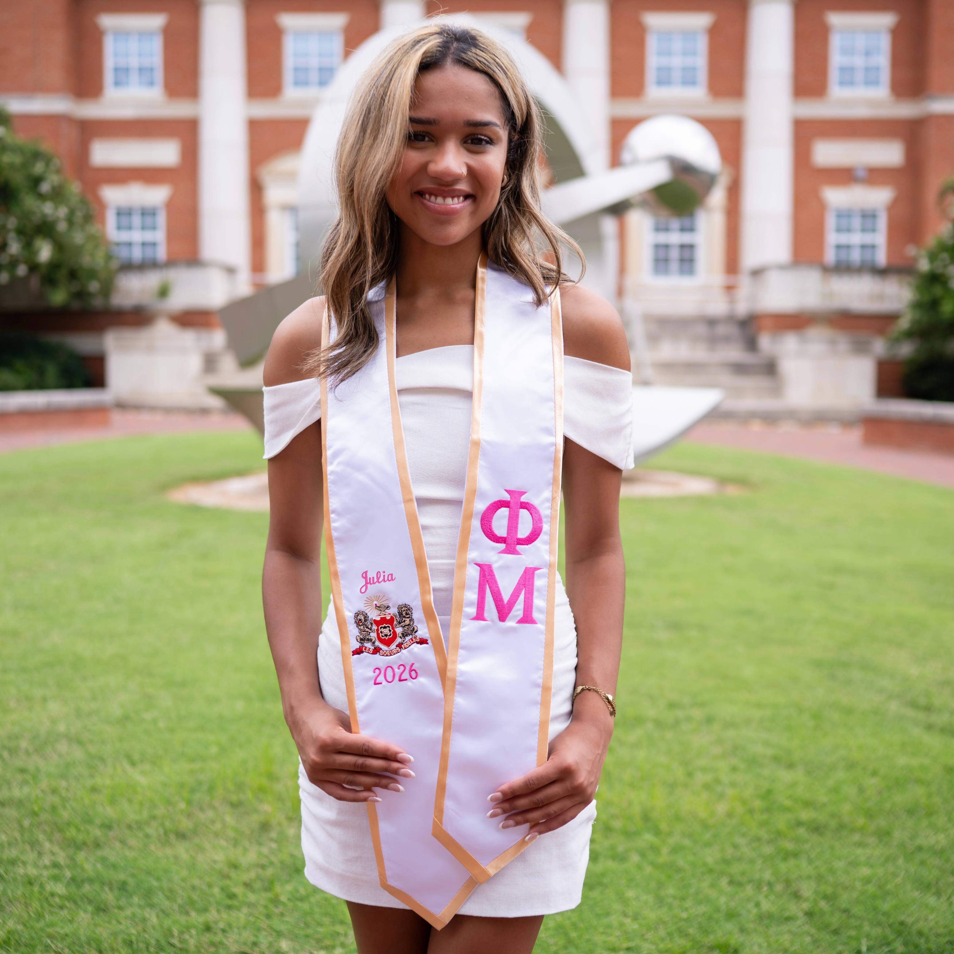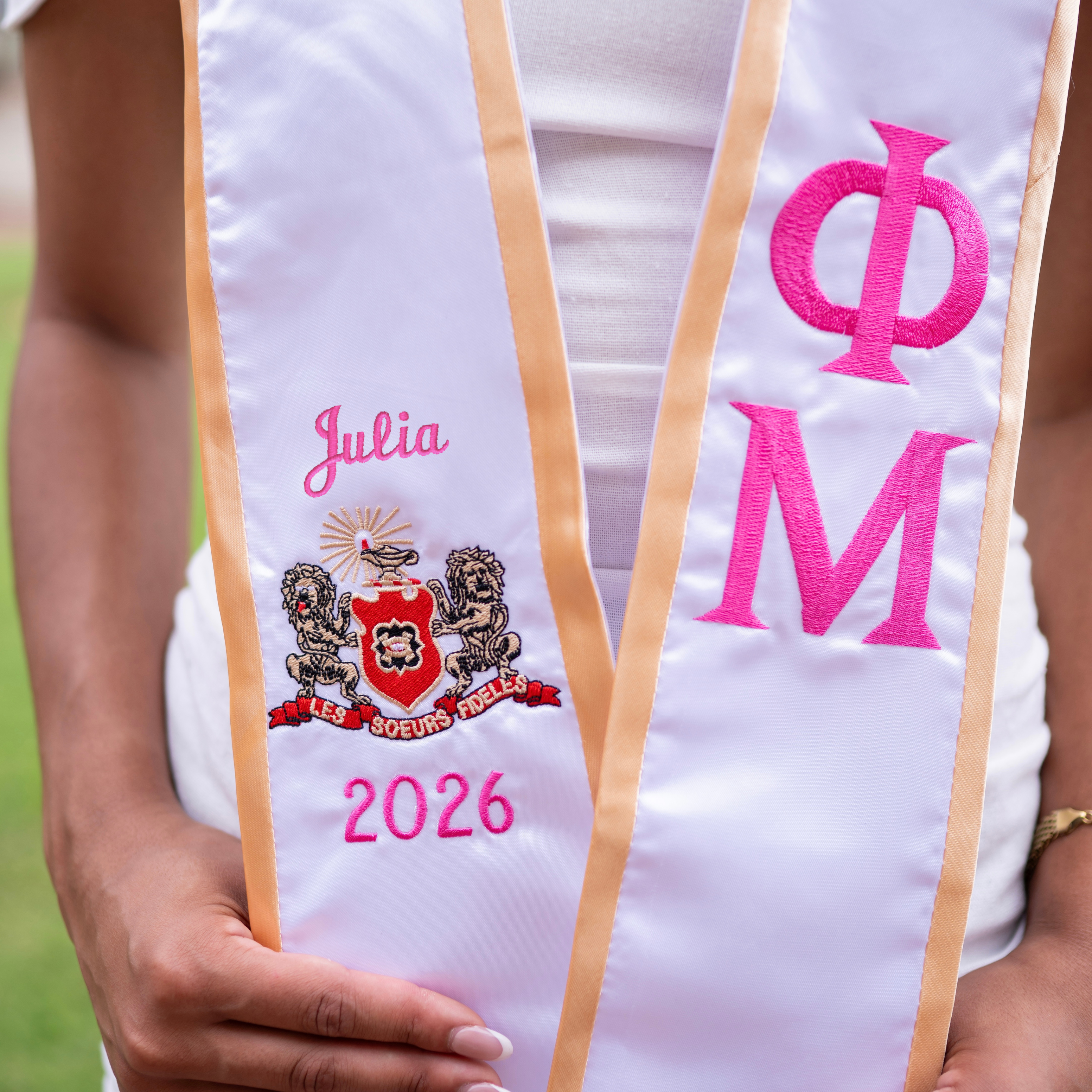 Phi Mu Personalized Crest Pointed Sorority Graduation Stole