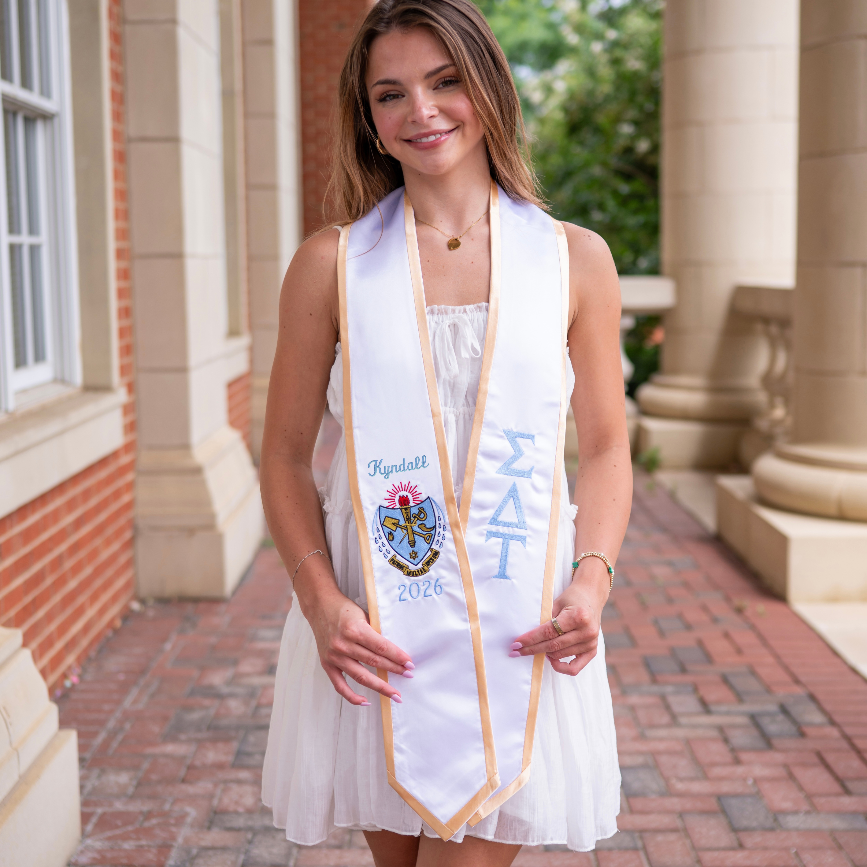 Sigma Delta Tau Personalized Crest Pointed Sorority Graduation Stole