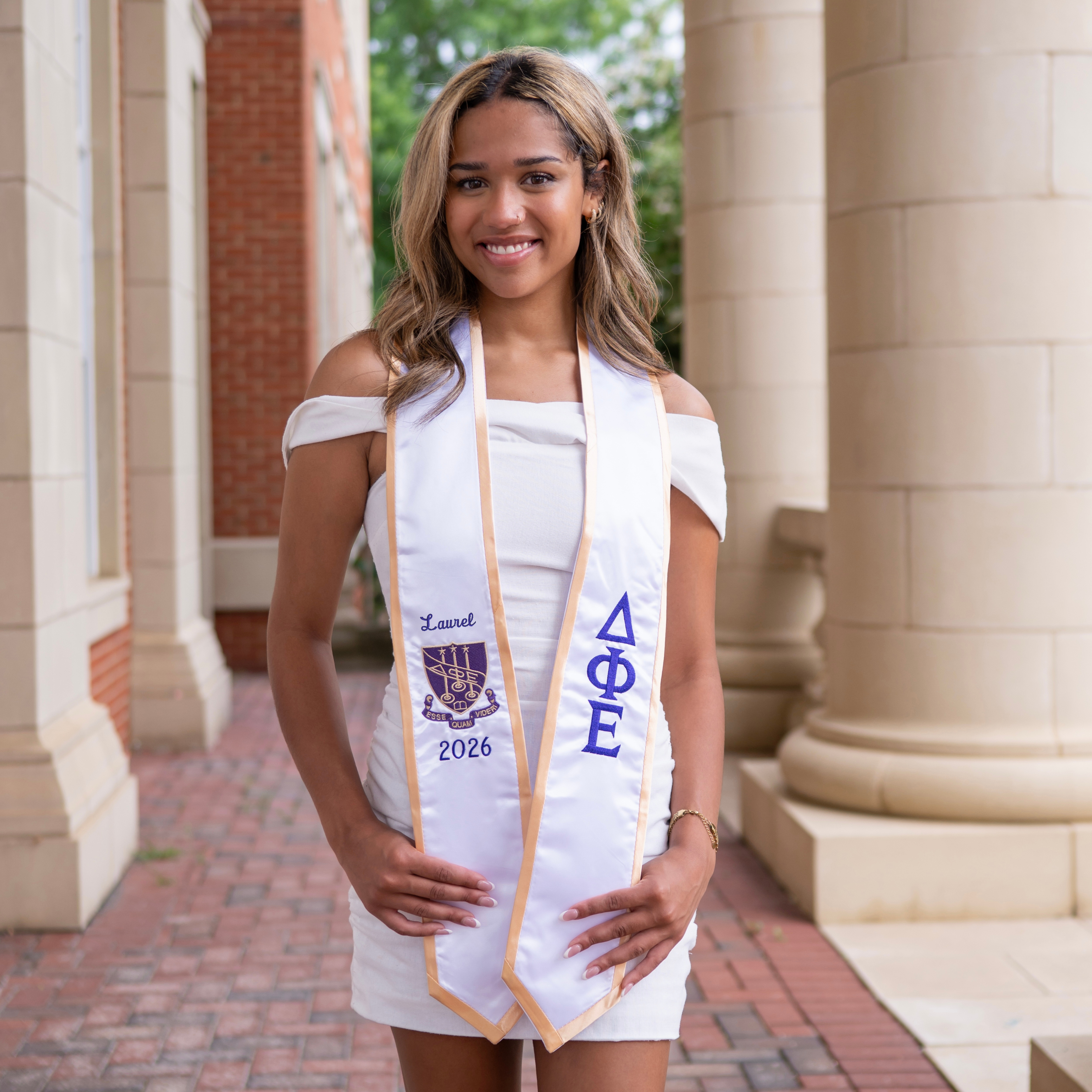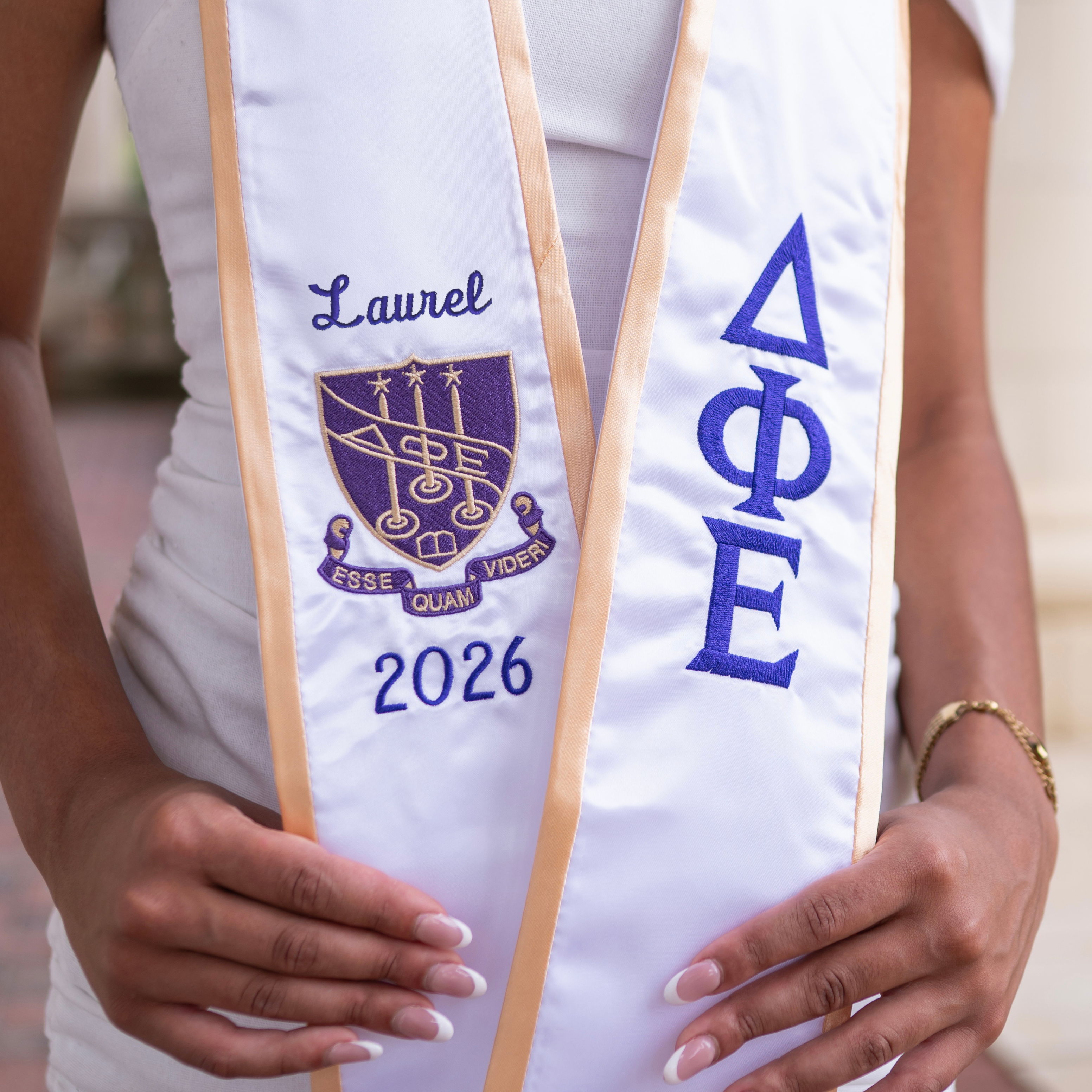 Delta Phi Epsilon Personalized Crest Pointed Sorority Graduation Stole