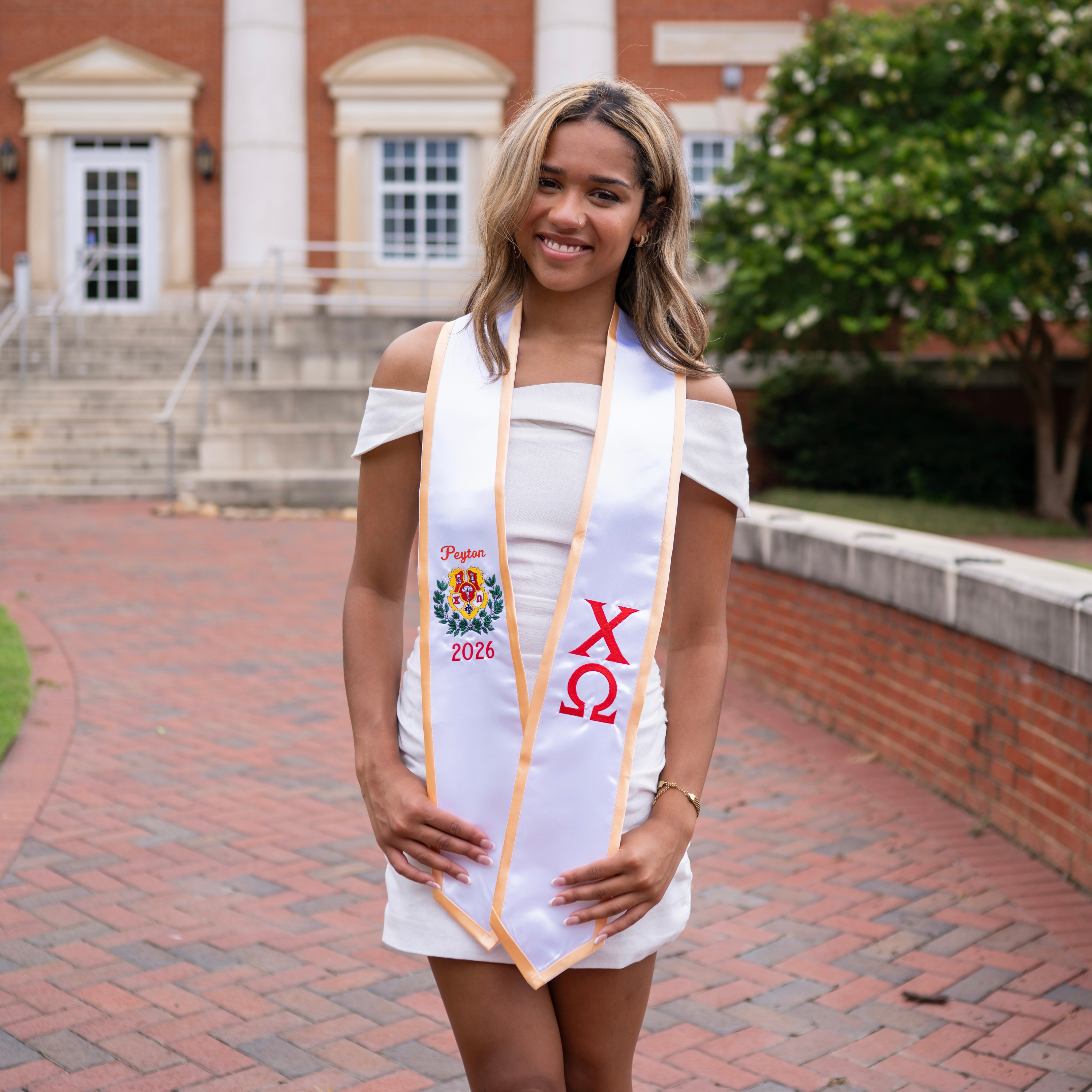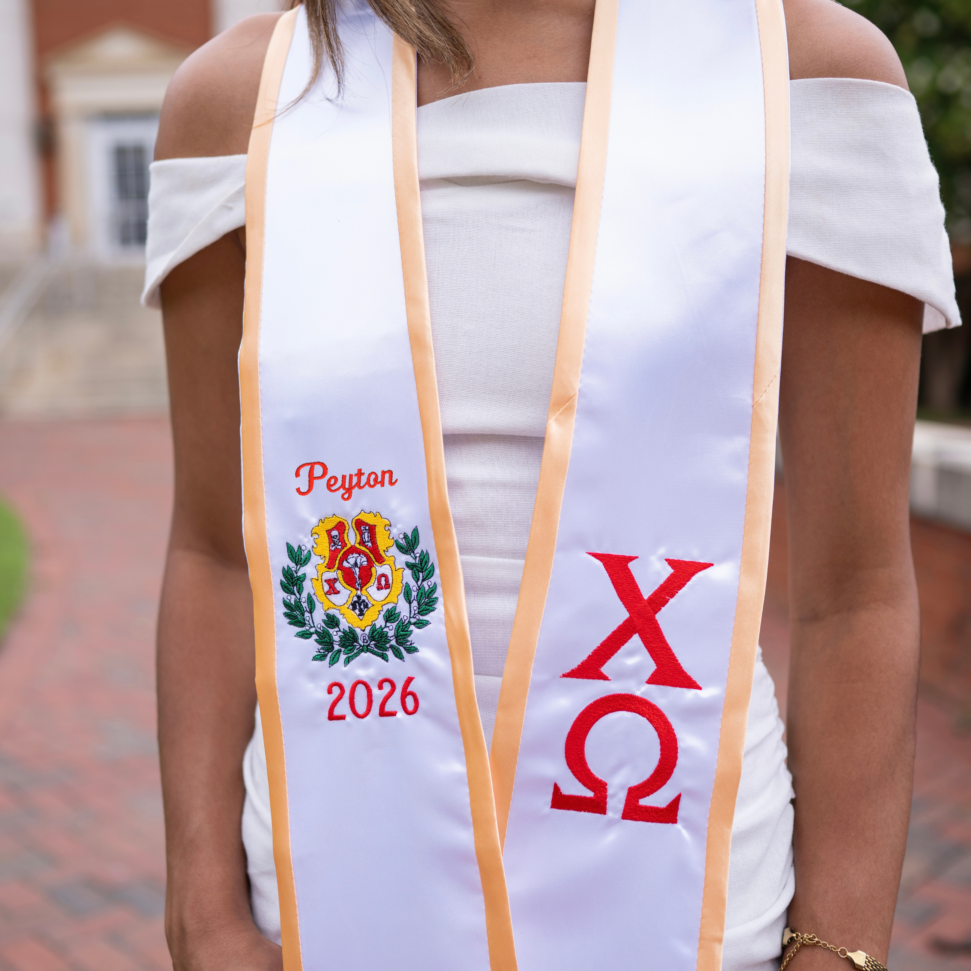 Chi Omega Personalized Crest Pointed Sorority Graduation Stole