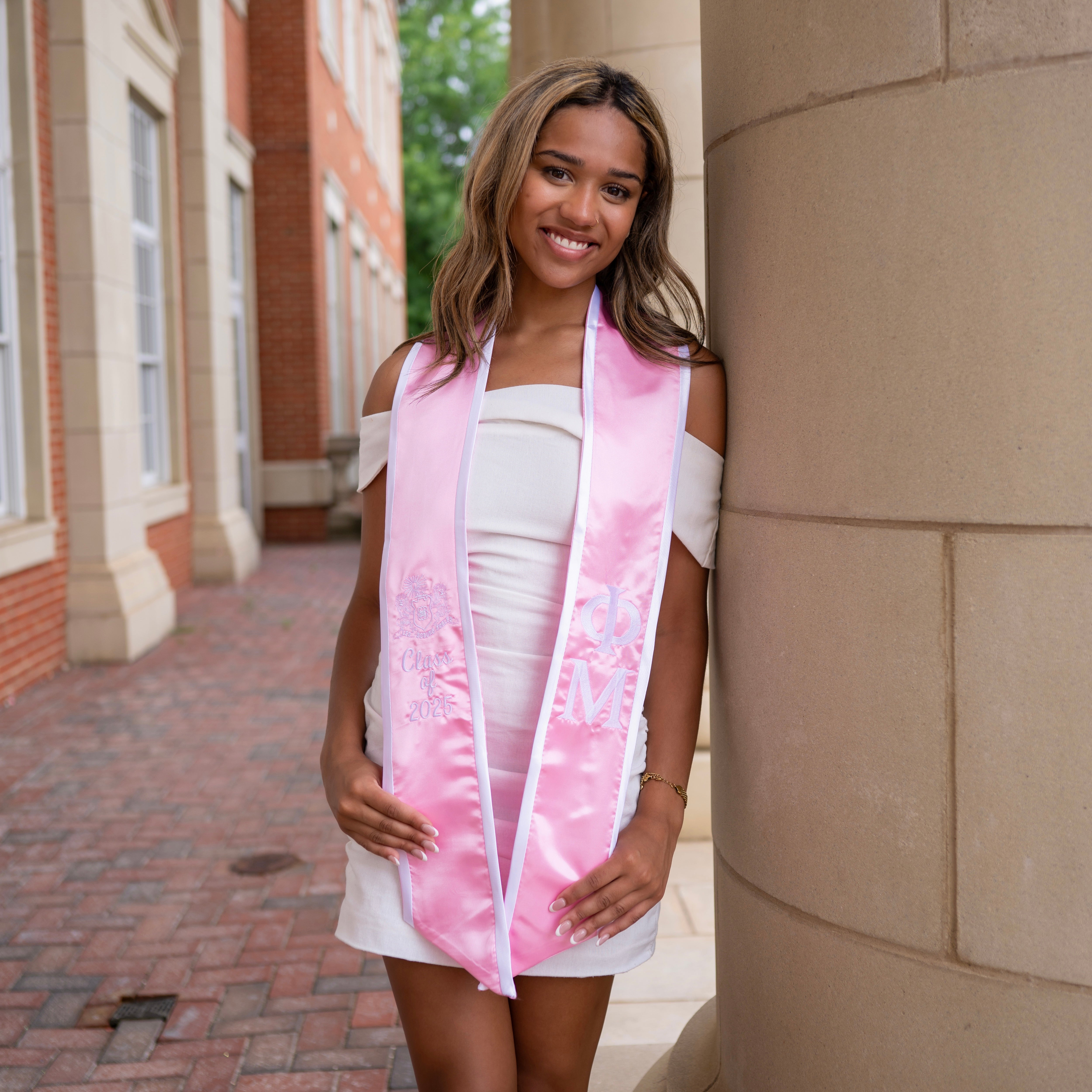 Phi Mu Minimalistic Crest Angled Sorority Graduation Stole