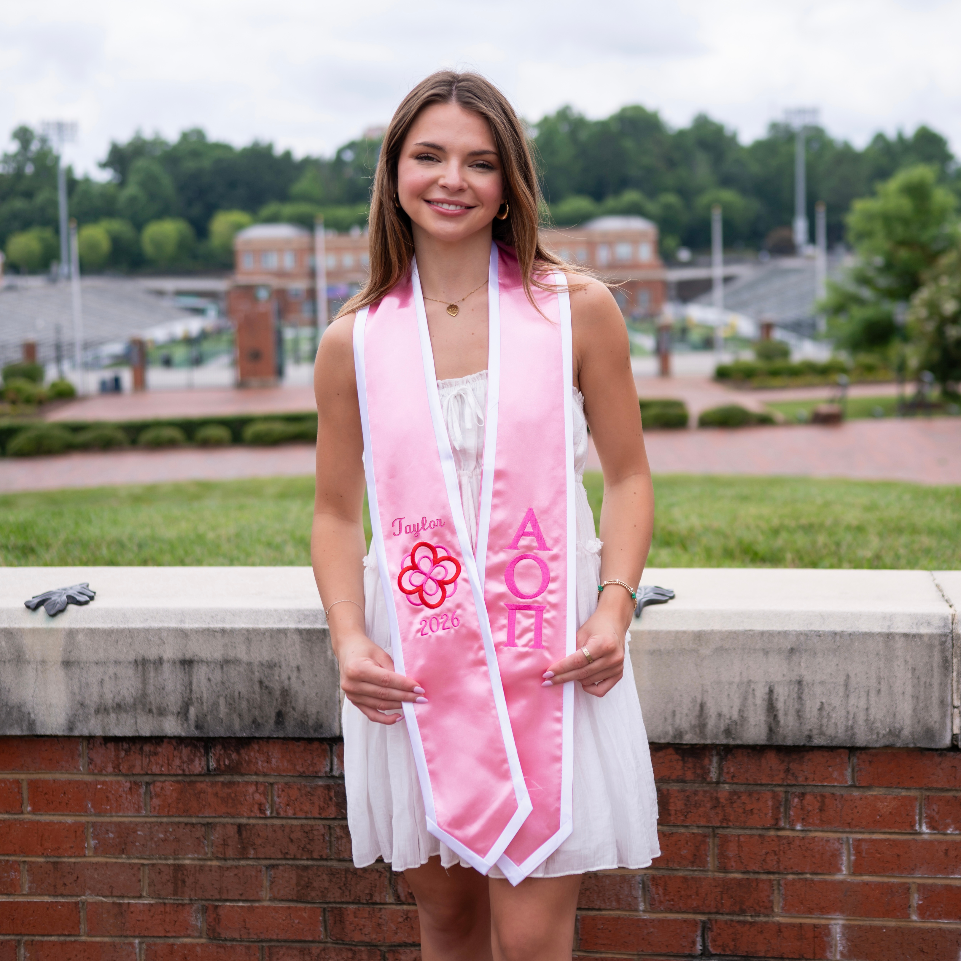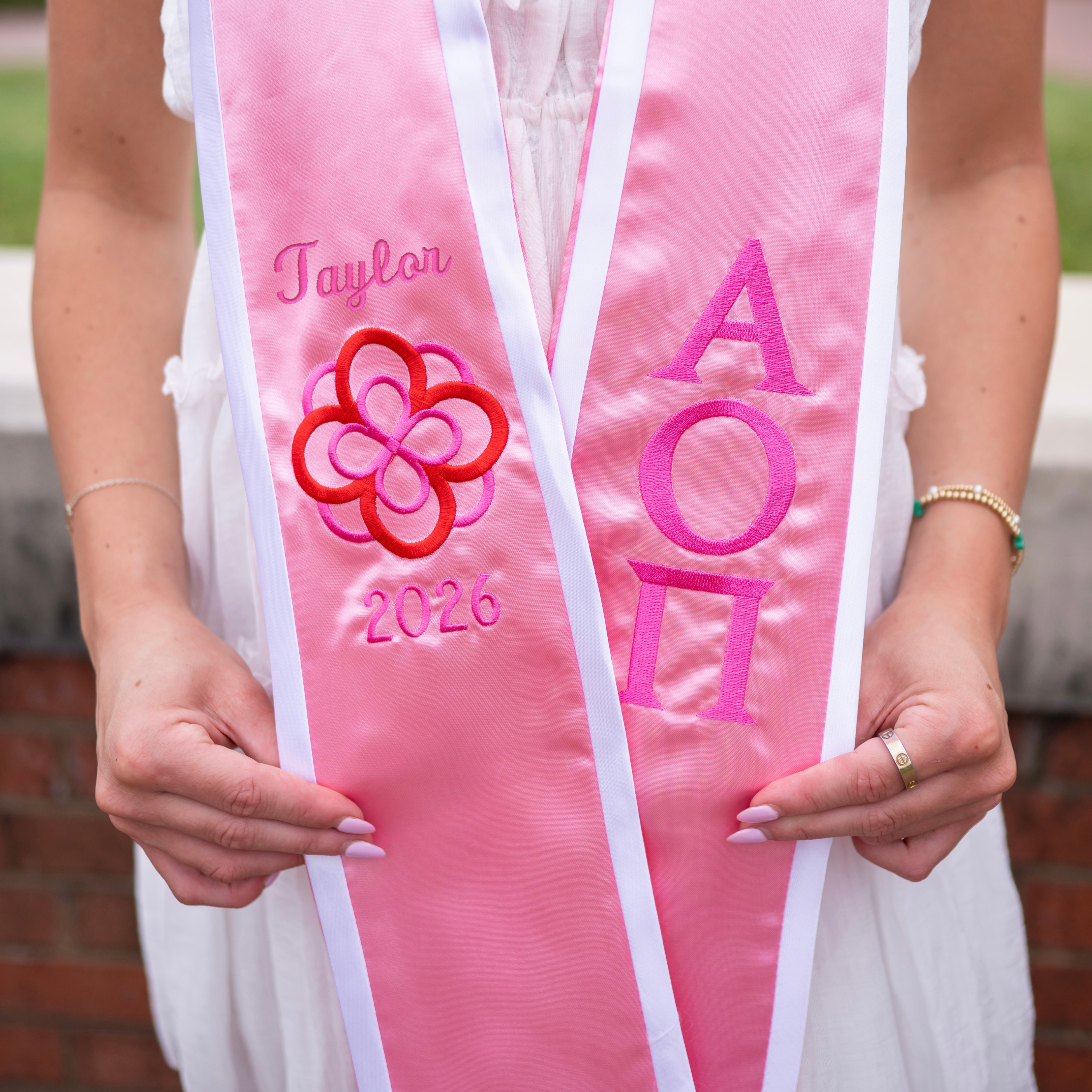Alpha Omicron Pi Personalized Crest Pointed Sorority Graduation Stole