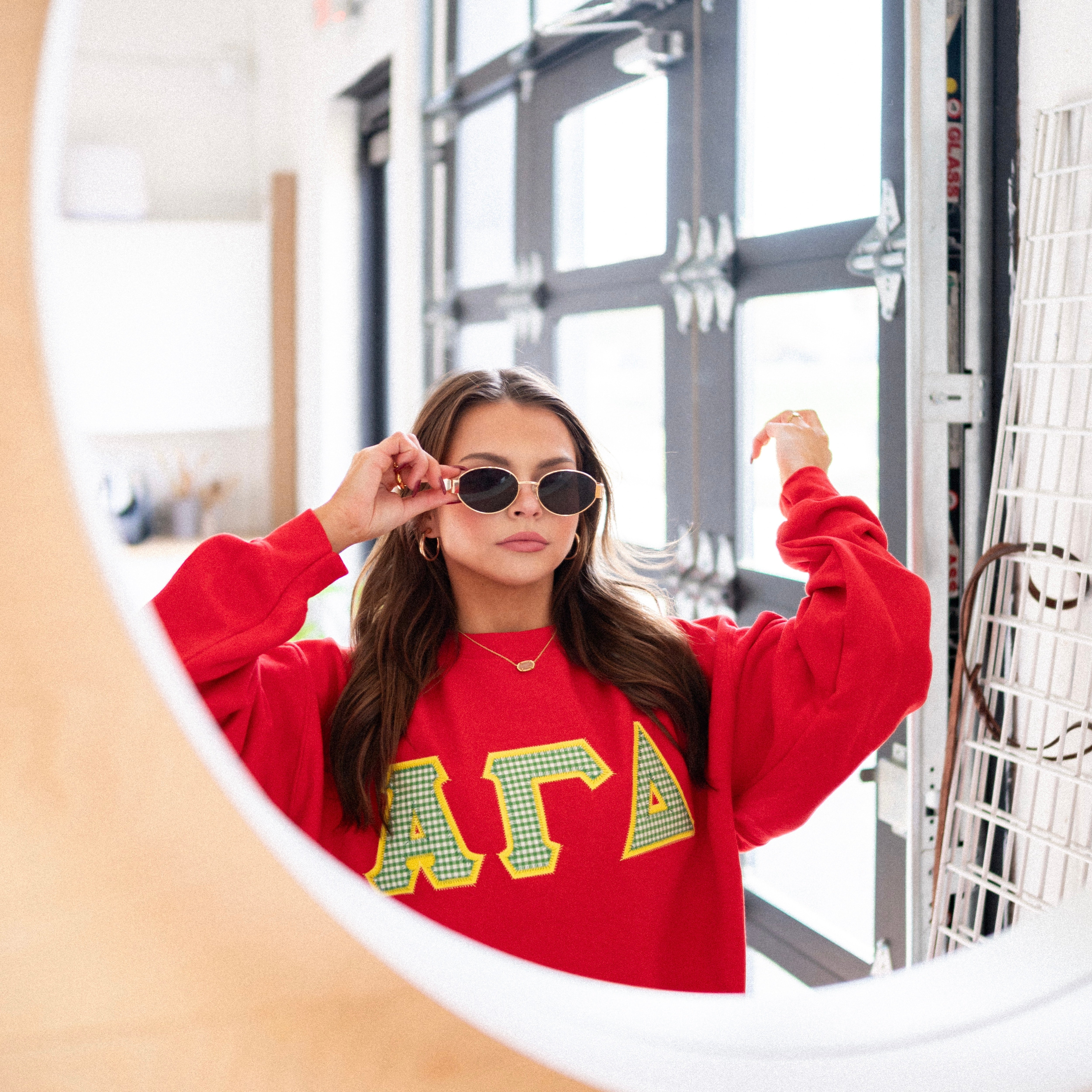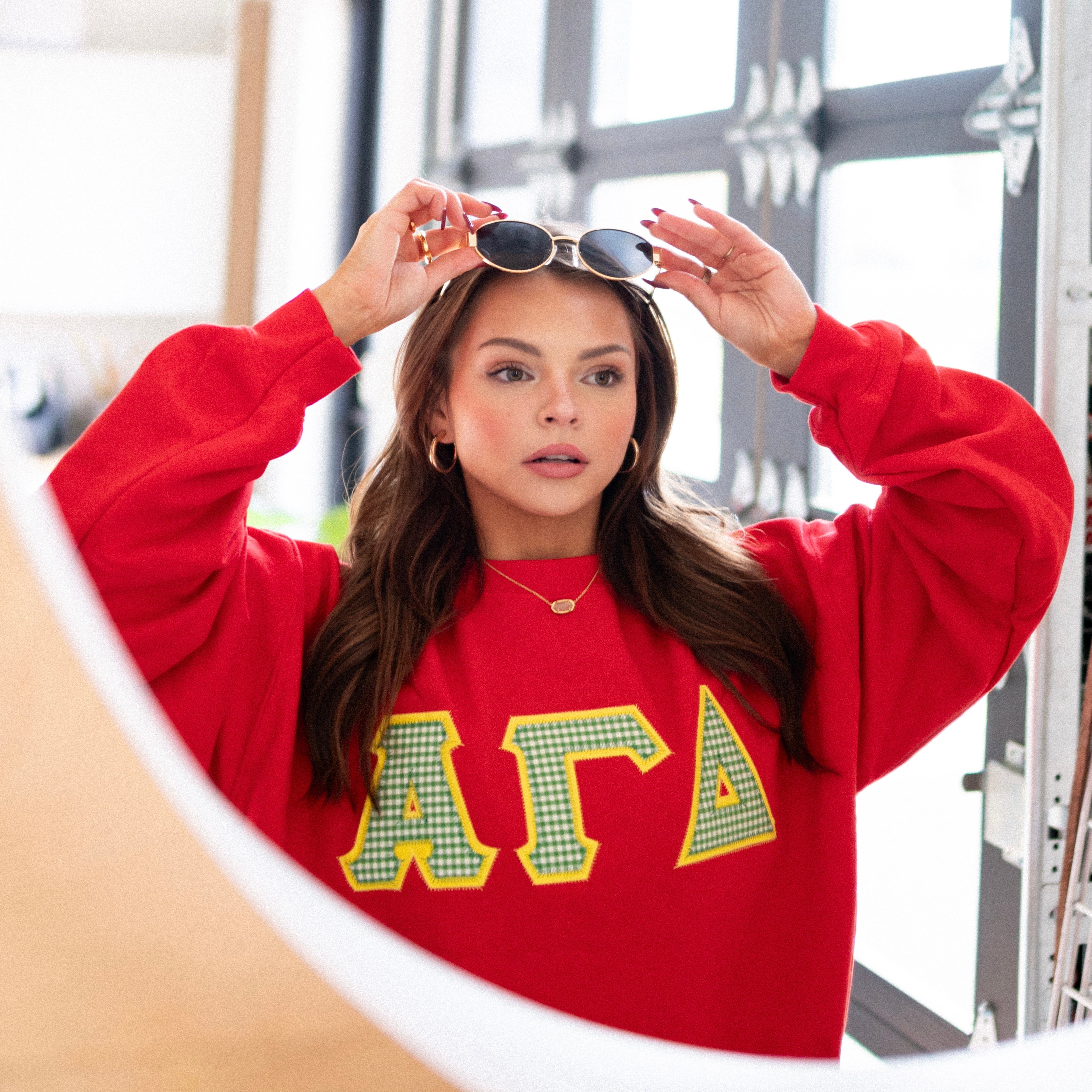 Green Gingham Greek Letter Crewneck Sweatshirt
