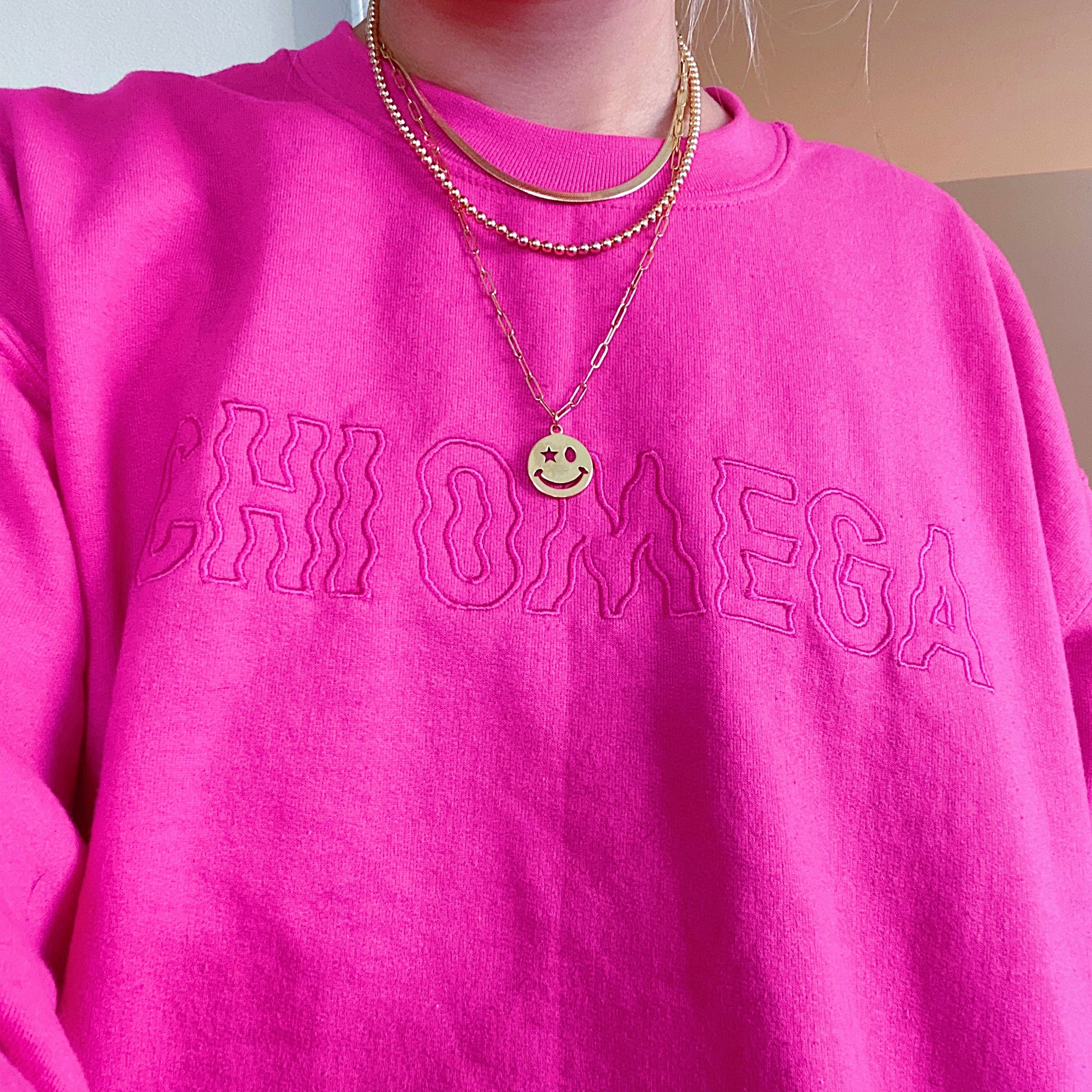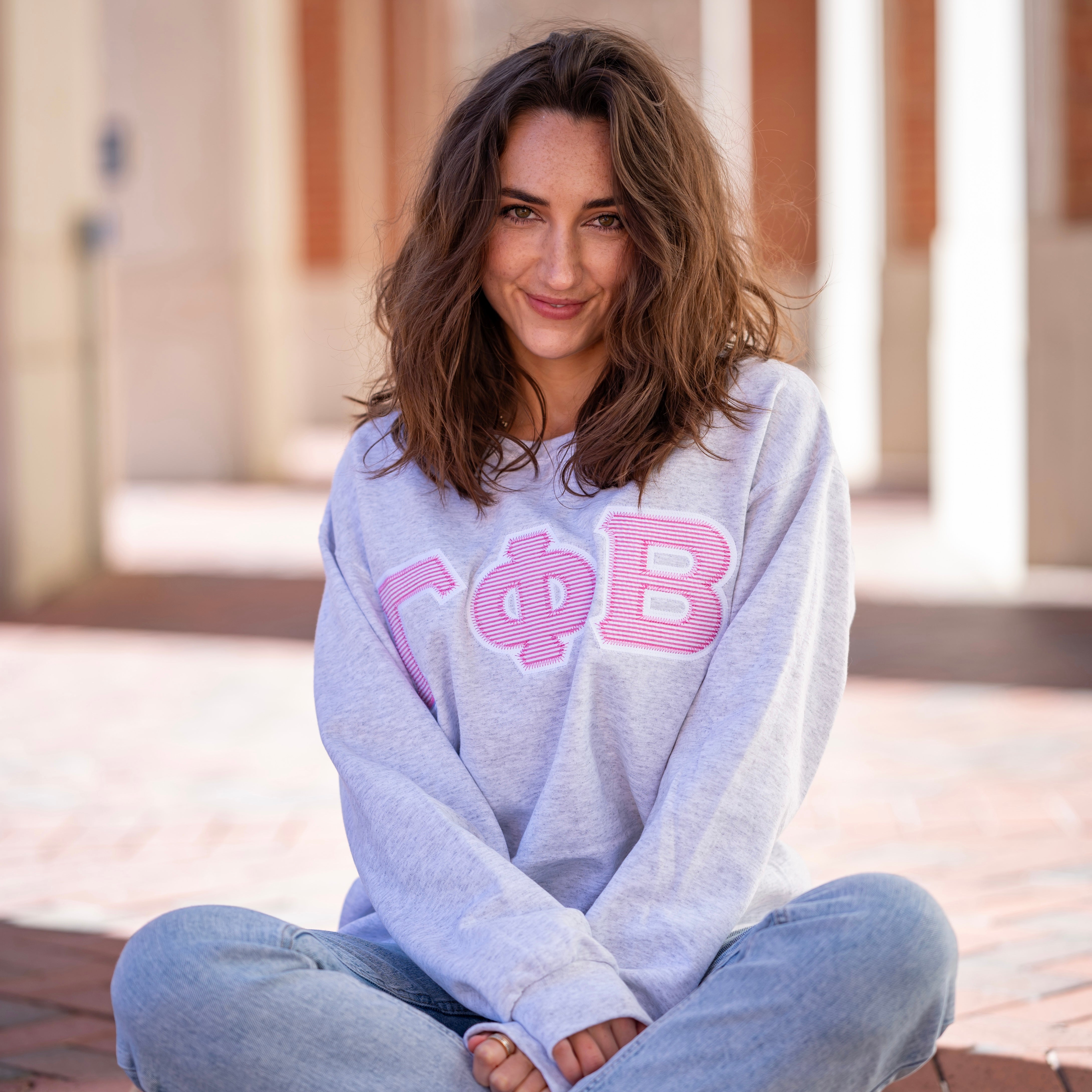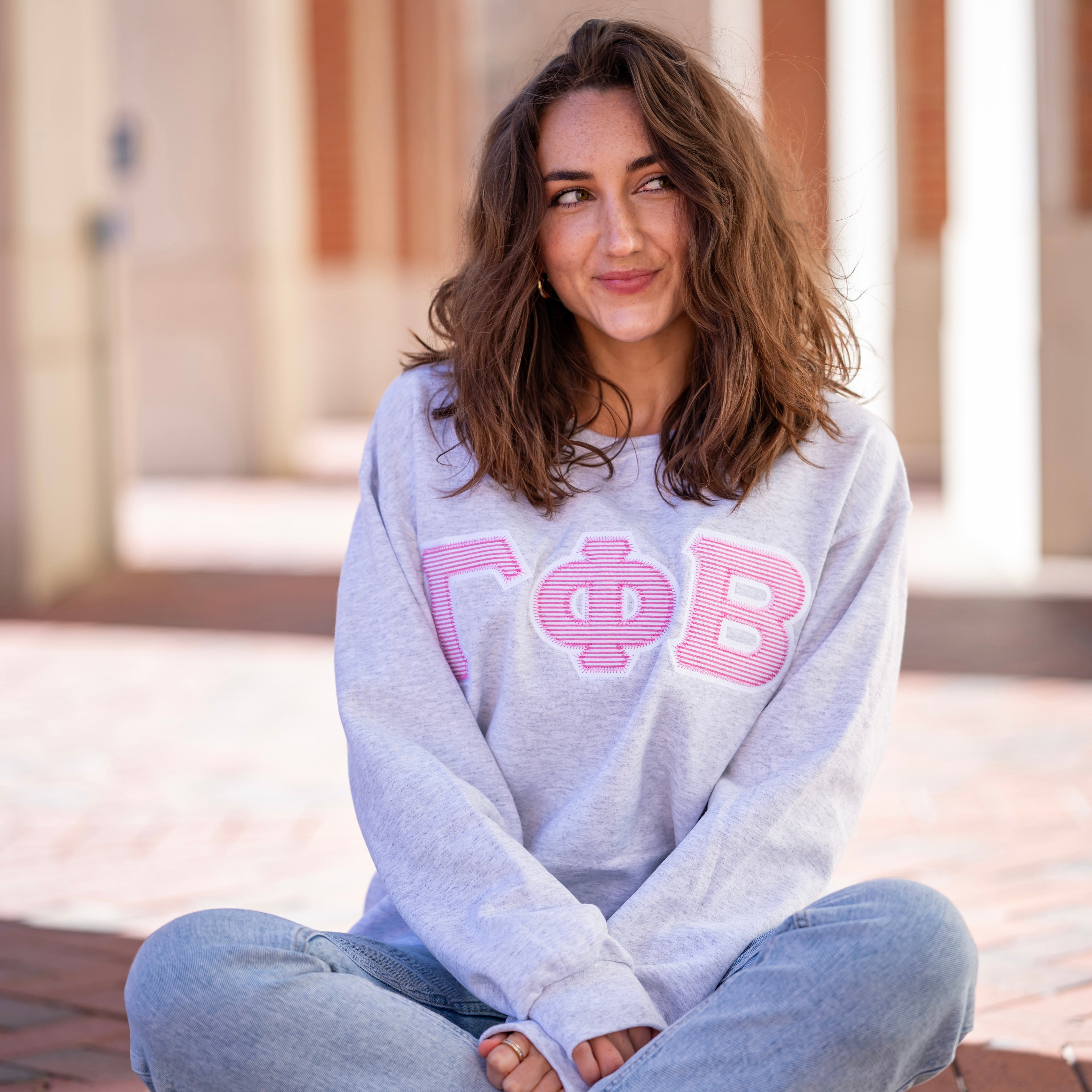 Hot Pink Seersucker Greek Letter Crewneck Sweatshirt