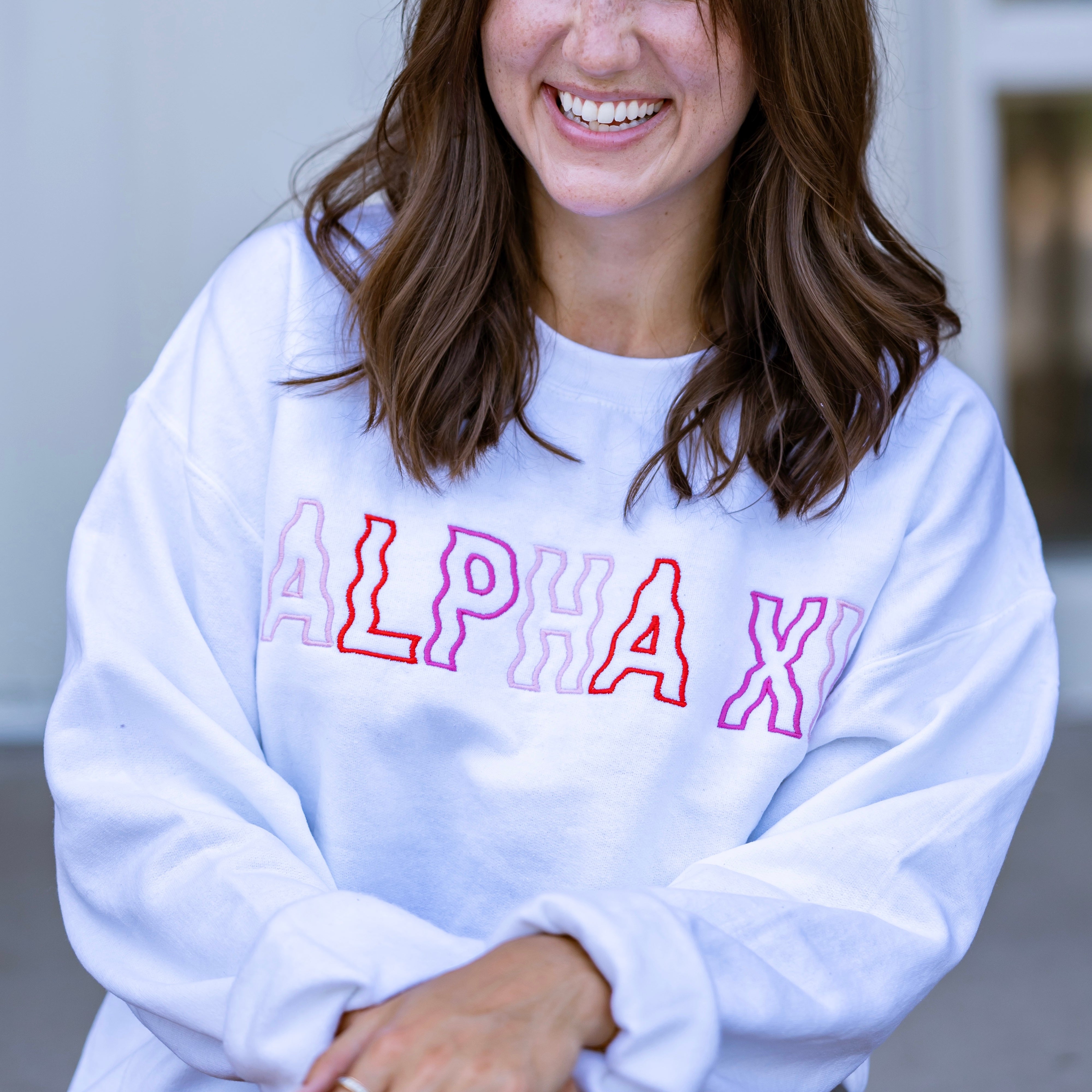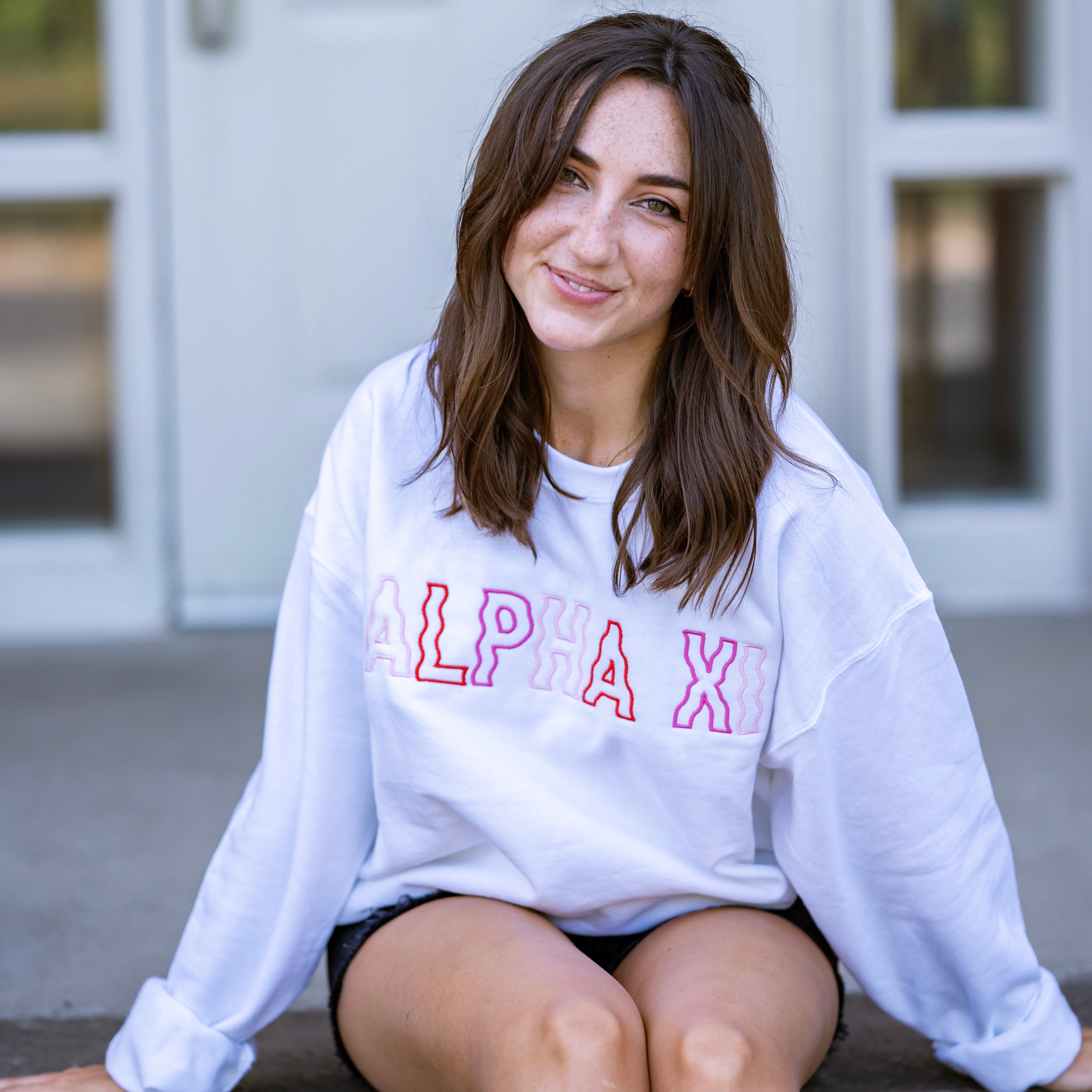 White Seersucker Greek Letter Crewneck Sweatshirt