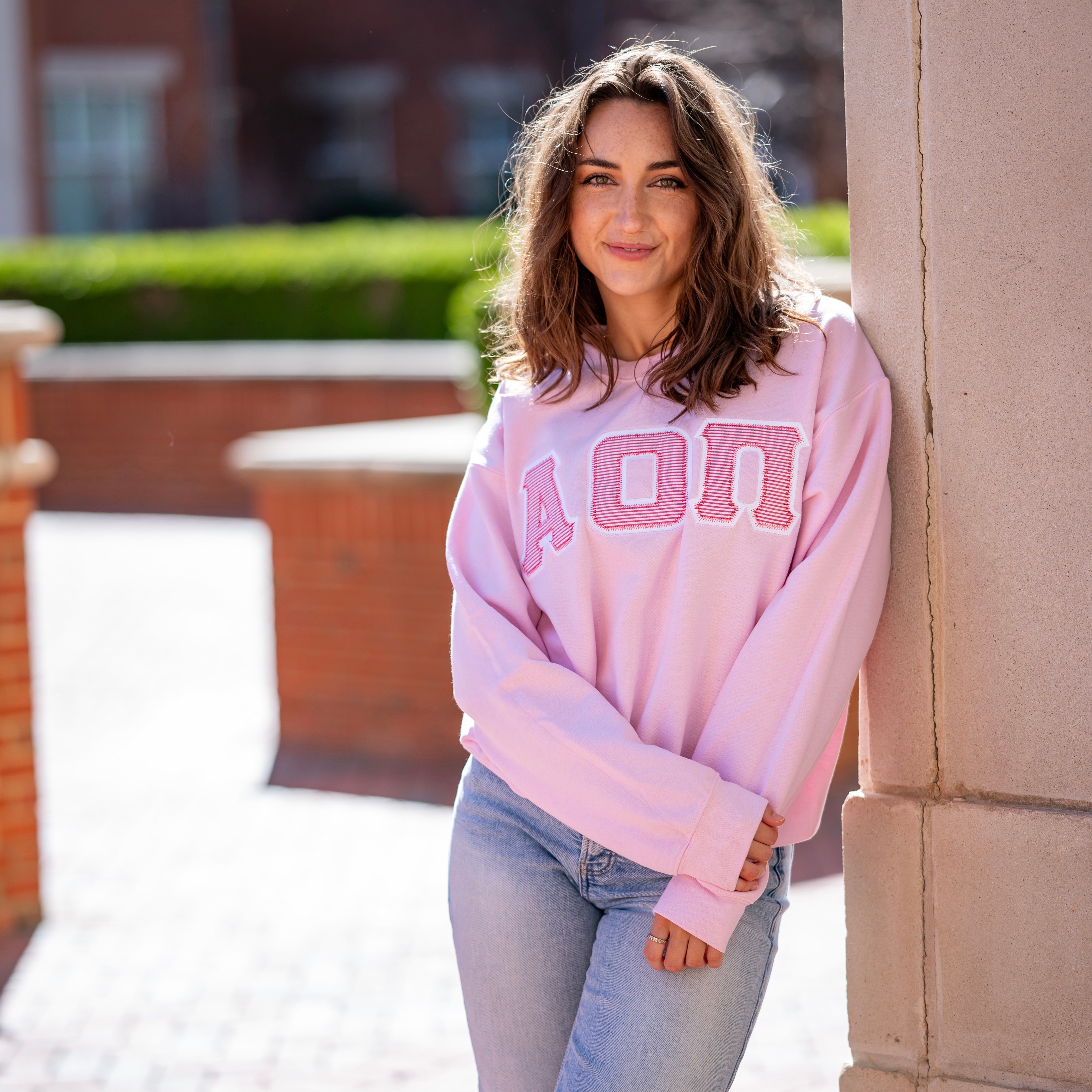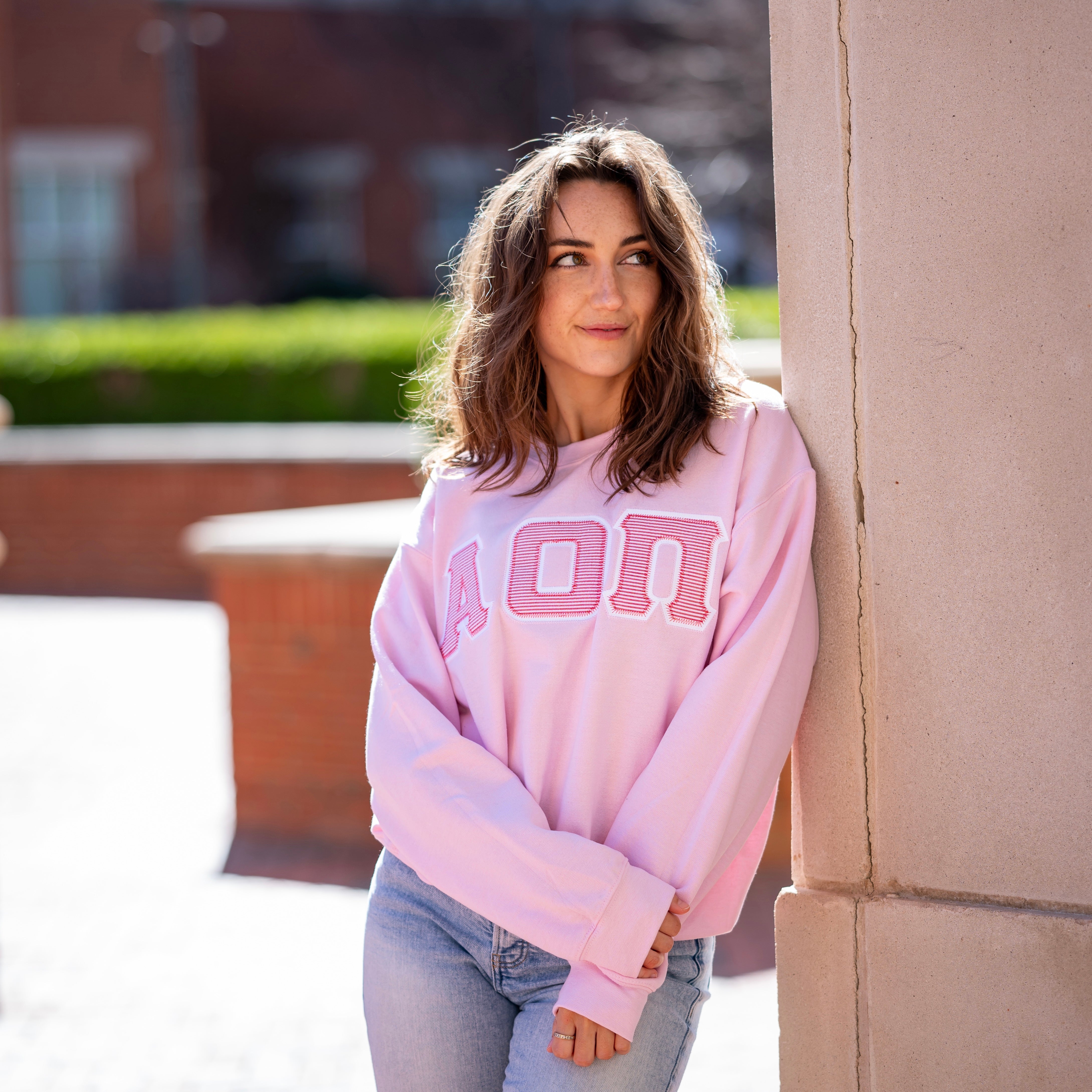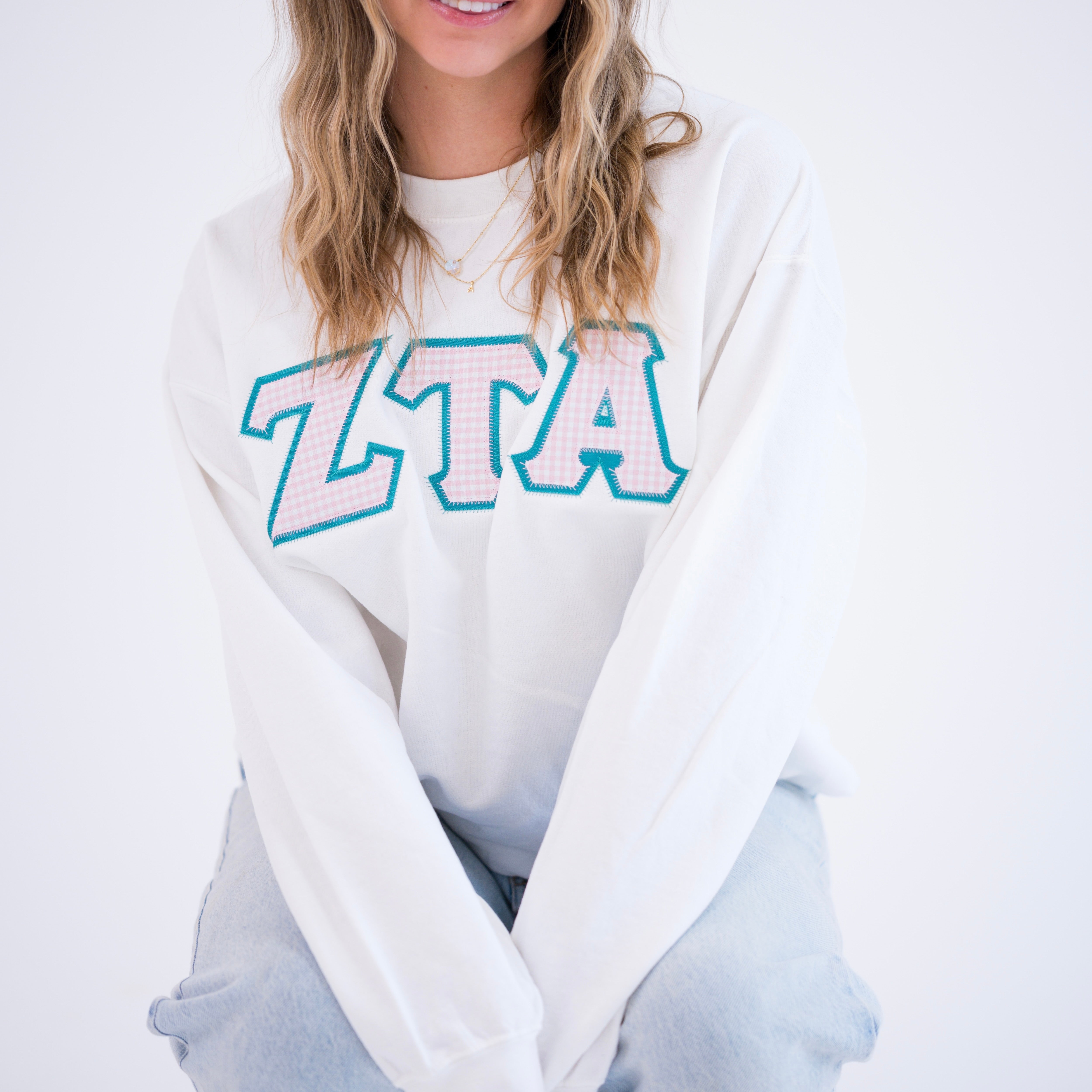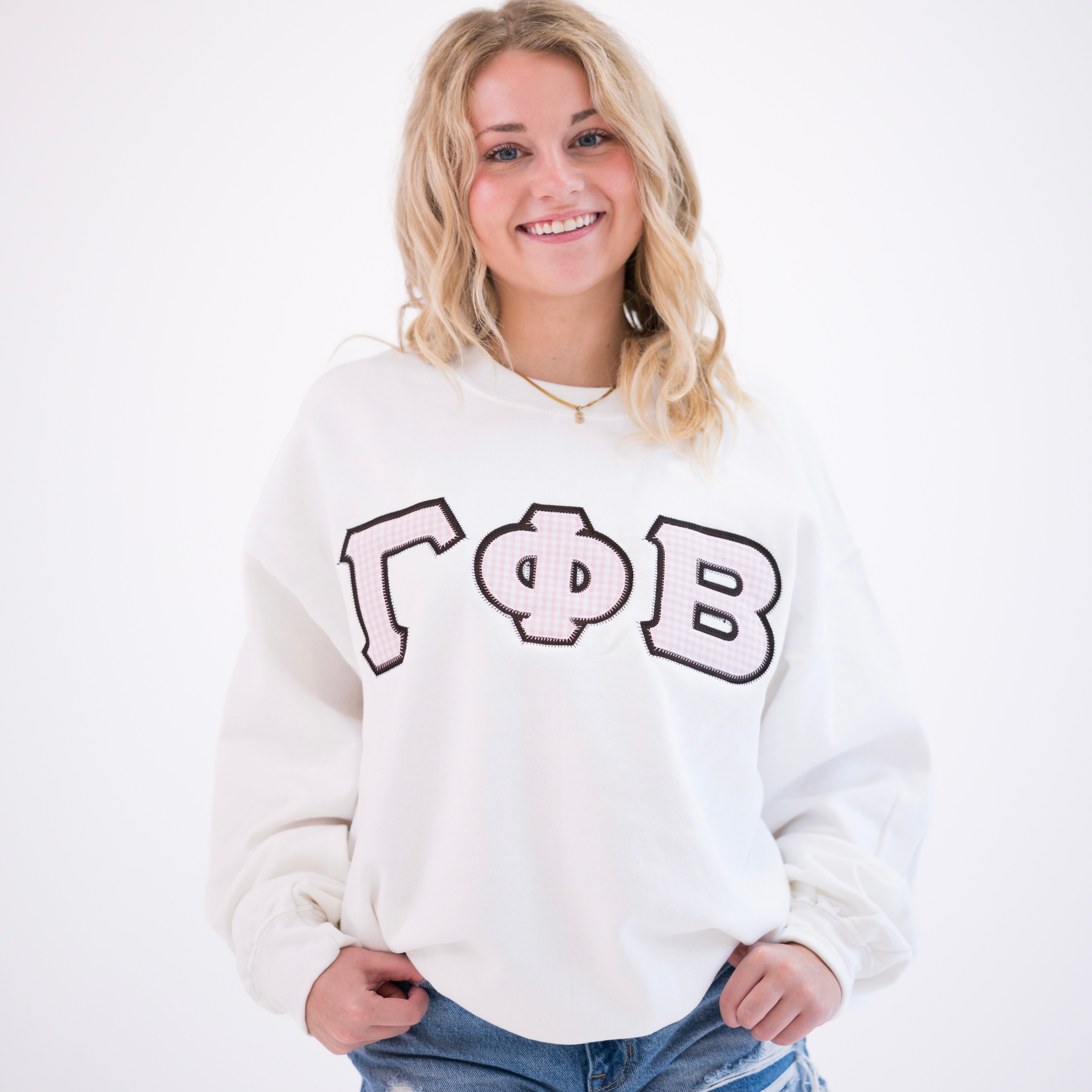 Light Pink Gingham Greek Letter Crewneck Sweatshirt