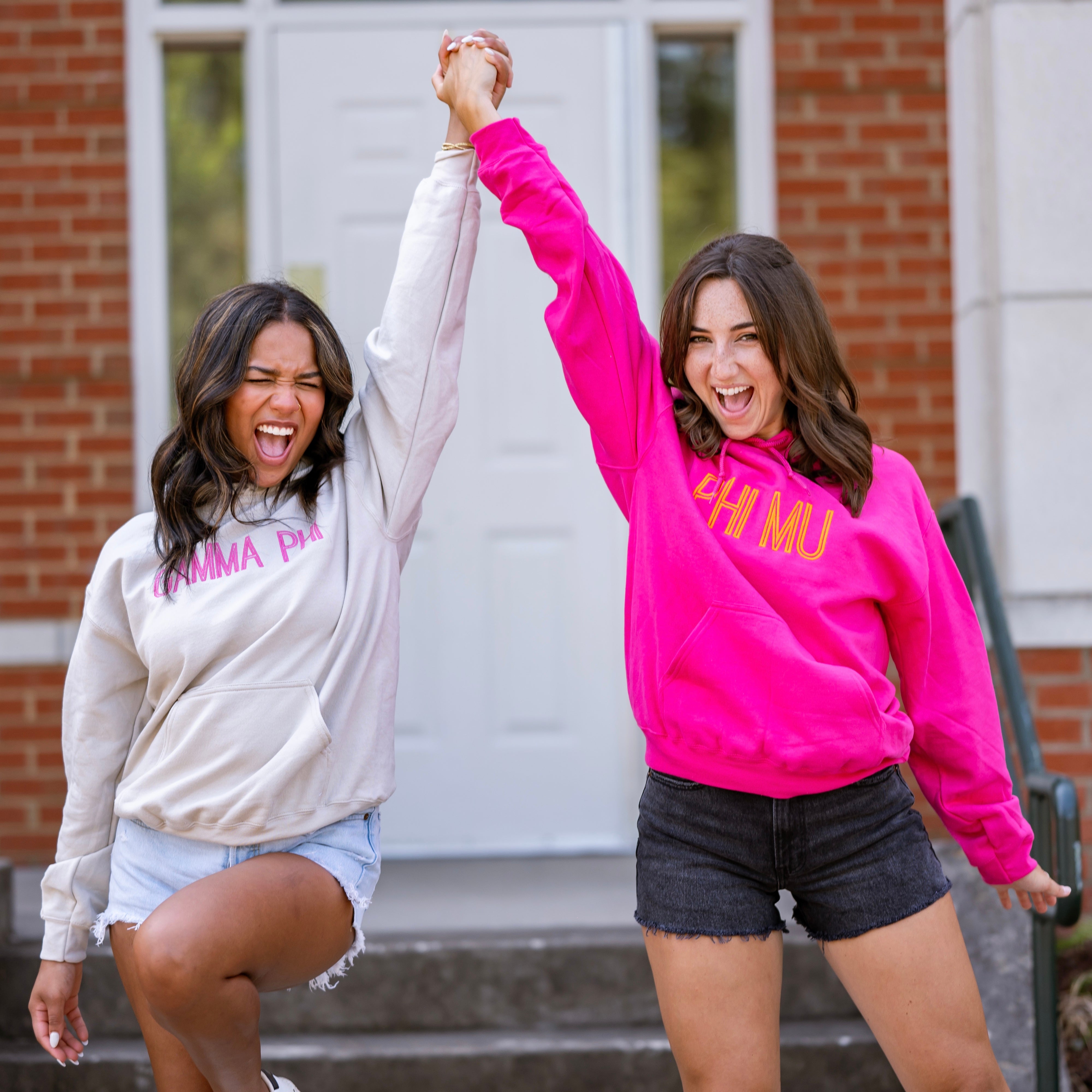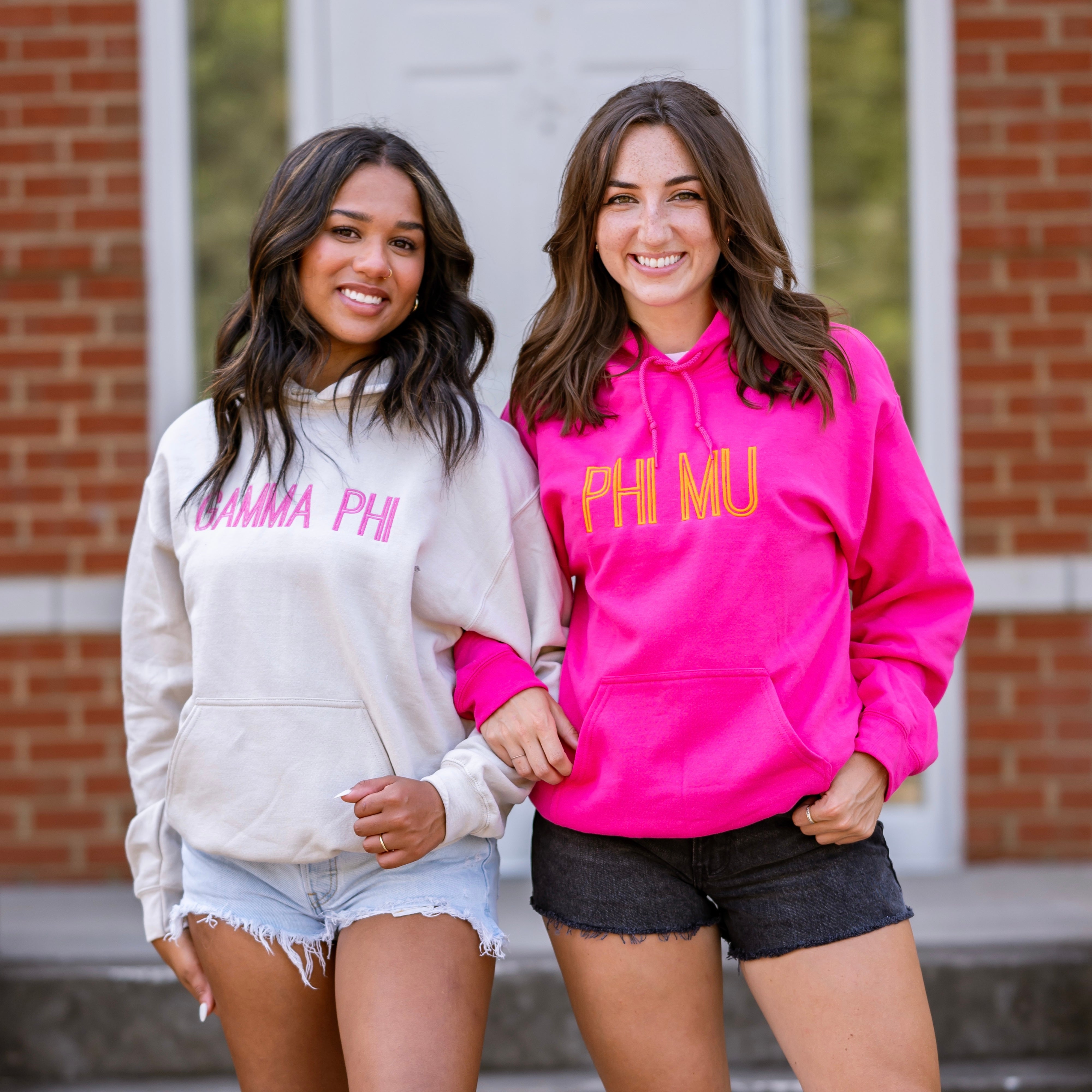 Custom Stitched Phi Mu Sorority Minimalistic Greek Letter Hoodie SweatshirtCustom Stitched Phi Mu Sorority Minimalistic Greek Letter Hoodie Sweatshirt