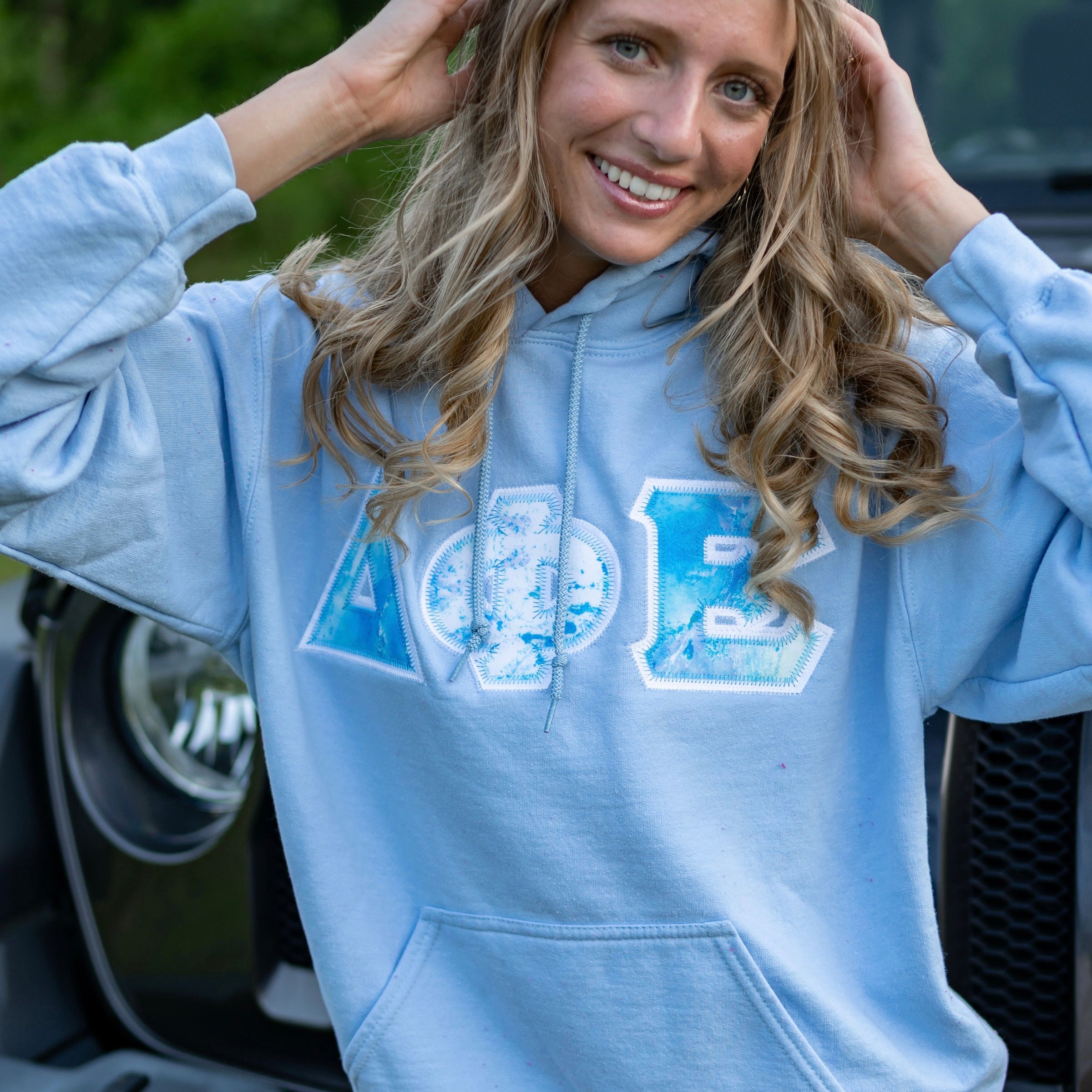 Blue Watercolor Marble Greek Letter Hoodie Sweatshirt