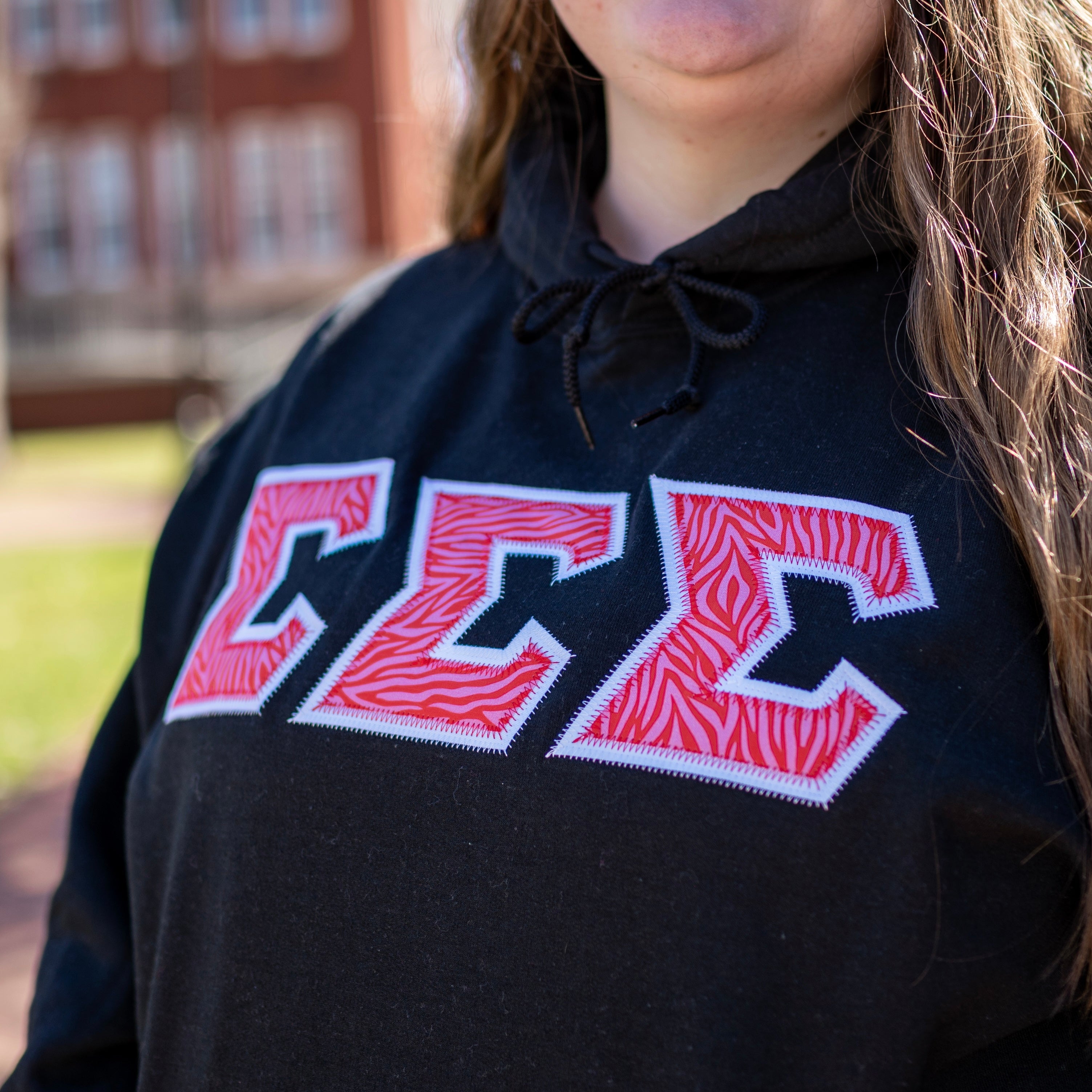 Pink & Red Zebra Greek Letter Hoodie Sweatshirt