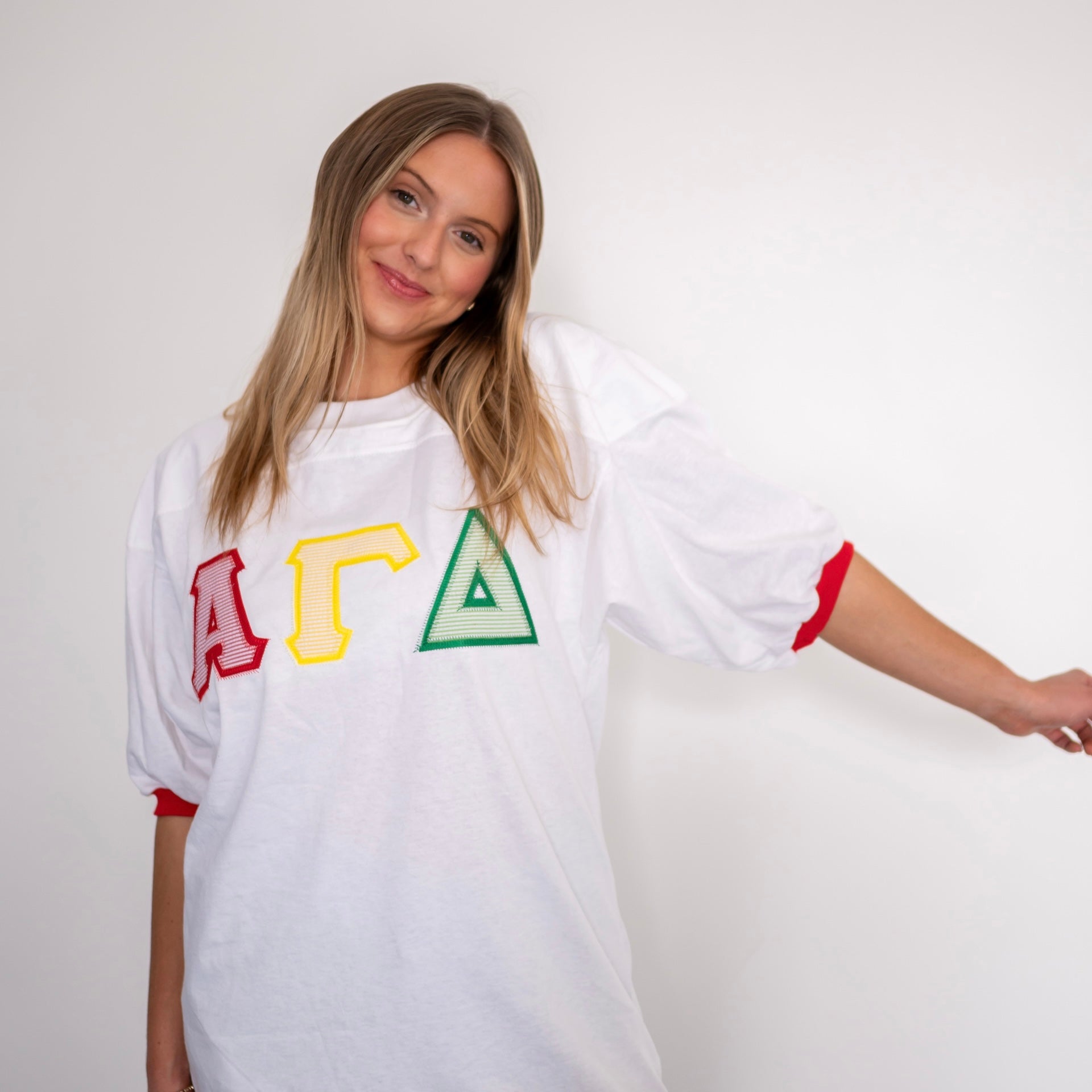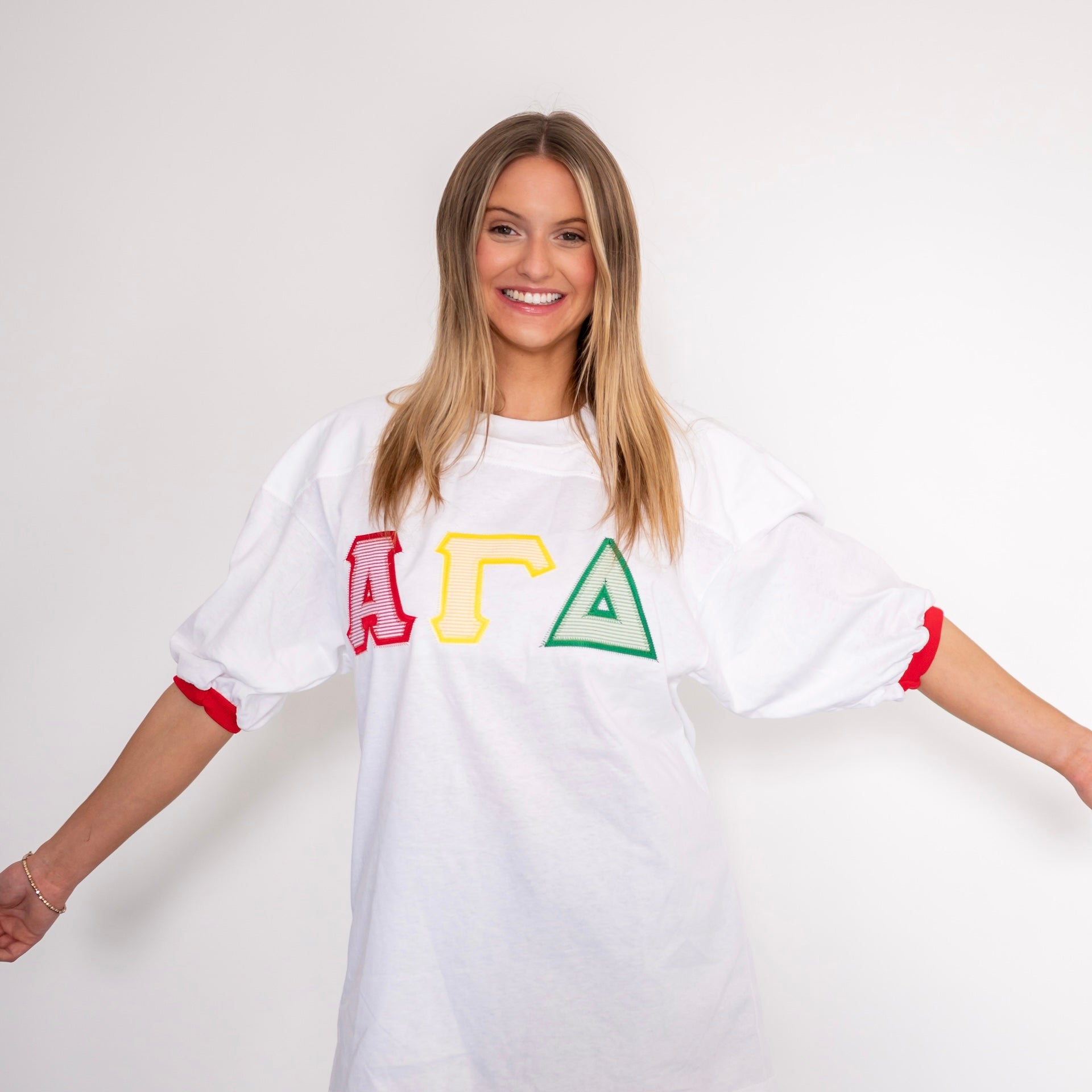 Multi-Color Seersucker Greek Letter Crew Neck Jersey - Alpha Gamma Delta
